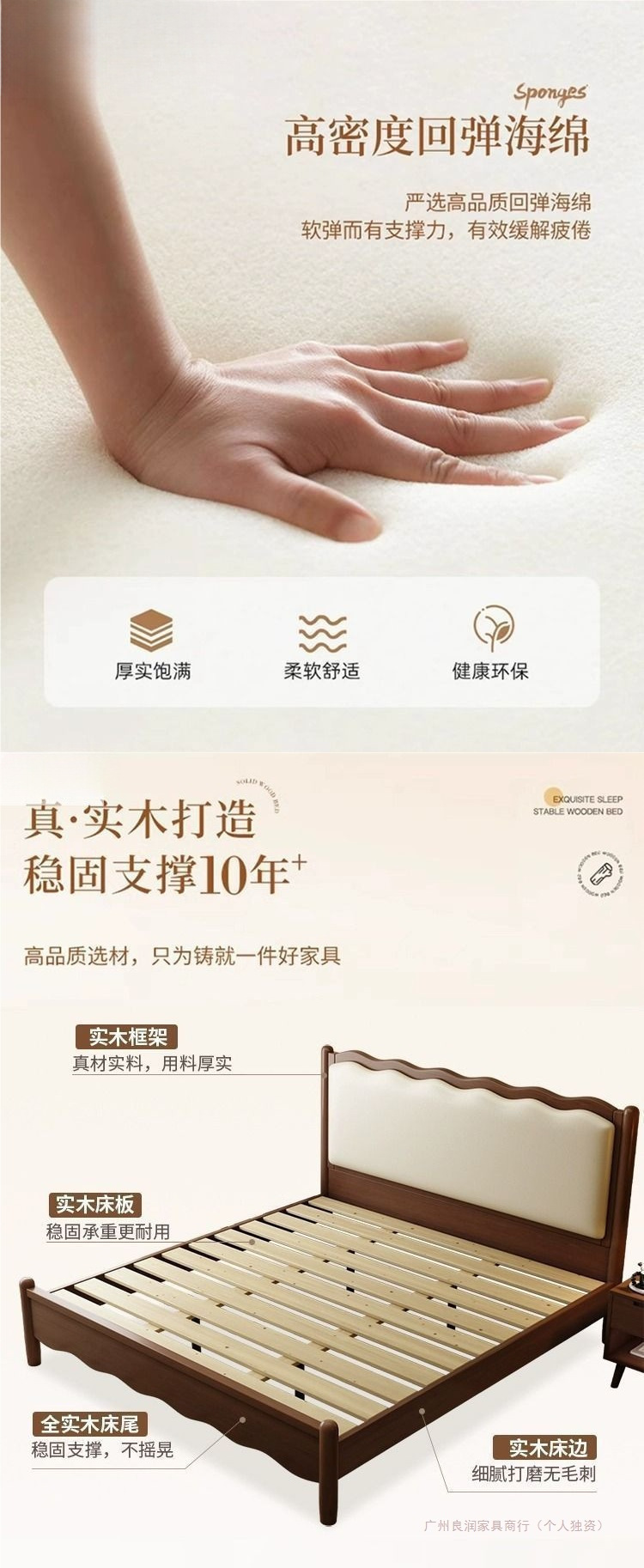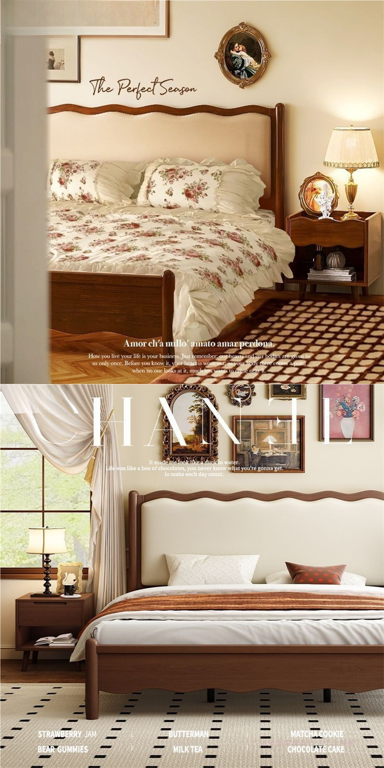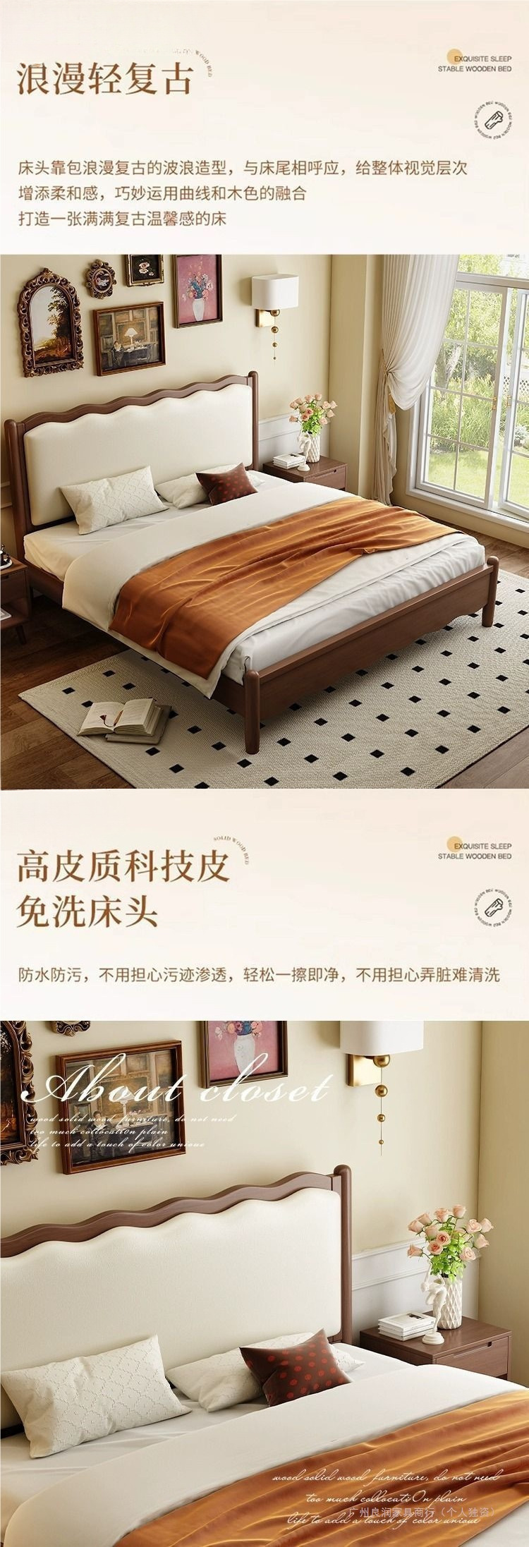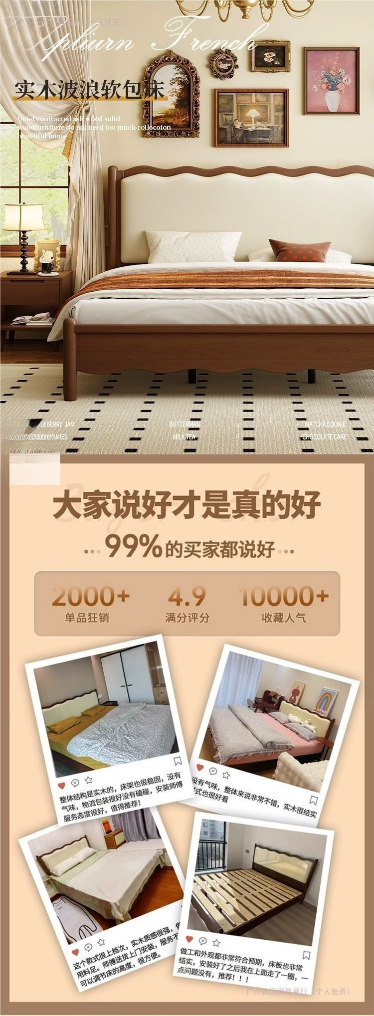 원목 침대, 북유럽 복고풍 더블 침대, 한국식 웨이브 침대, 중세 스타일 침대, 프렌치 침대, 가볍고 고급스러운 소프트백 웨딩 침대, 침실