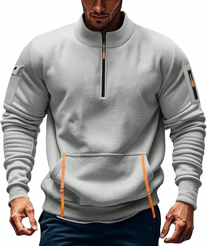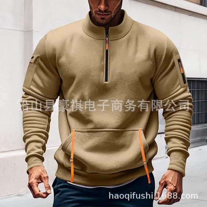 국경을 넘나드는 새로운 스탠드 칼라 하프 지퍼 멀티 포켓 혁신적인 트렌디 남성용 스웨트 셔츠 맞춤형 로고 플리스 스웨트 셔츠