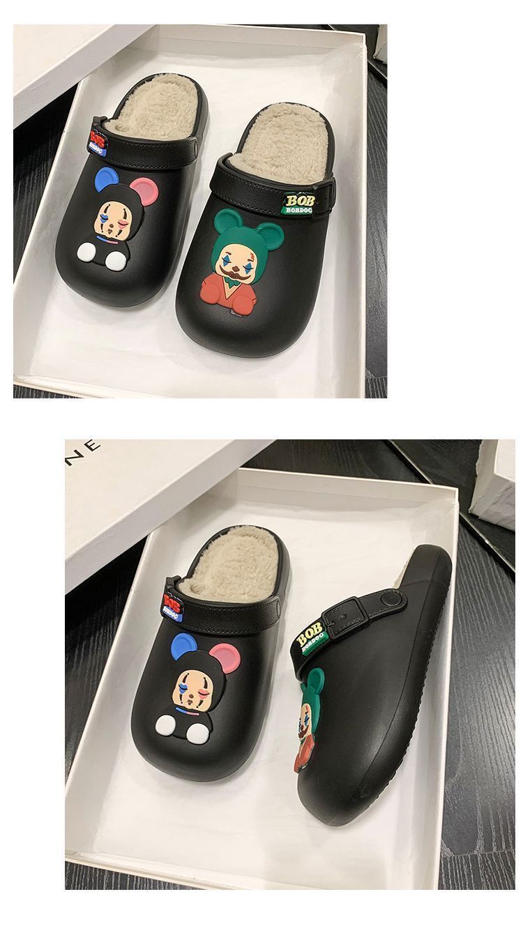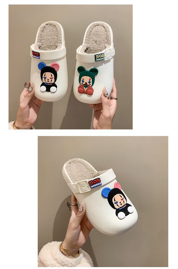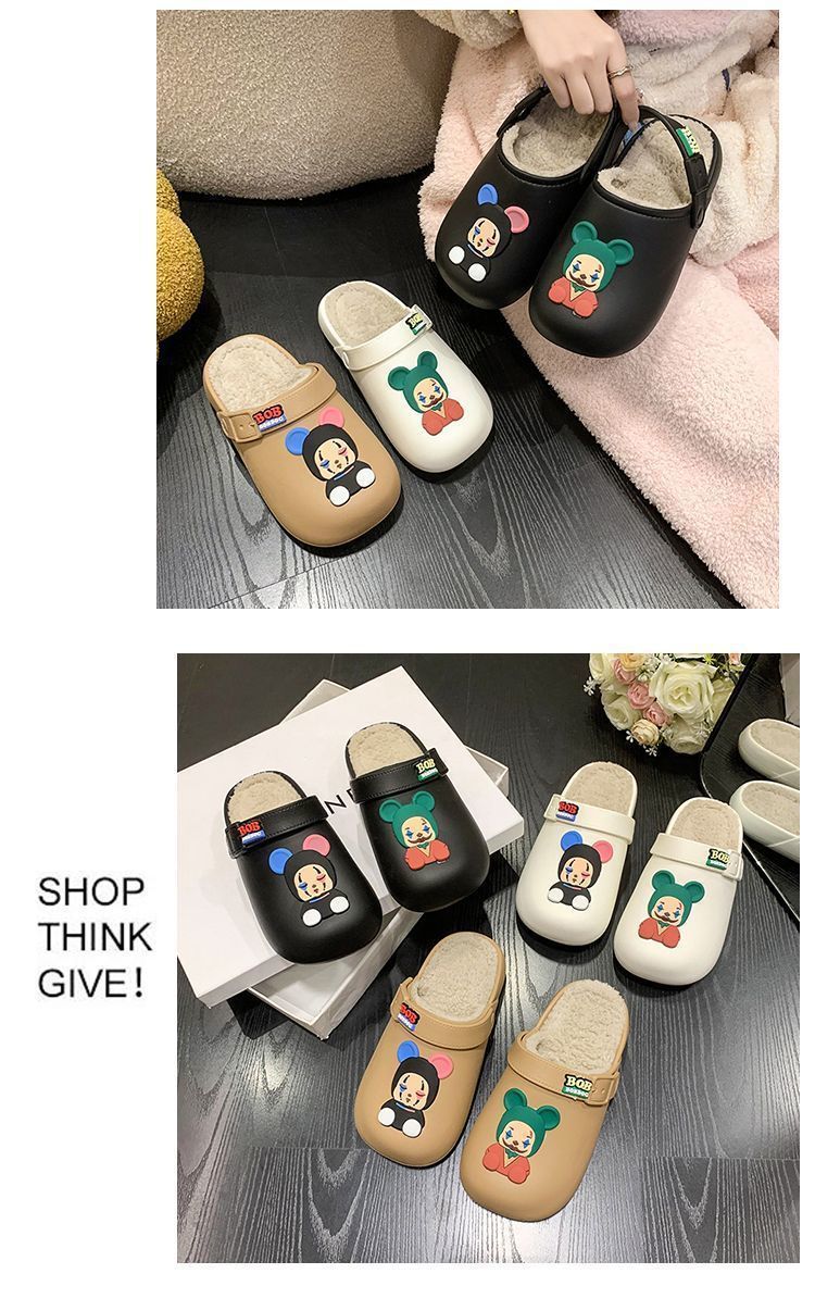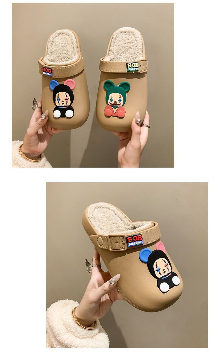인터넷 연예인 소녀 바오터우 실내 홈 탈착식 및 세탁 가능한 면 슬리퍼 2025 새로운 귀여운 만화 따뜻하고 미끄럼 방지 겉옷