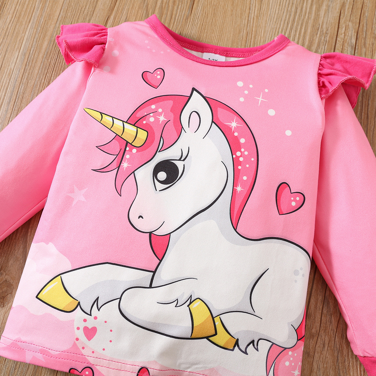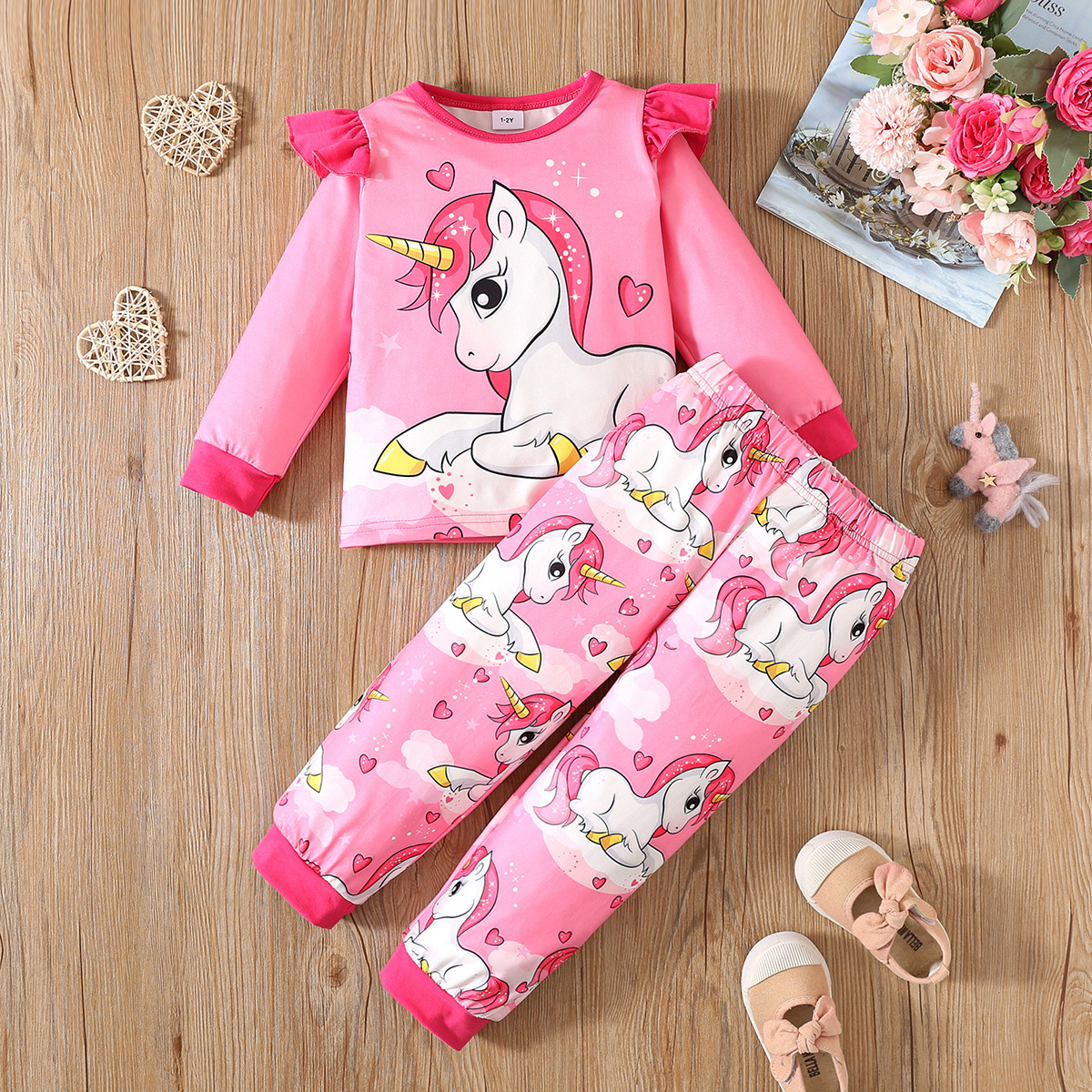 여자 봄, 가을 만화 말 인쇄 작은 플라잉 슬리브 정장 패션 홈웨어 긴 소매 바지 잠옷 세트스토어 가기
