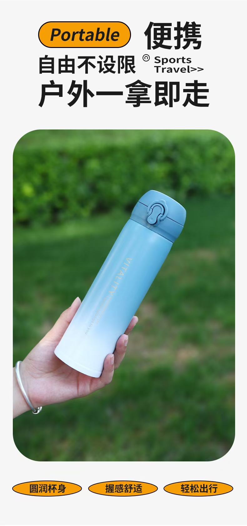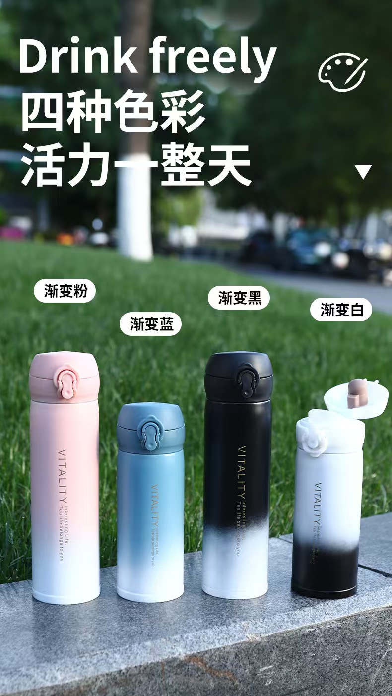그라데이션 색상의 고급스러운 여성용 보온병, 스테인리스 스틸 뚜껑이 있는 심플하고 세련된 스포츠용 학생 고급 보온병스토어 가기