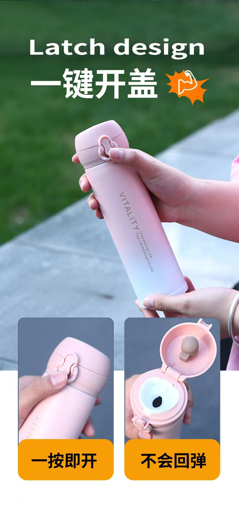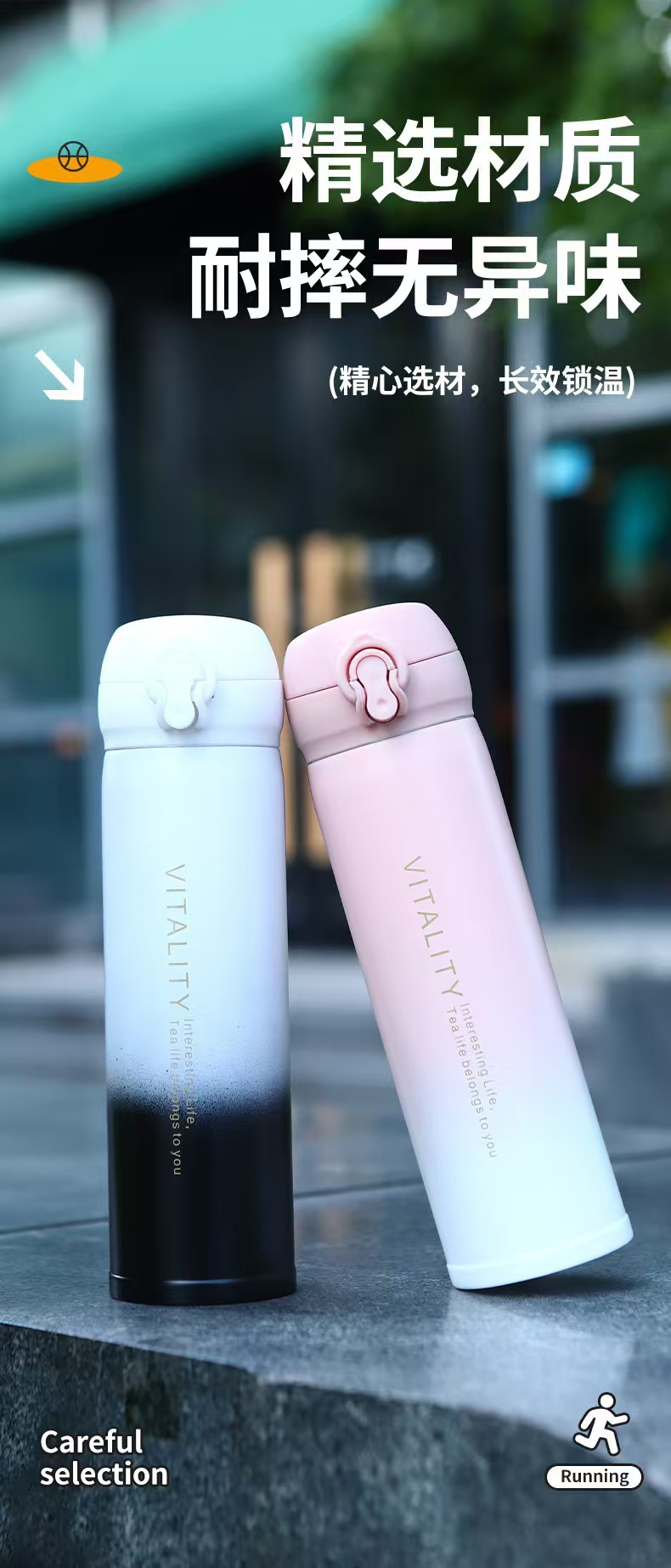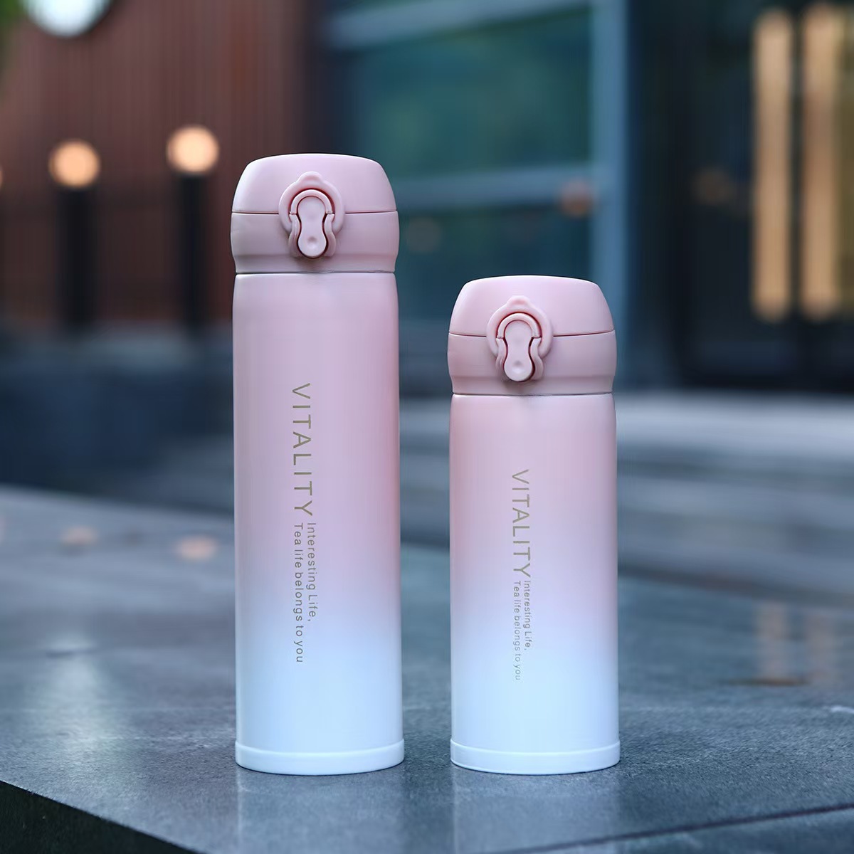 그라데이션 색상의 고급스러운 여성용 보온병, 스테인리스 스틸 뚜껑이 있는 심플하고 세련된 스포츠용 학생 고급 보온병