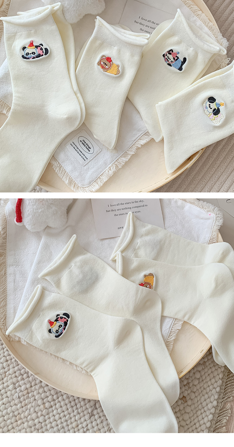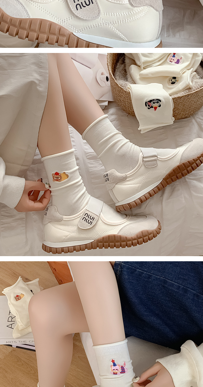 작은 가죽 신발과 어울리는 여성용 흰색 자수 양말, 트렌디하고 통기성이 좋은 한국식 만화 귀여운 봄, 가을 면 양말