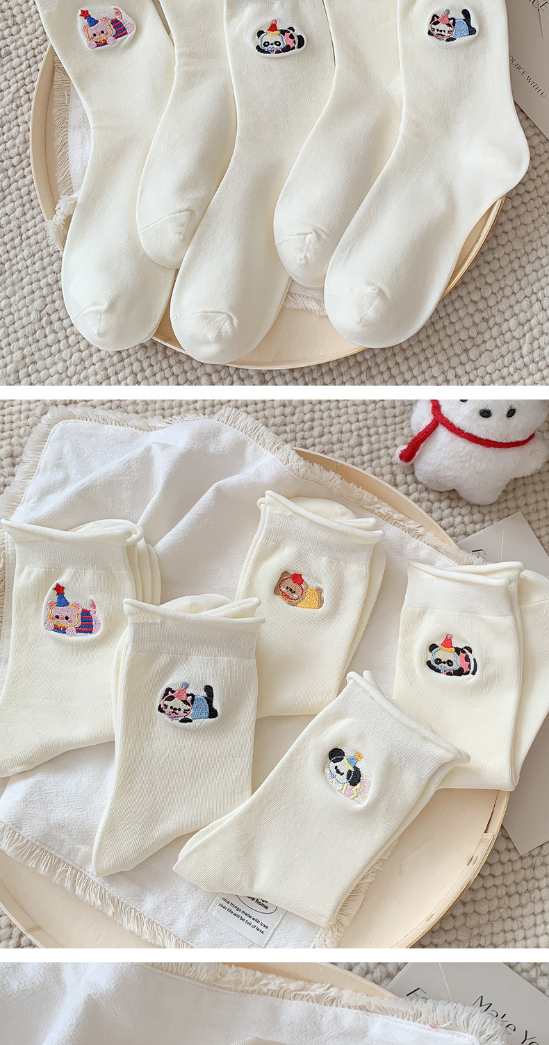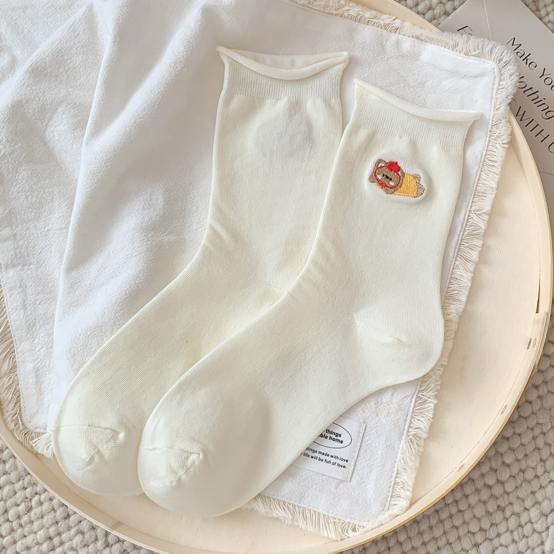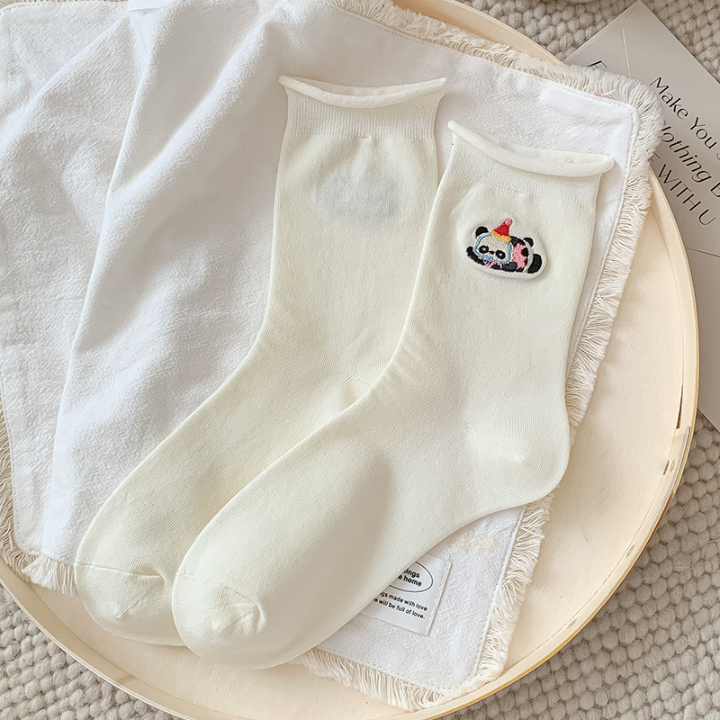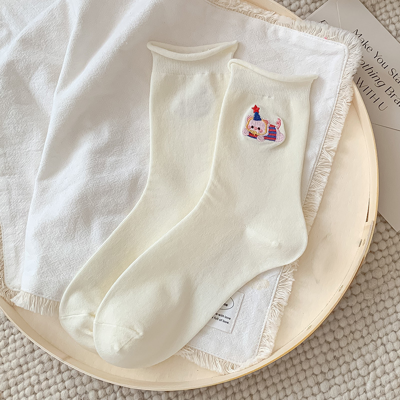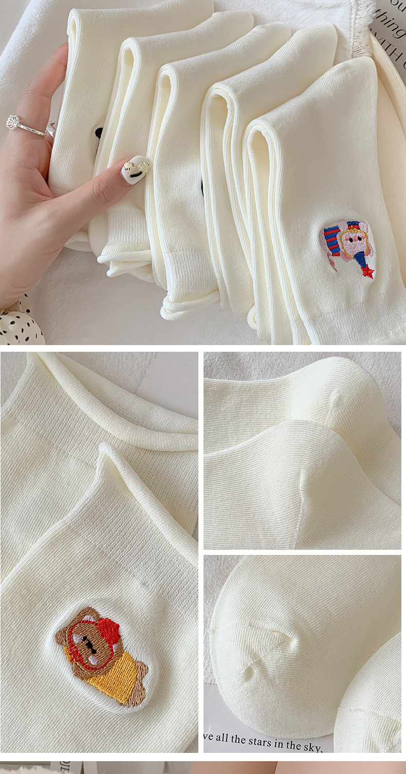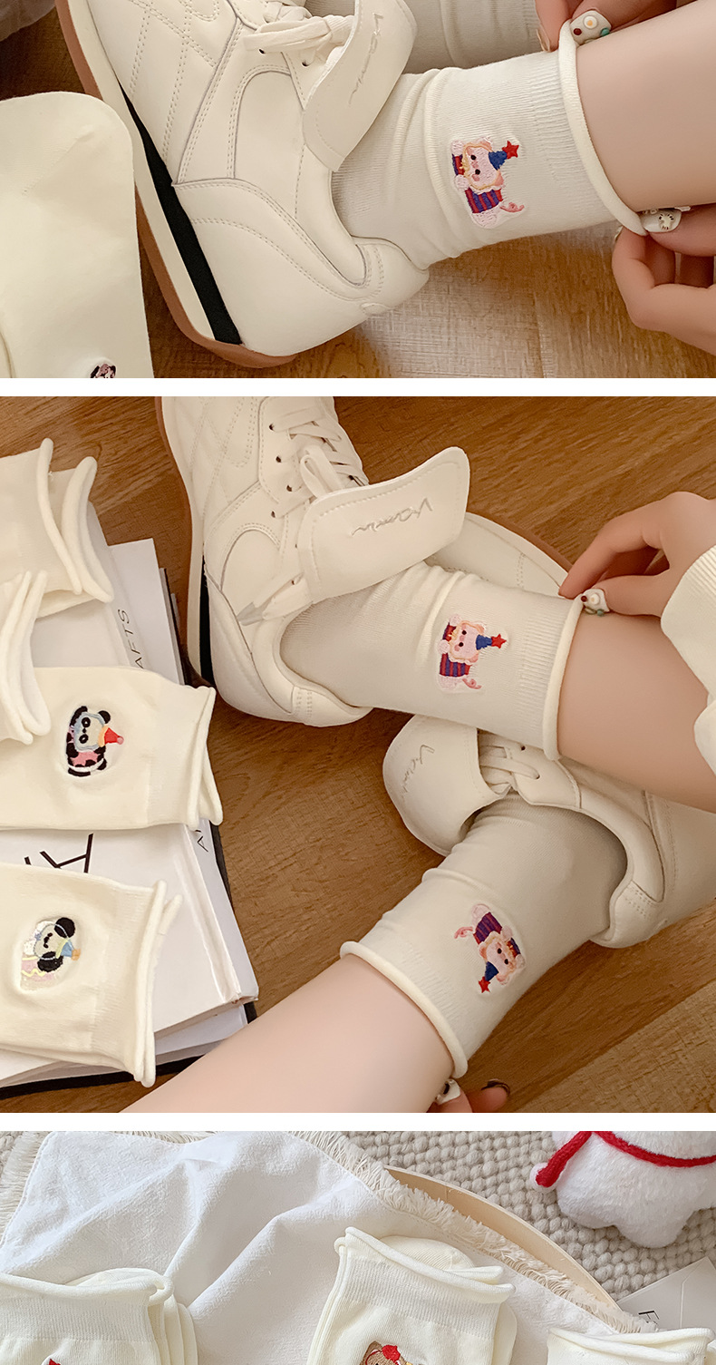 작은 가죽 신발과 어울리는 여성용 흰색 자수 양말, 트렌디하고 통기성이 좋은 한국식 만화 귀여운 봄, 가을 면 양말스토어 가기