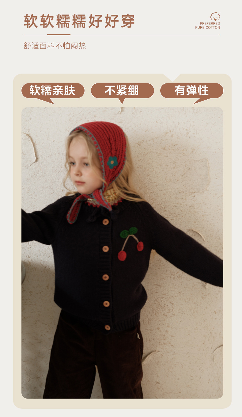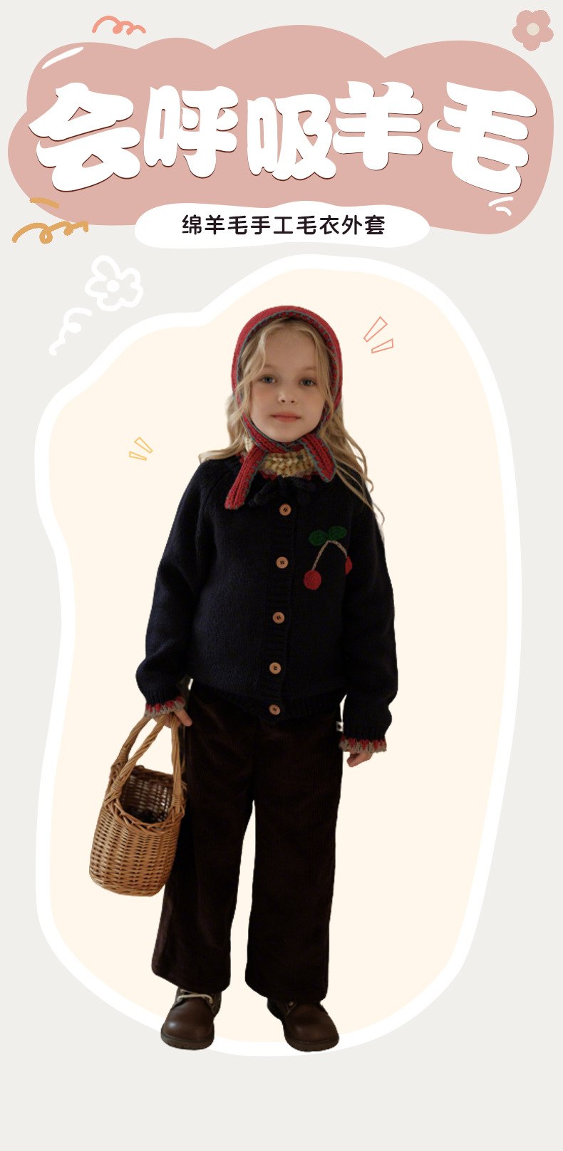 국경 간 아동 의류 클래스 A 버튼 다목적 아동 스웨터 귀여운 체리 얇은 울 소년과 소녀 니트 가디건스토어 가기