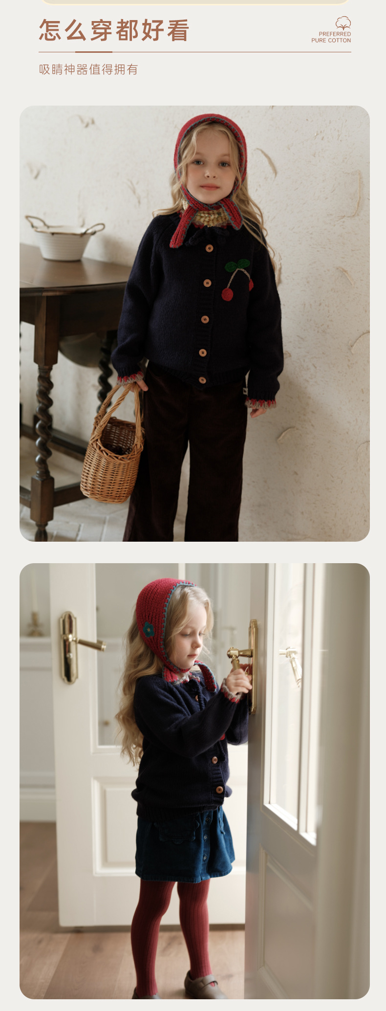 국경 간 아동 의류 클래스 A 버튼 다목적 아동 스웨터 귀여운 체리 얇은 울 소년과 소녀 니트 가디건
