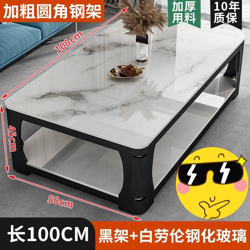 새로운 대리석 강화 유리 직사각형 더블 레이어 내구성 테이블 티 테이블 거실 현대 가정용 작은 아파트스토어 가기
