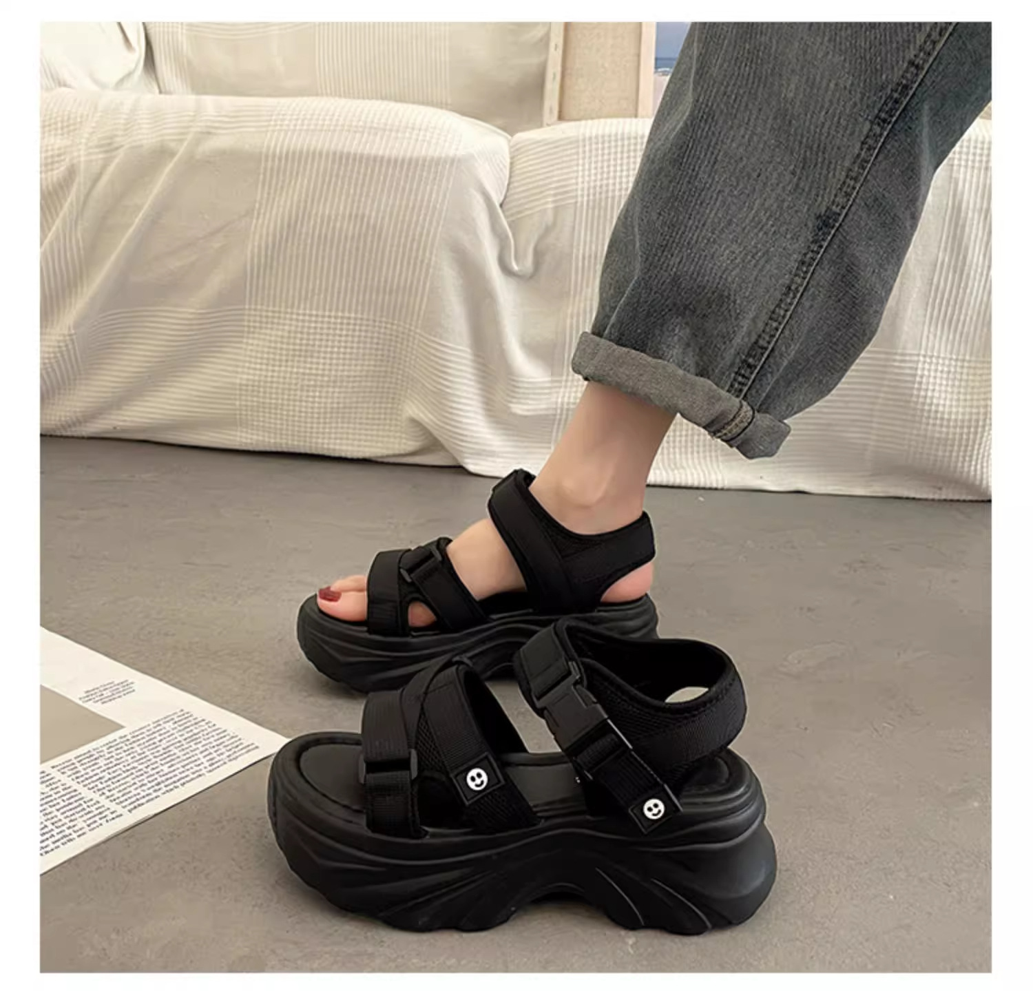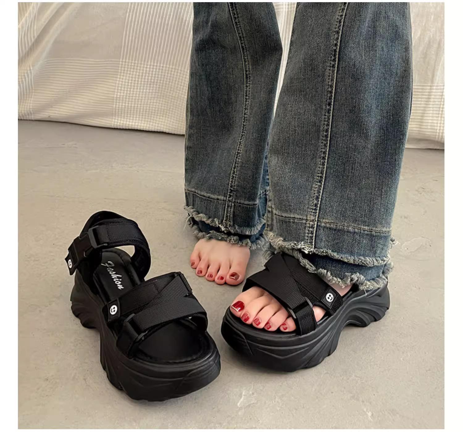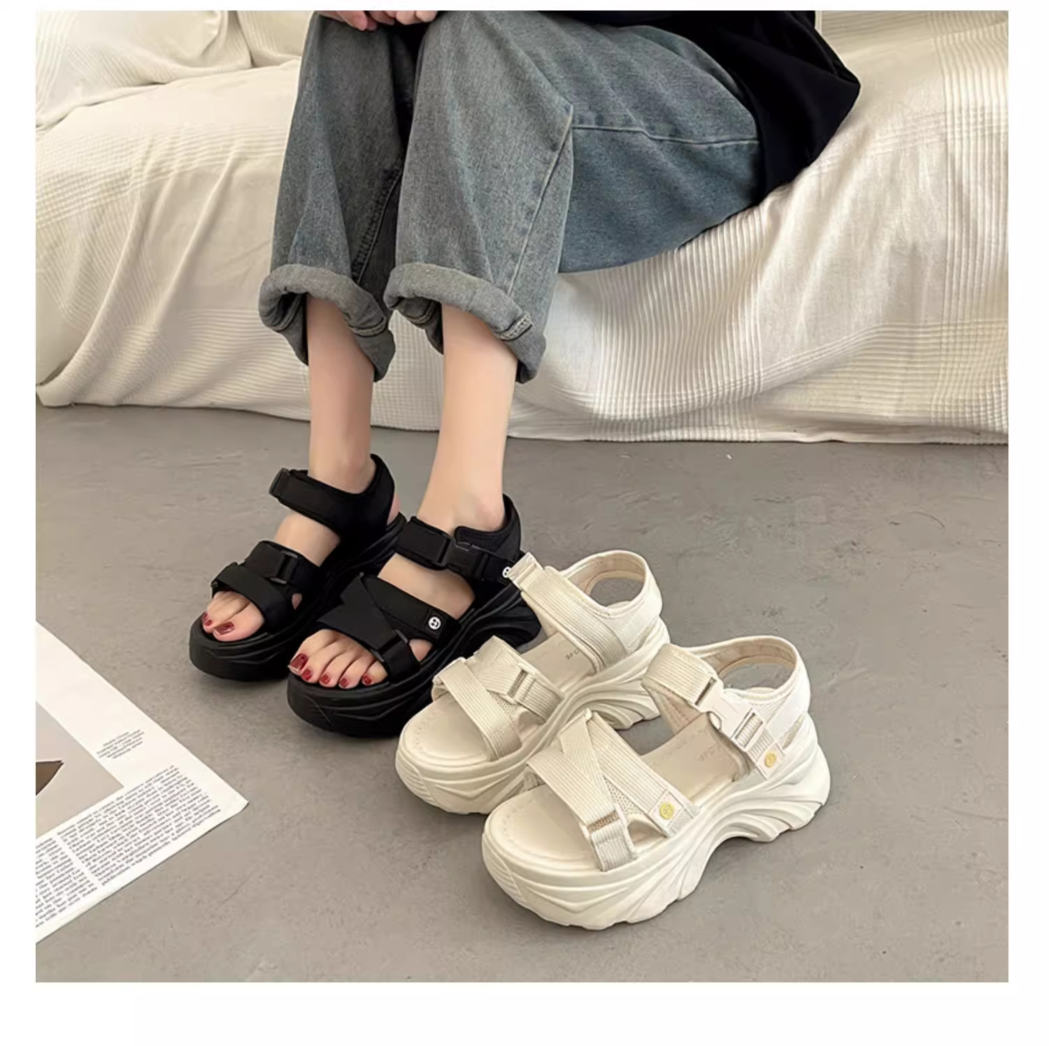여름 아우터로 입기 좋은 여성용 핫 스타일 프렌치 두꺼운 밑창 스포츠 샌들, 고급스러운 2025년 신형 웨지힐 비치 로마 슈즈스토어 가기