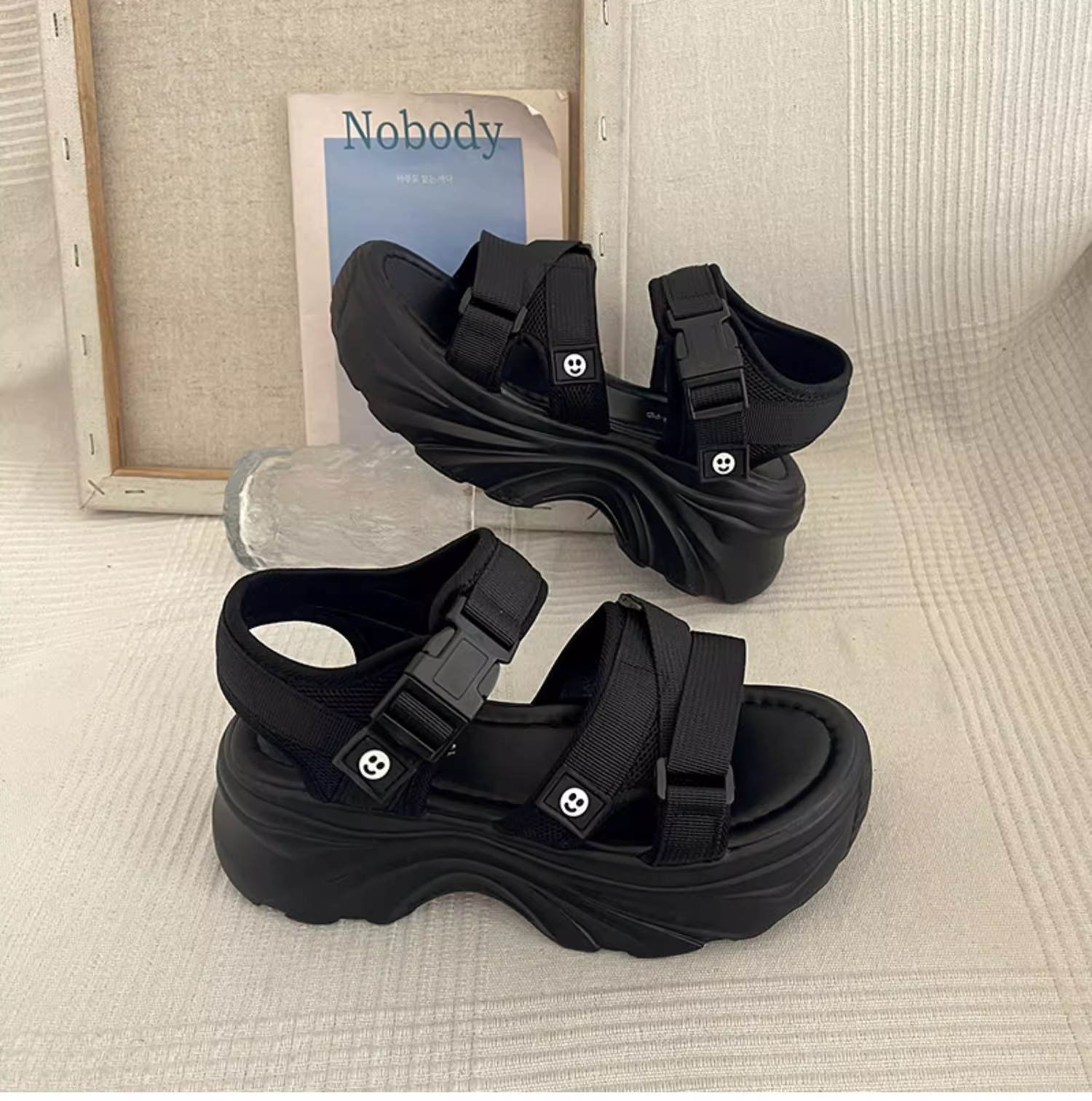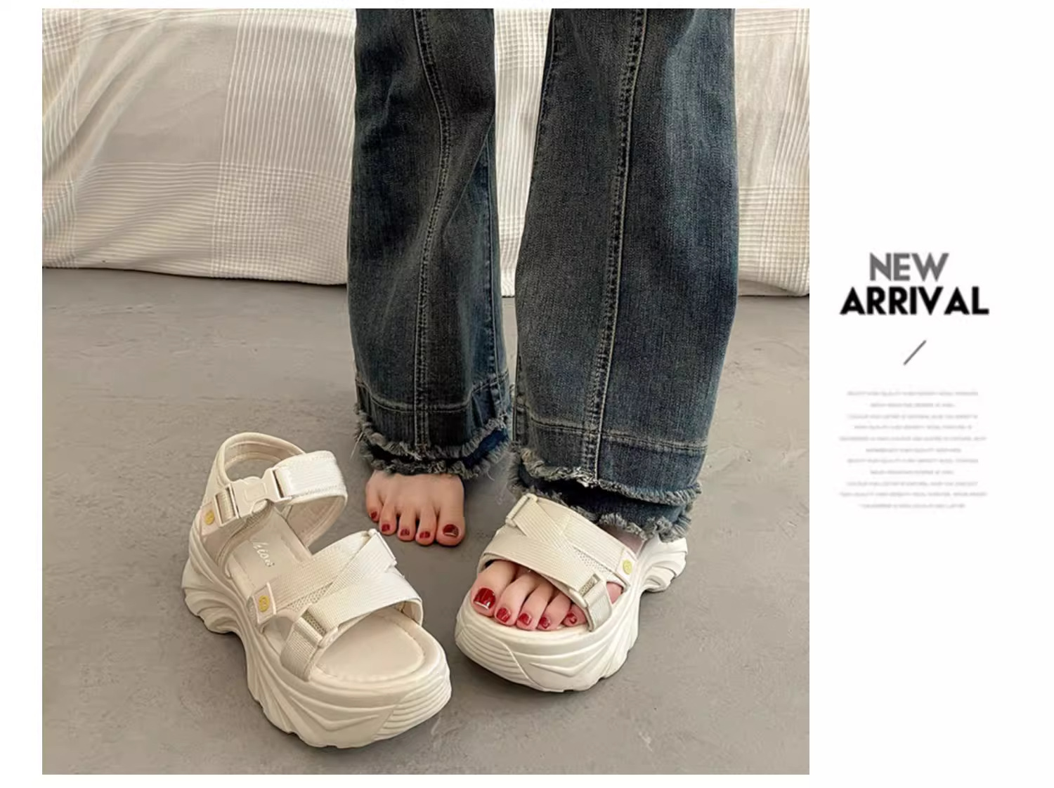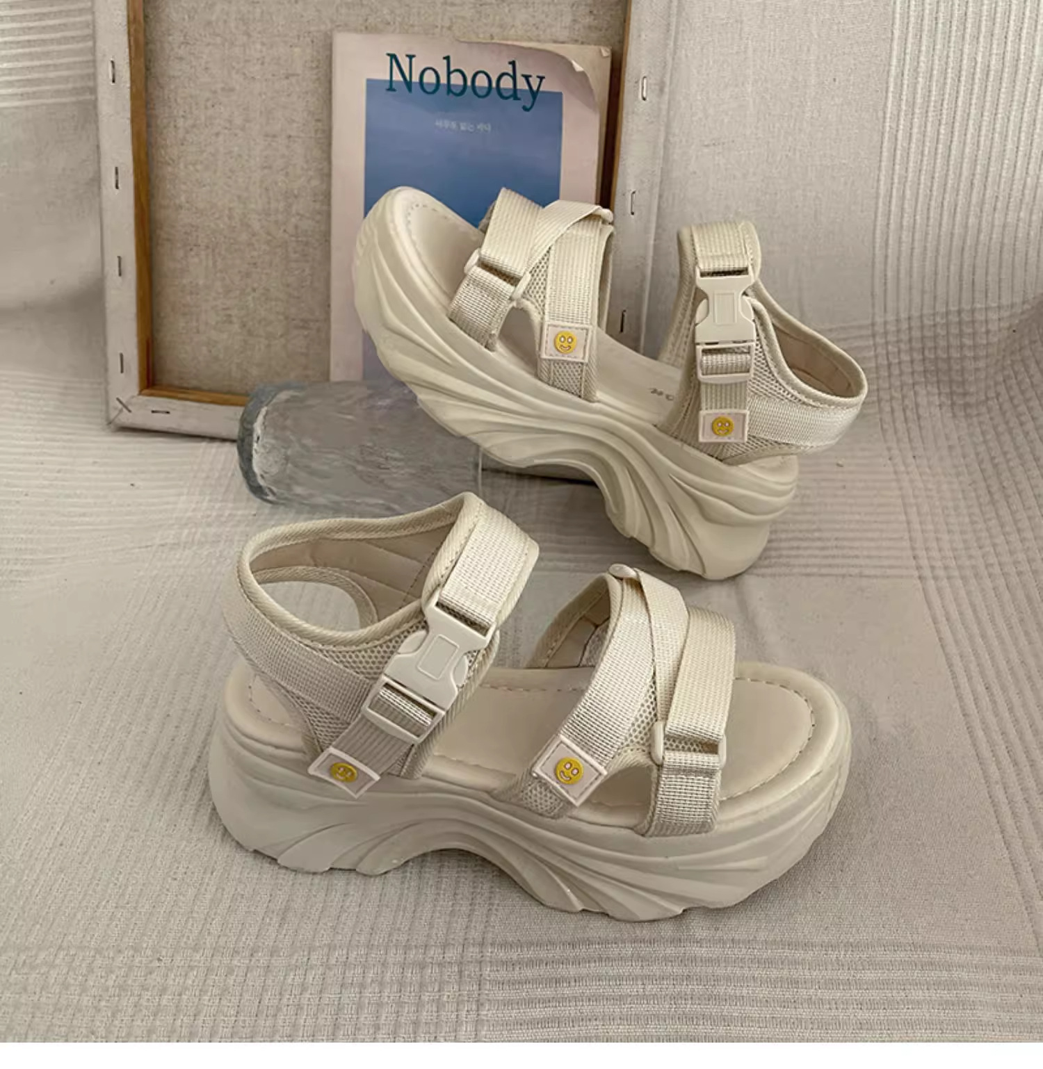 여름 아우터로 입기 좋은 여성용 핫 스타일 프렌치 두꺼운 밑창 스포츠 샌들, 고급스러운 2025년 신형 웨지힐 비치 로마 슈즈스토어 가기
