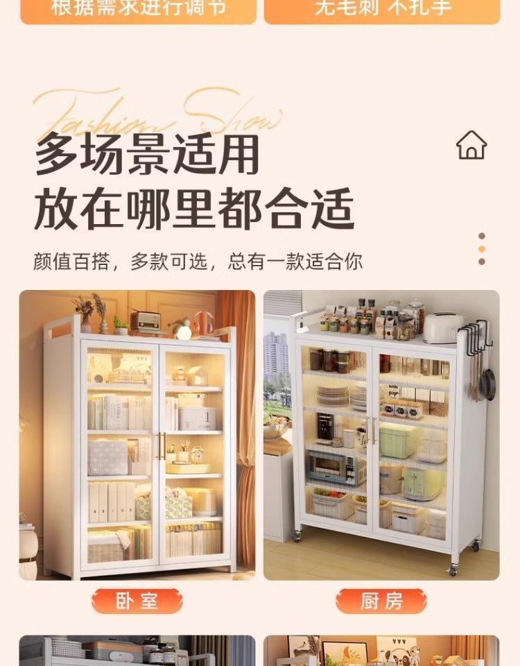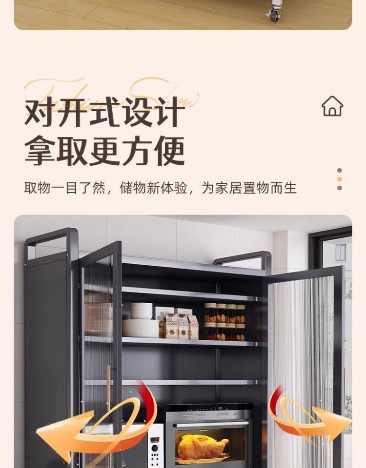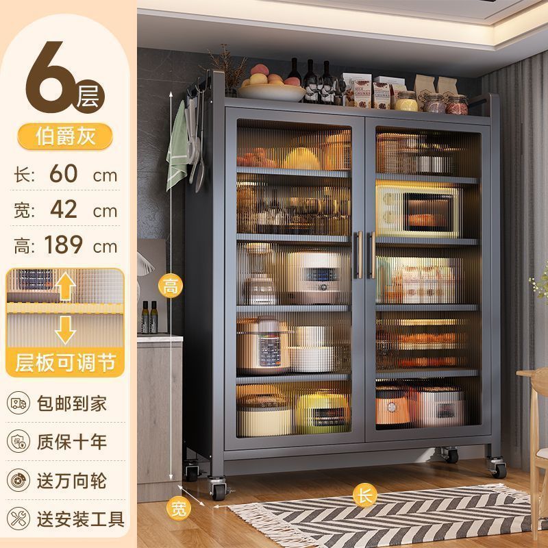 양문형 수납 캐비닛 스테인레스 스틸 수납 선반 바닥에서 천장까지 다층 다기능 전자 레인지 캐비닛 식사 보조 수납 캐비닛스토어 가기