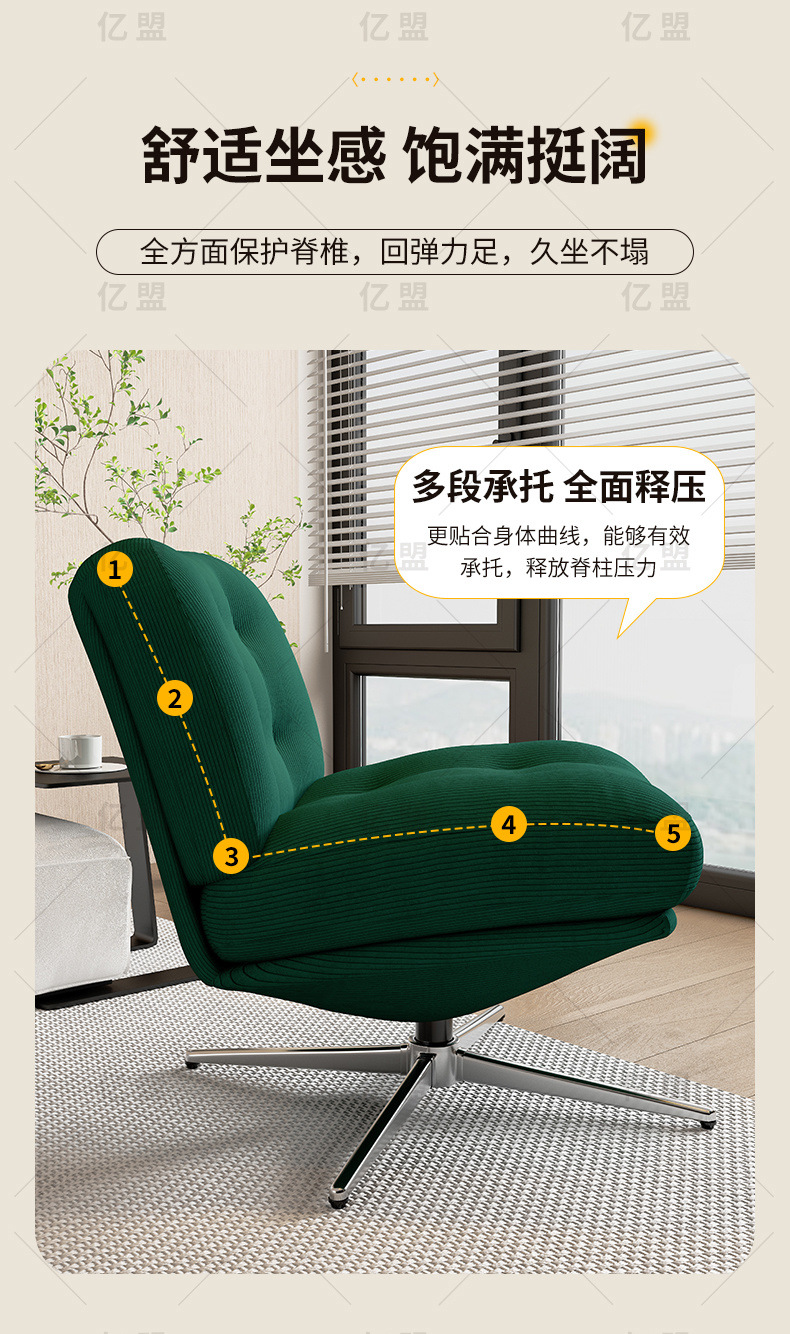 레트로 바우하우스 거실 회전 인터넷 연예인 작은 등받이 레저 의자 게으른 디자이너 소파 의자가 있는 싱글 소파스토어 가기