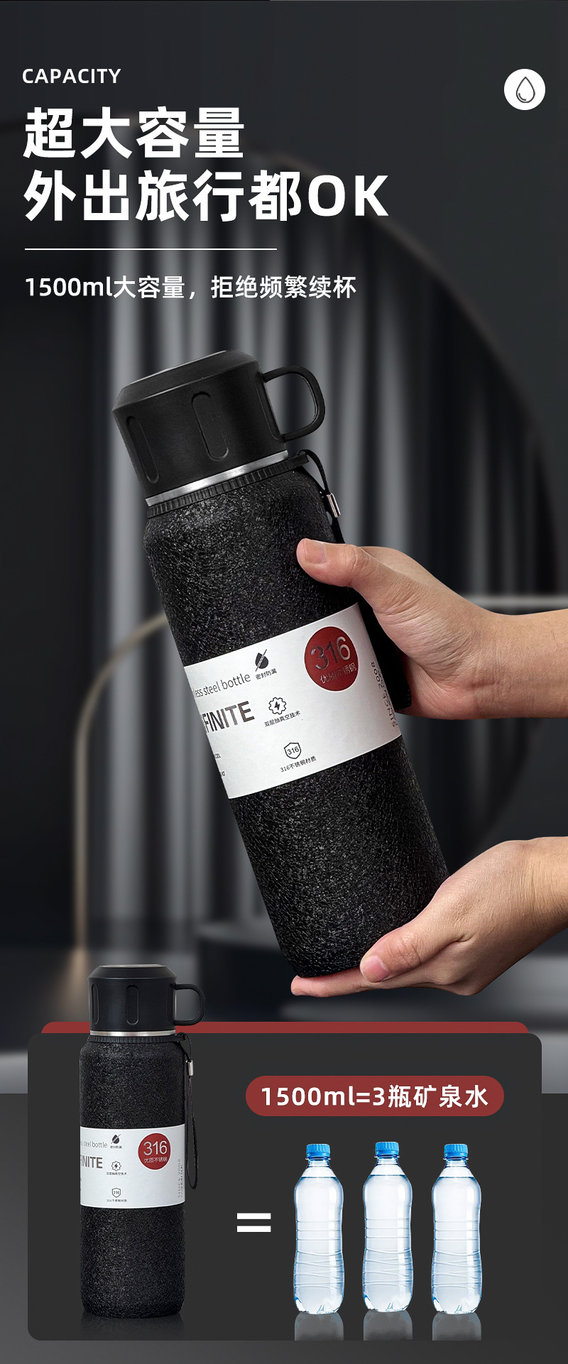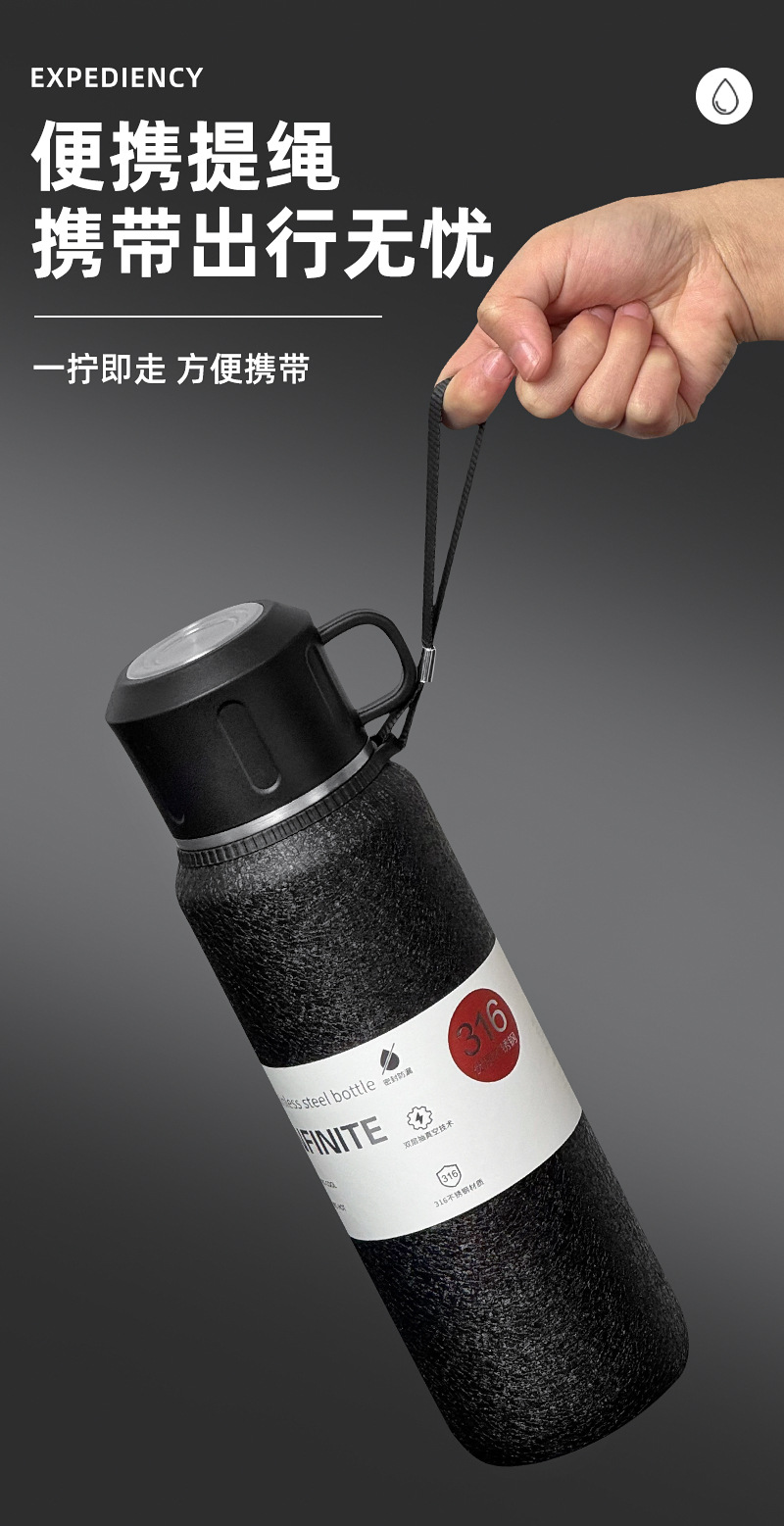316L 스테인레스 스틸 라이너 진공 전체 스틸 절연 주전자 남자 야외 여행 등산 휴대용 대용량 절연 컵