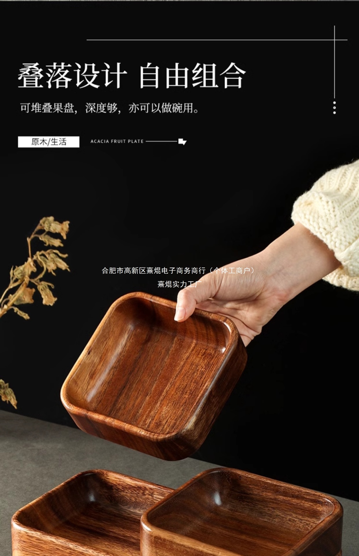 • 아카시아나무 사각접시 15*15cm