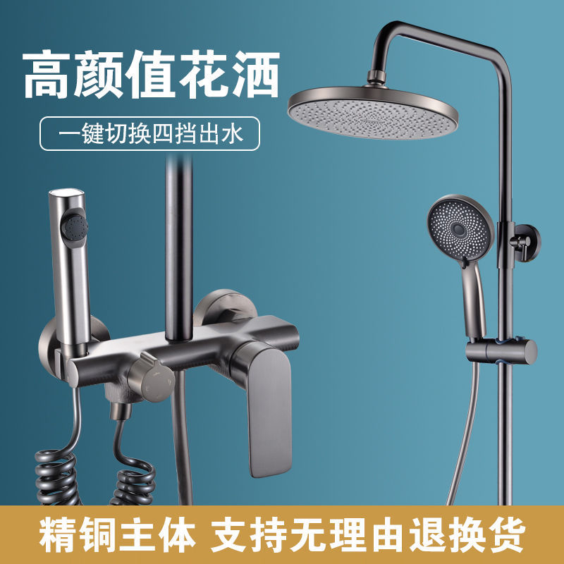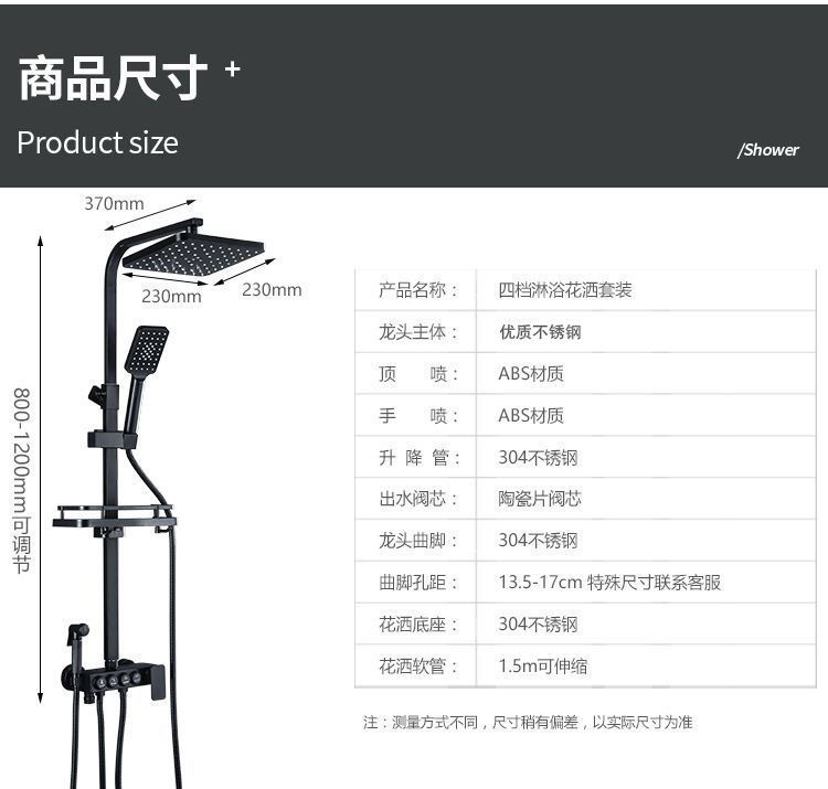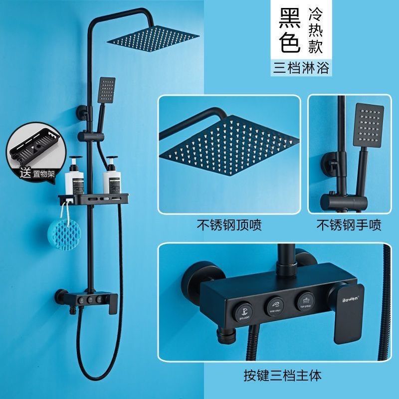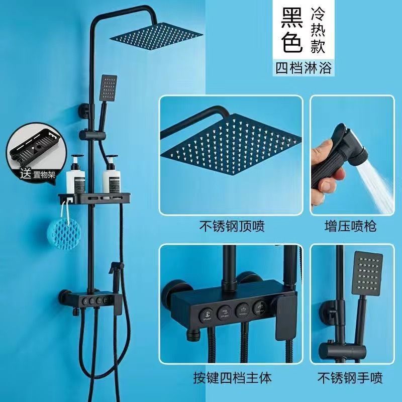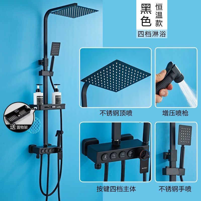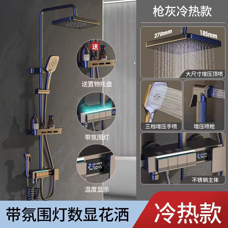 블랙 스테인레스 스틸 샤워 헤드 세트 욕실 샤워기 욕실 샤워 헤드 디지털 디스플레이로 부스터스토어 가기
