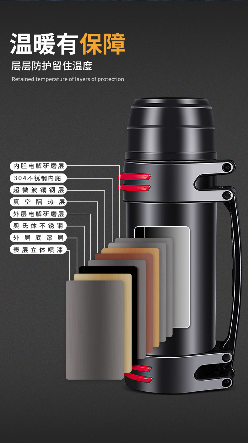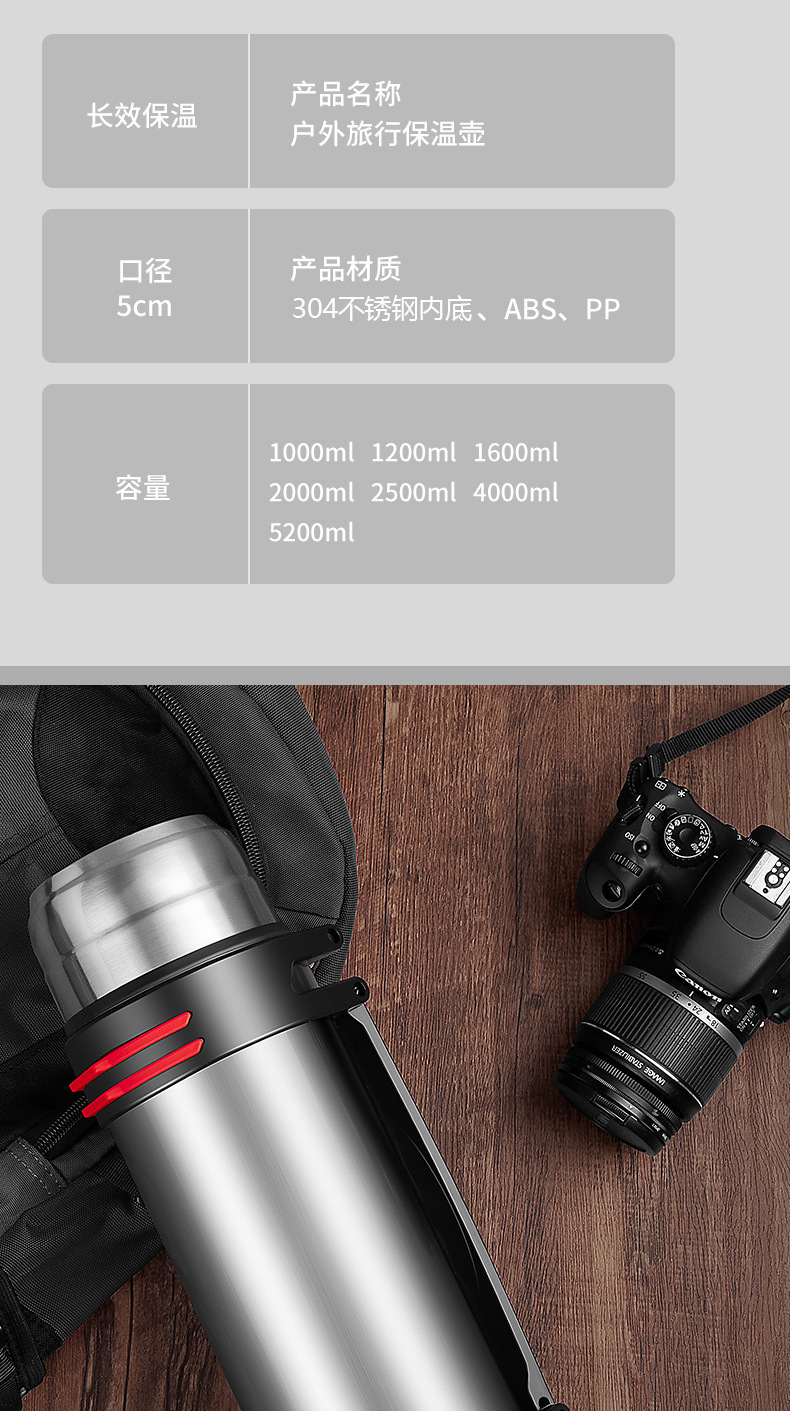 2 리터 대용량 304 스테인레스 스틸 절연 등산 주전자 경량 야외 휴대용 남성용 자동차 여행 스튜 주전자 도매