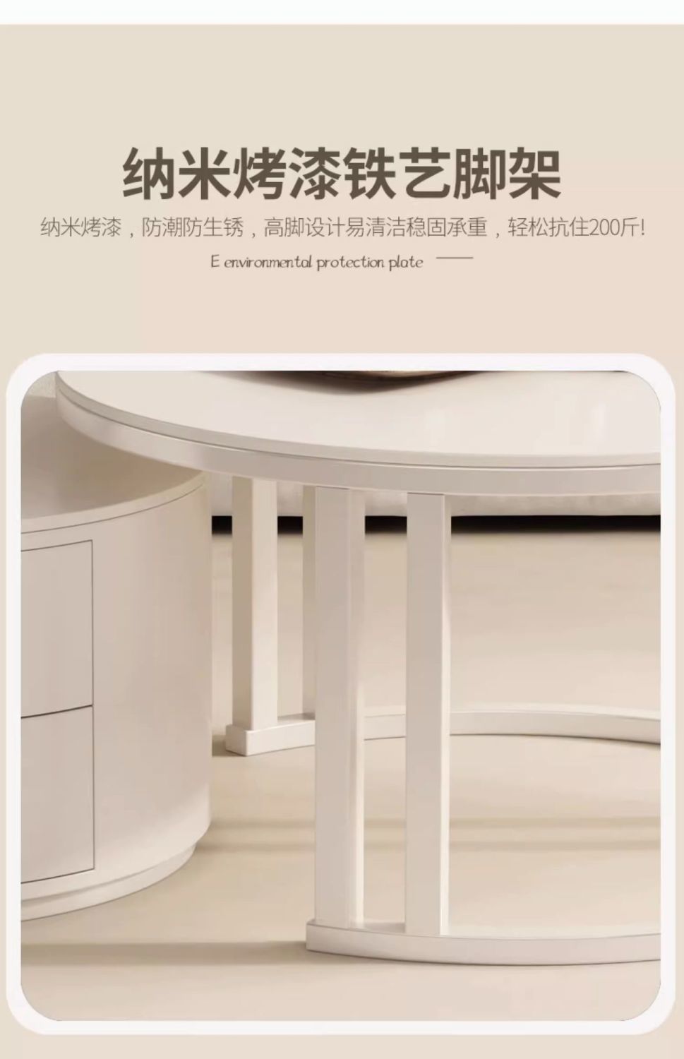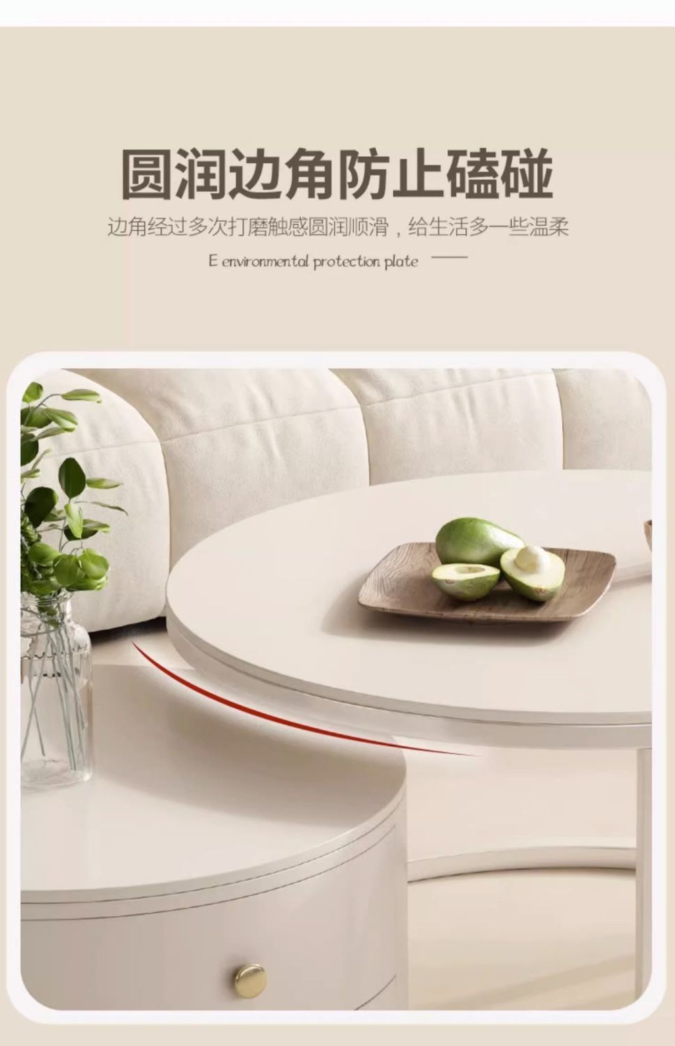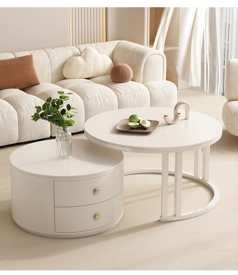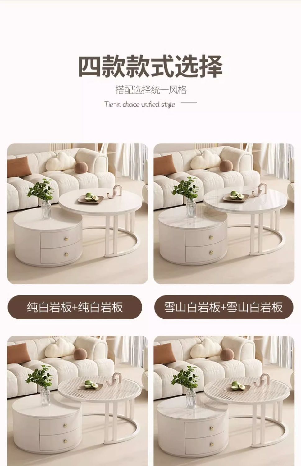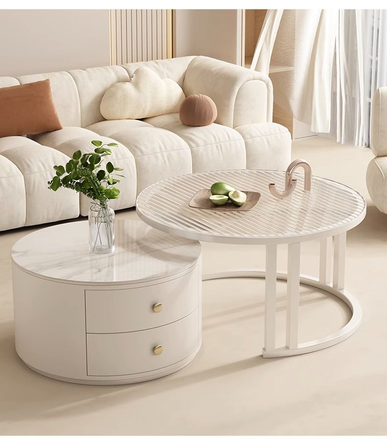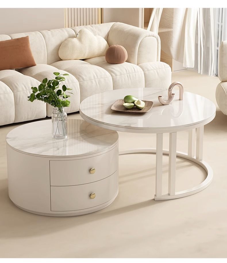 크림 스타일 슬레이트 커피 테이블 작은 아파트 거실 홈 인기 커피 테이블 현대적인 가벼운 럭셔리 라운드 커피 테이블 테이블 조합스토어 가기
