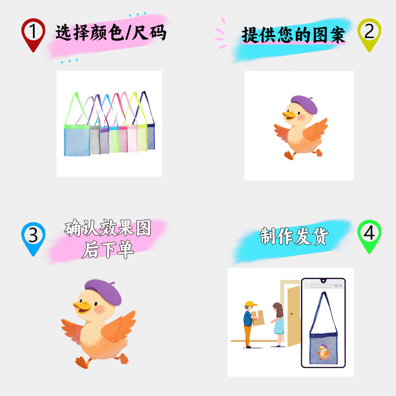 어린이용 메쉬백, 해변 장난감, 대용량 수납가방, 모래채기 도구, 잡화수납 메쉬 해변가방, 대행 가능
