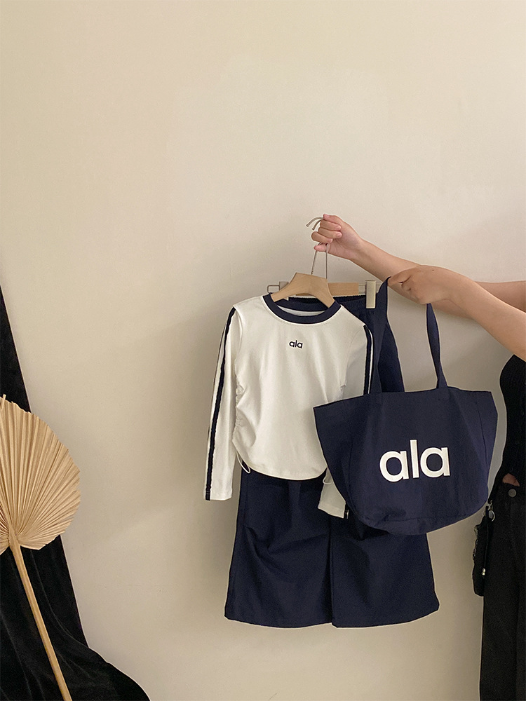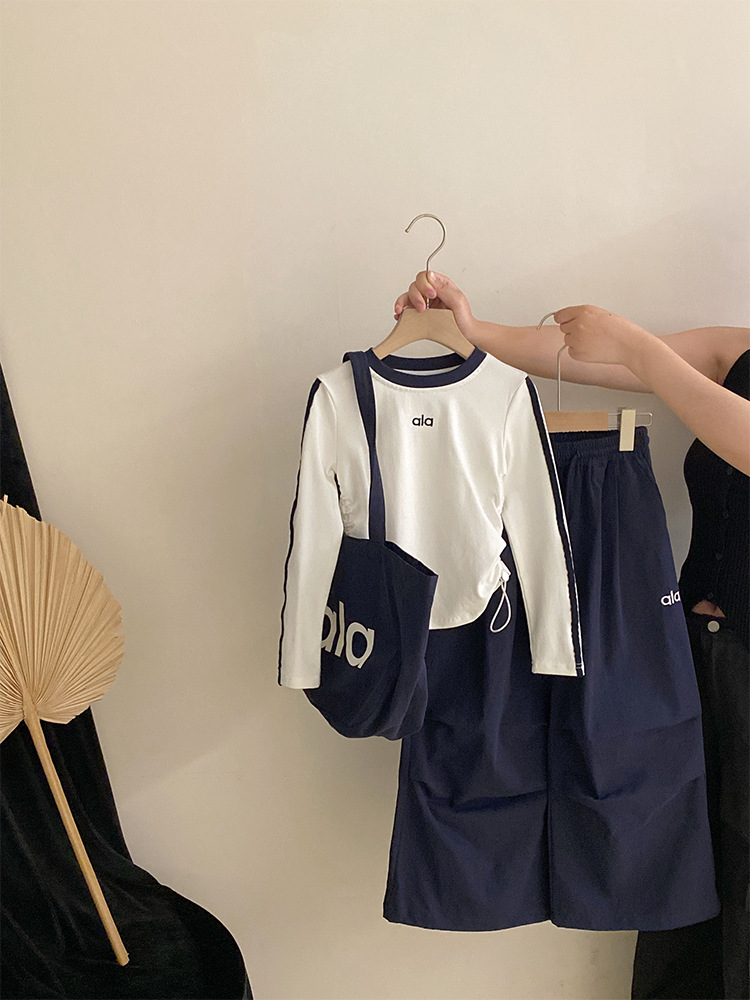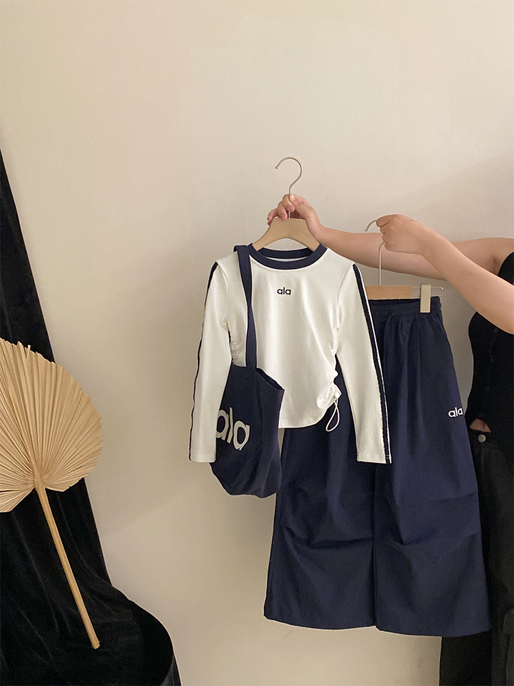 한국 여아 가을 상의 2025 신상 중대형 아동 레터탑, 다용도 바지, 가방, 투피스 트렌디 세트