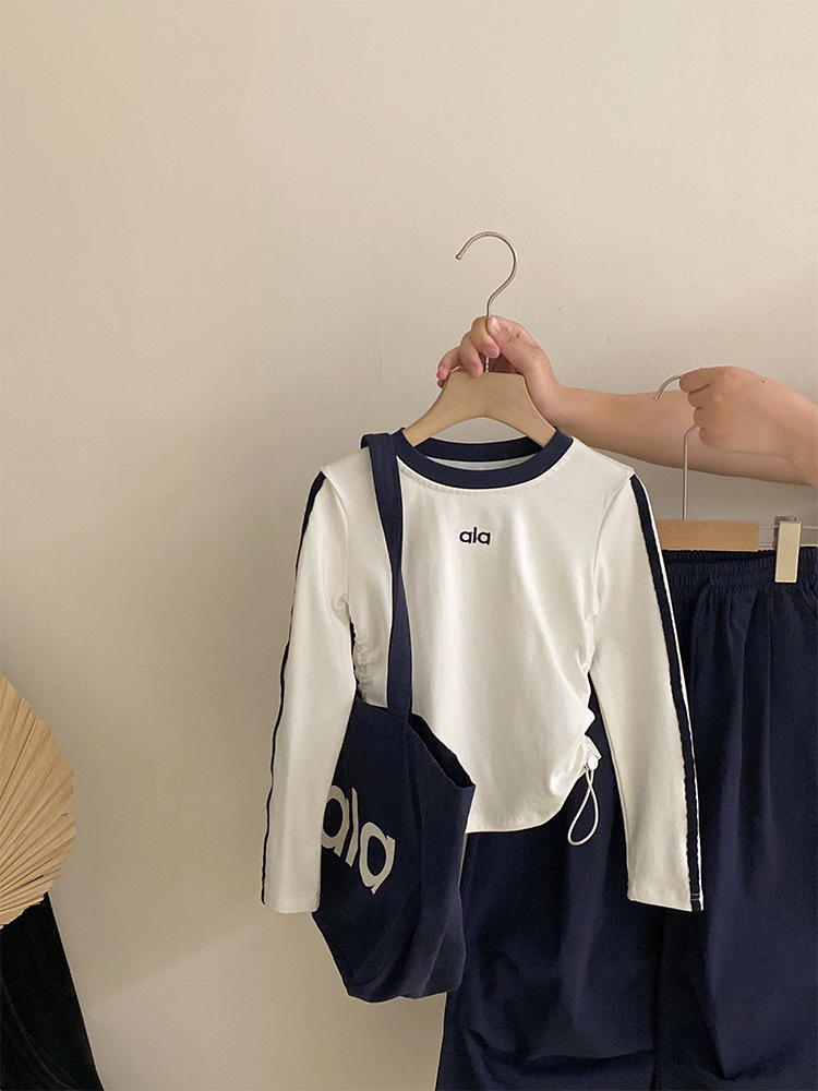 한국 여아 가을 상의 2025 신상 중대형 아동 레터탑, 다용도 바지, 가방, 투피스 트렌디 세트스토어 가기