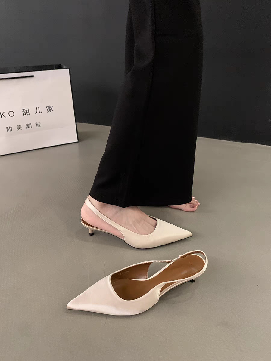 여성을 위한 우아한 하이힐 2025 여름 새로운 스타일 프렌치 부드럽고 우아한 보라색 뾰족한 발가락 얕은 굽 샌들스토어 가기