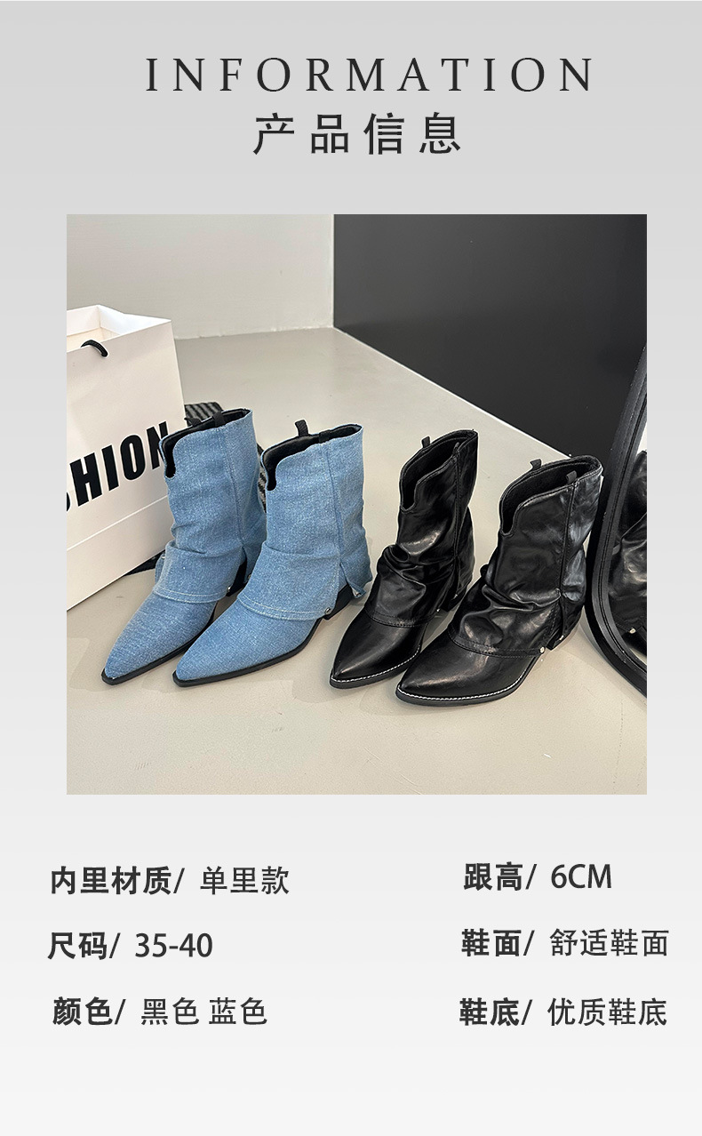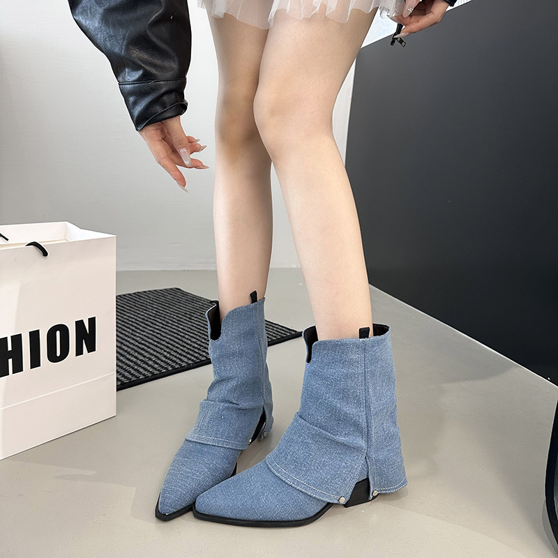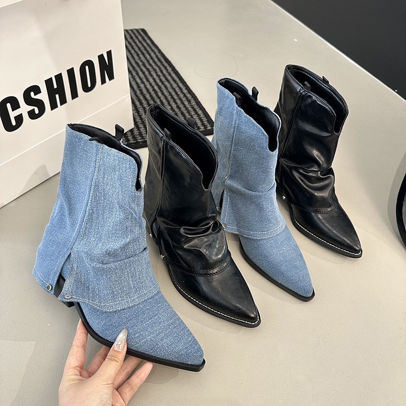 트렌디한 두꺼운 굽의 포인티드 토 팬츠 부츠, 스트리트 스타일의 짧은 부츠, 여성화, 2025 봄 여름 신상 겨울 웨스턴 카우보이 부츠스토어 가기