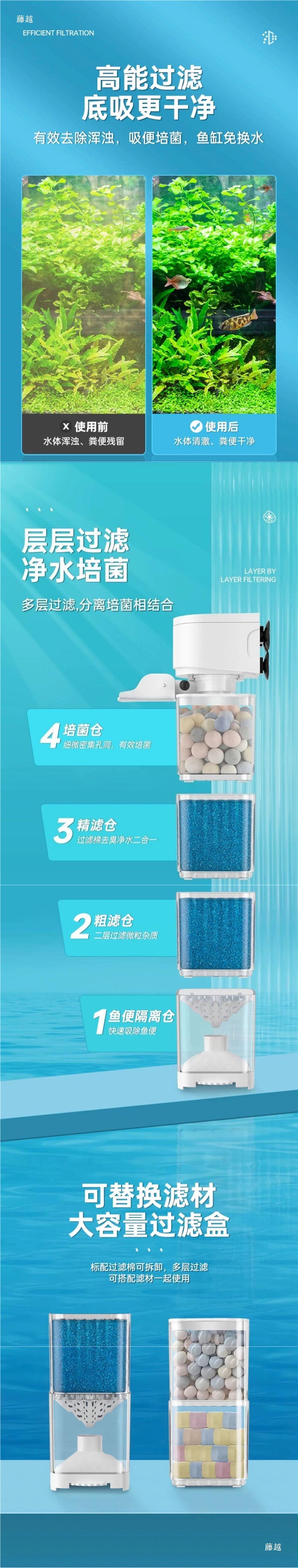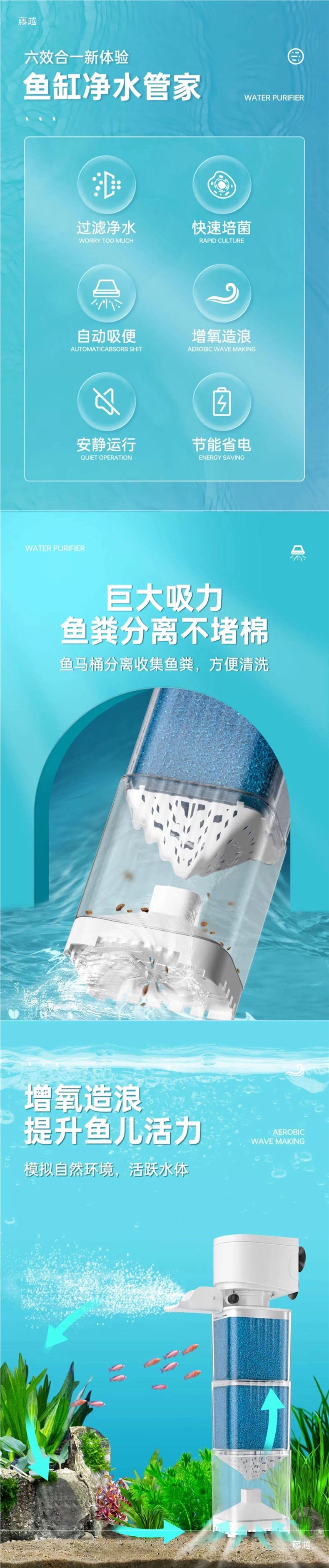 3-in-1 사이펀 물고기 변기, 수조 필터, 질화 박테리아 배설물 분리기, 산소 공급 및 정수 순환 시스템스토어 가기