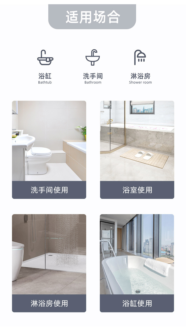 –产品适用于浴缸内,国外客户特别喜欢,背面多个强力吸盘,浴室防滑效果更安全的选择;