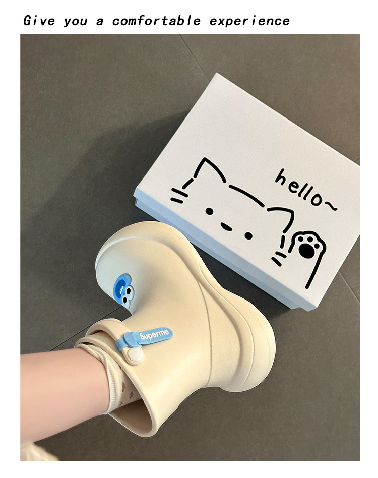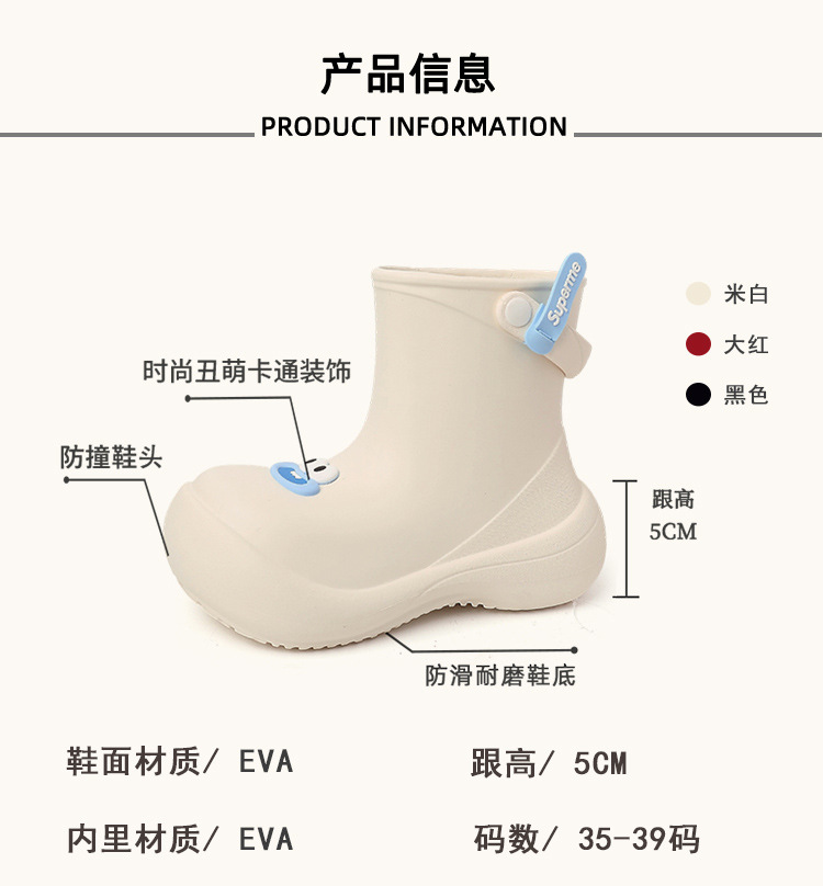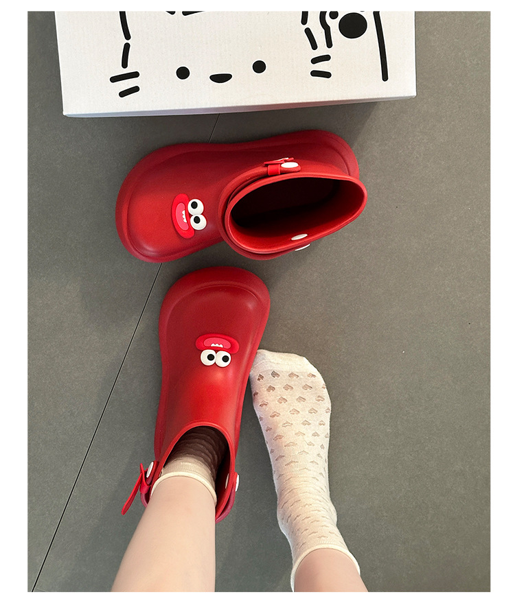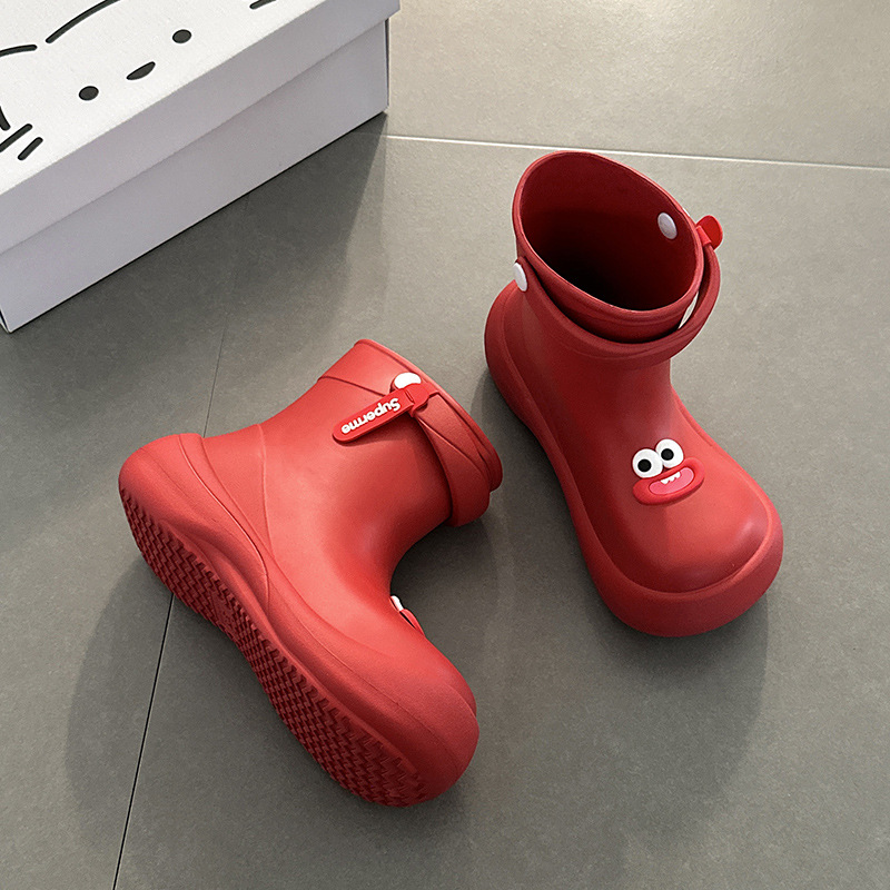 만화 짧은 부츠 귀여운 큰 눈 장화 여성 여름 패션 외출용 부드러운 두꺼운 밑창 캐주얼 미끄럼 방지 장화 트렌디스토어 가기