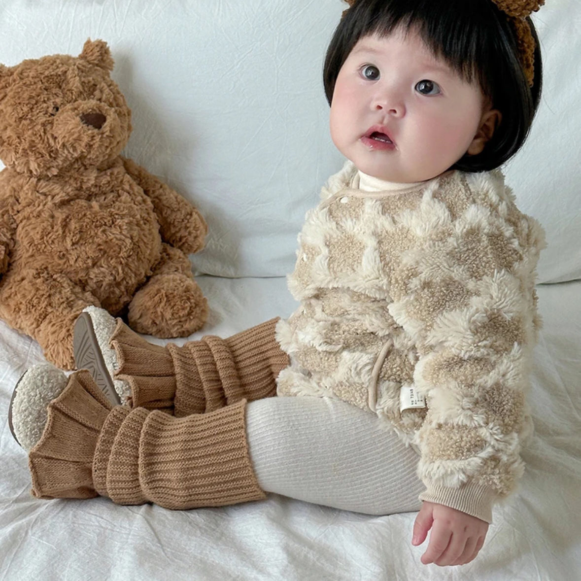 여아용 나팔형 종아리 양말, 귀여운 아동용 가을 겨울 방한 보온 레그워머, 아동용 파일 양말