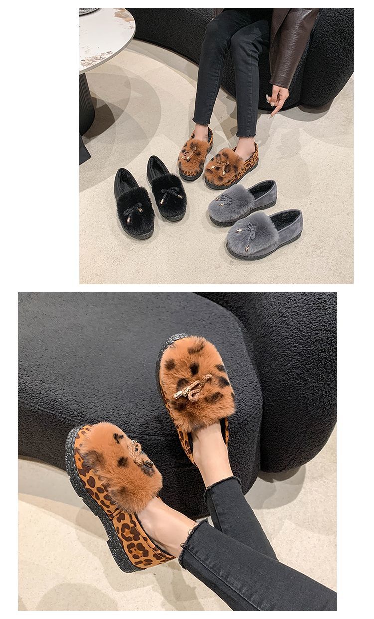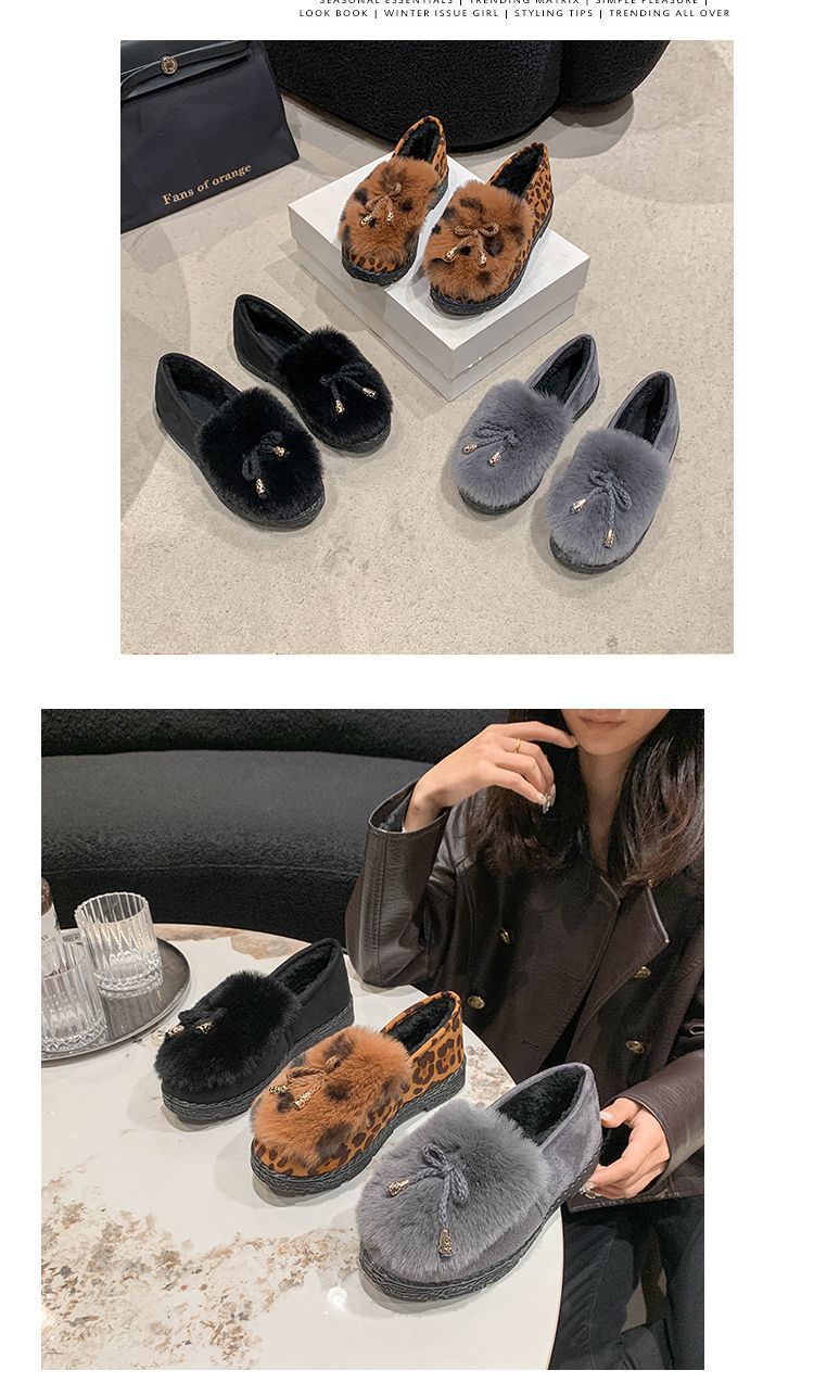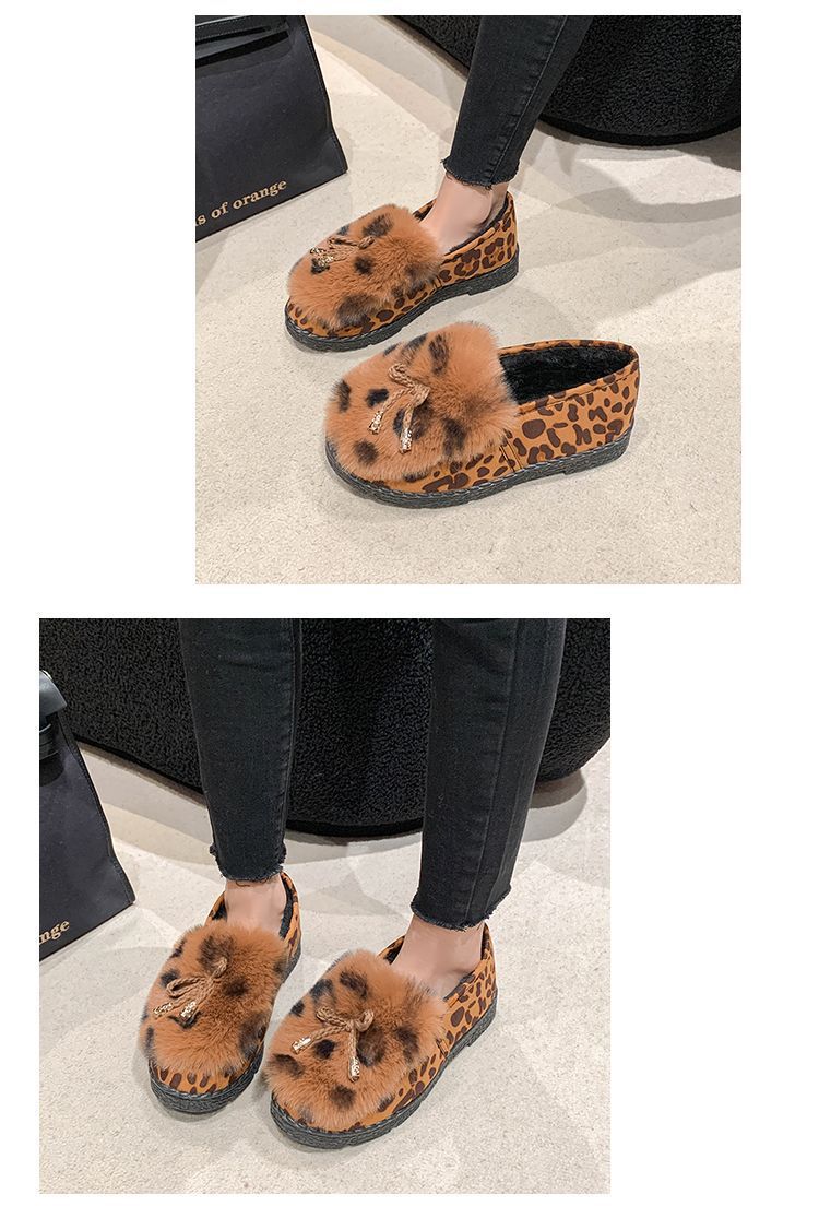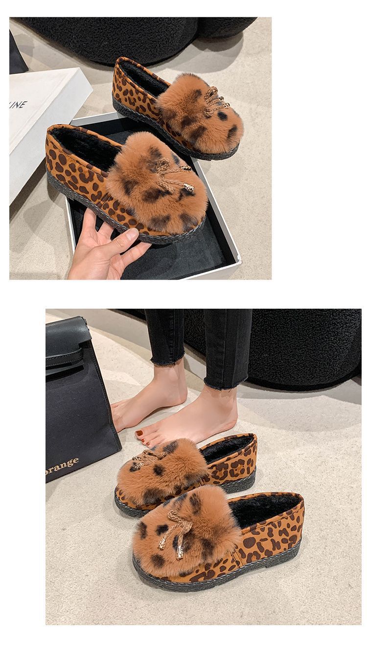 패셔너블한 레오파드 프린트 비니 슈즈, 플랫 블랙 슈즈, 부드러운 밑창 슬립온, 여성용 올드 베이징 천 신발, 2025 가을 겨울 새로운 스타일스토어 가기