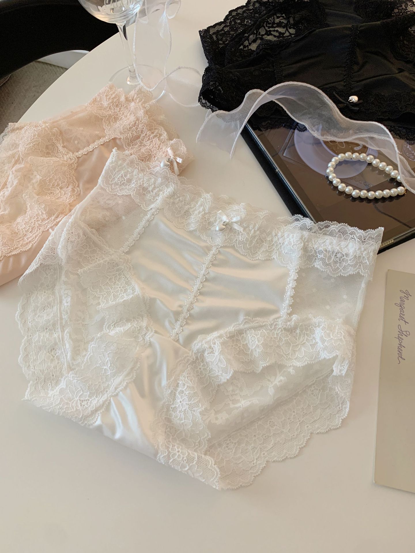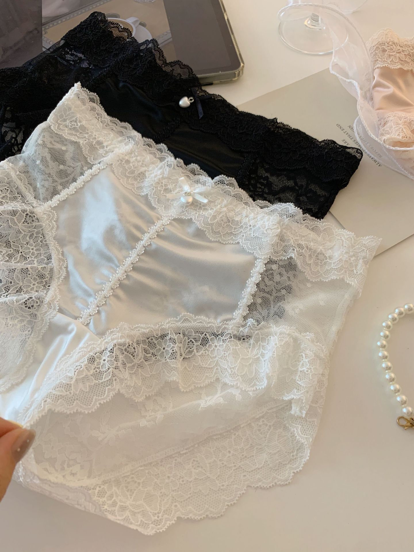 사랑 작은 진주 레이스 속옷 여성 섹시한 순수한 욕망 중간 허리 통기성 얇은 소녀 팬티 2025 새로운 스타일