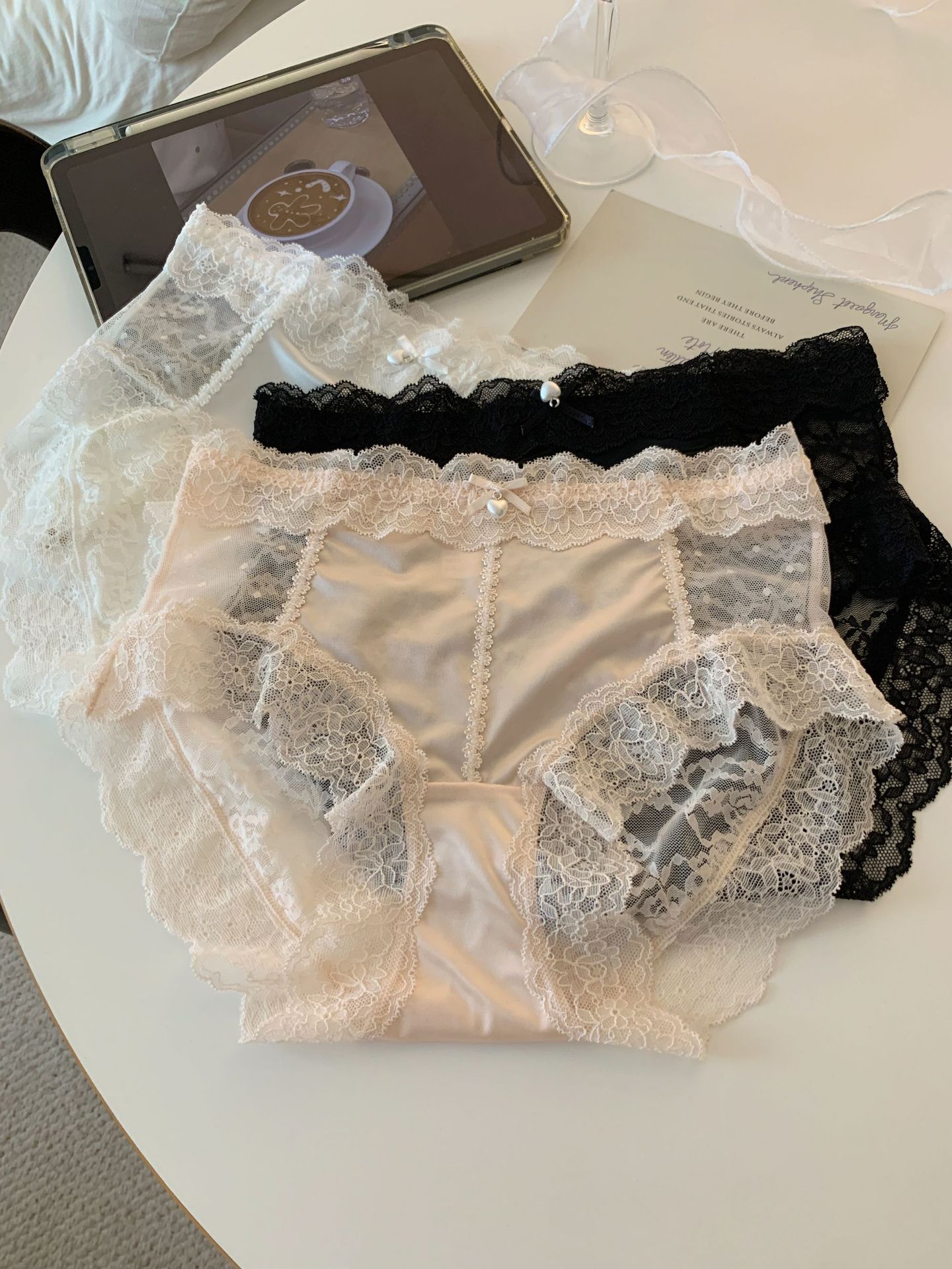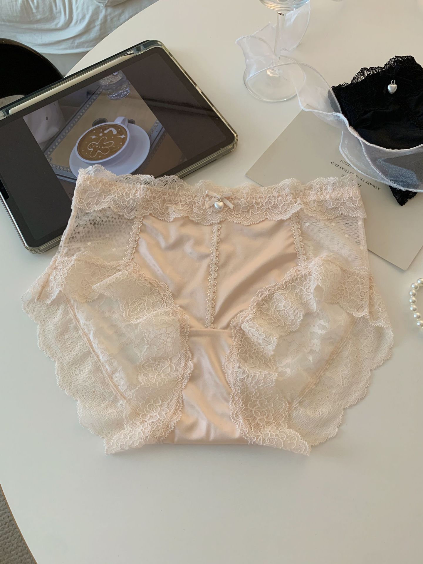 사랑 작은 진주 레이스 속옷 여성 섹시한 순수한 욕망 중간 허리 통기성 얇은 소녀 팬티 2025 새로운 스타일스토어 가기