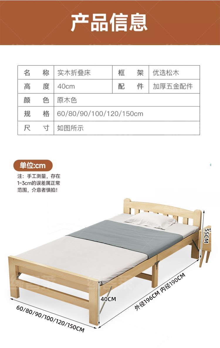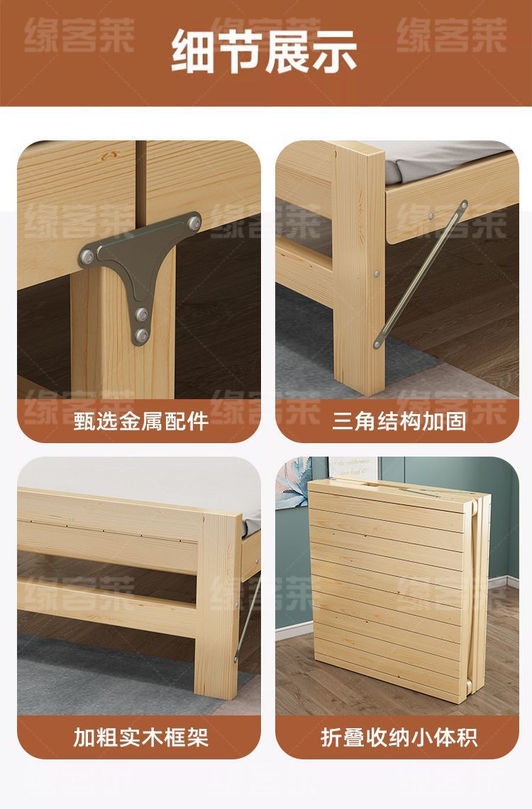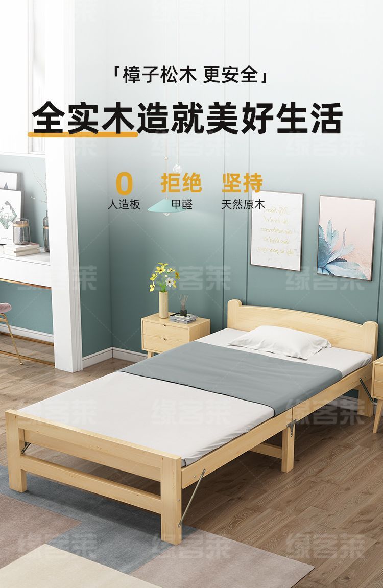 원목 접이식 침대 가정용 싱글 침대 1.2m 임대실 어린이 더블 침대 성인 낮잠 사무실 간이 침대