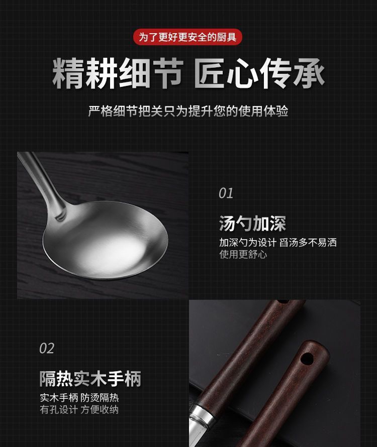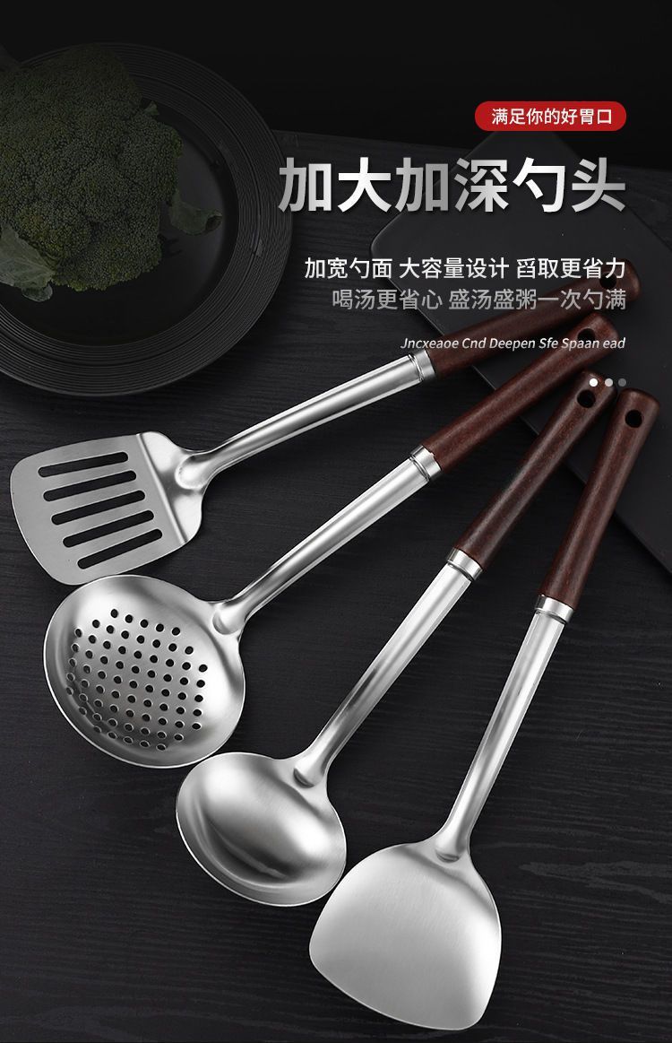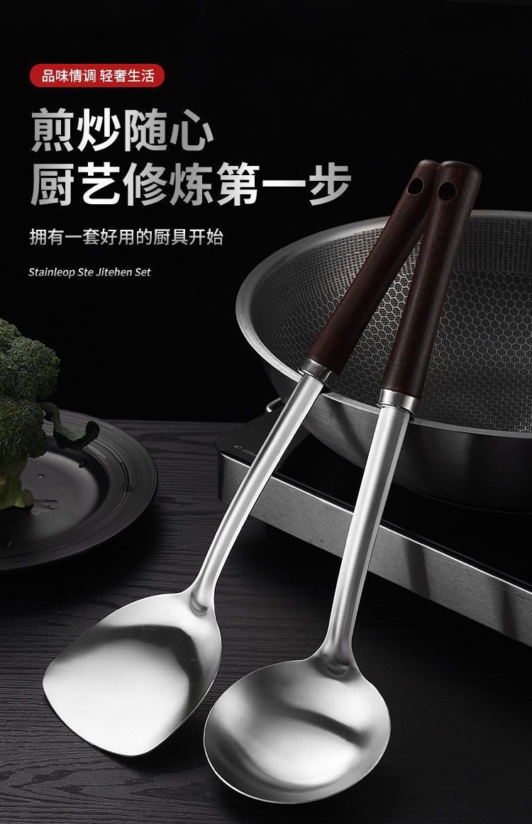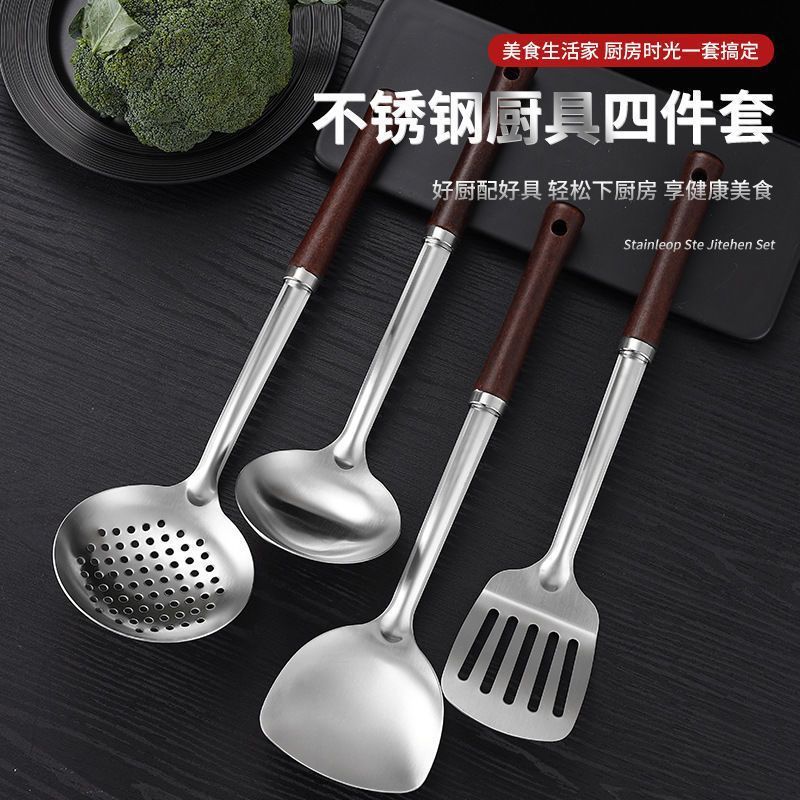 스테인레스 스틸 주걱, 요리 주걱, 주방 가정용 확장 튀김 스푼, 원목 손잡이 스푼, 소쿠리, 프라이팬 주걱, 주방 용품 세트