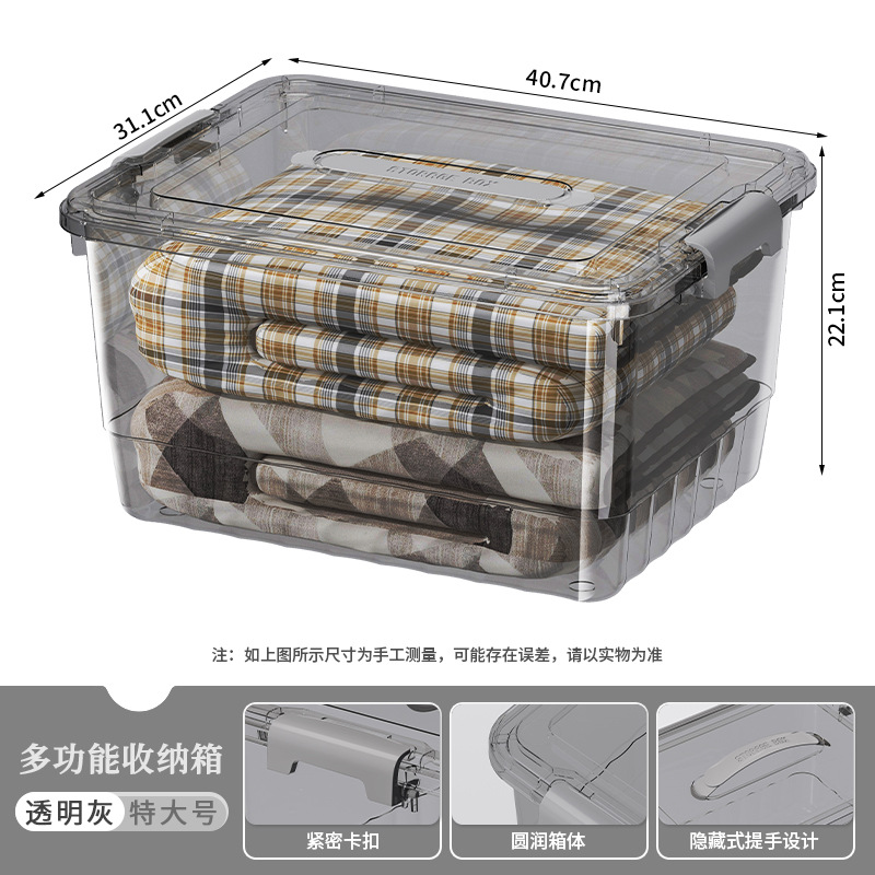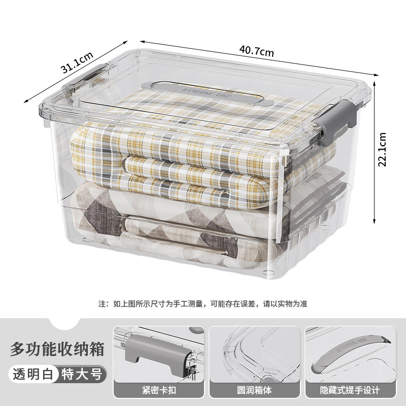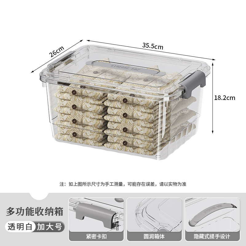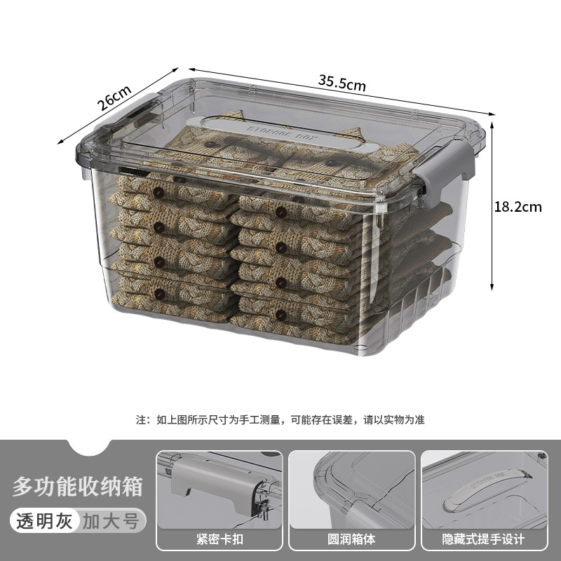 뚜껑과 손잡이가 있는 투명한 수납함, 책, 장난감, 옷 수납함, 대용량 두꺼운 정리함, 수납함스토어 가기