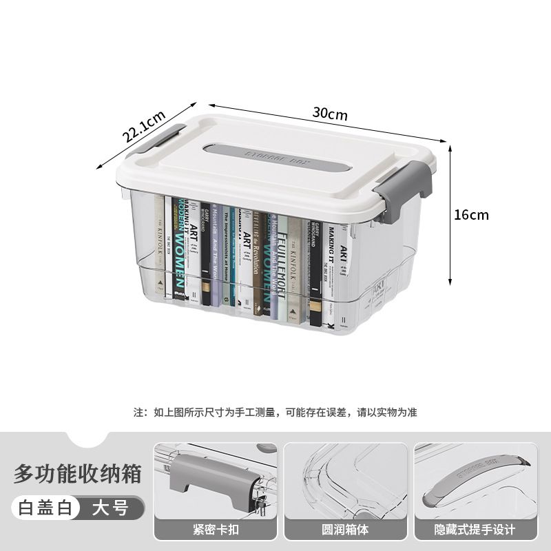 뚜껑과 손잡이가 있는 투명한 수납함, 책, 장난감, 옷 수납함, 대용량 두꺼운 정리함, 수납함