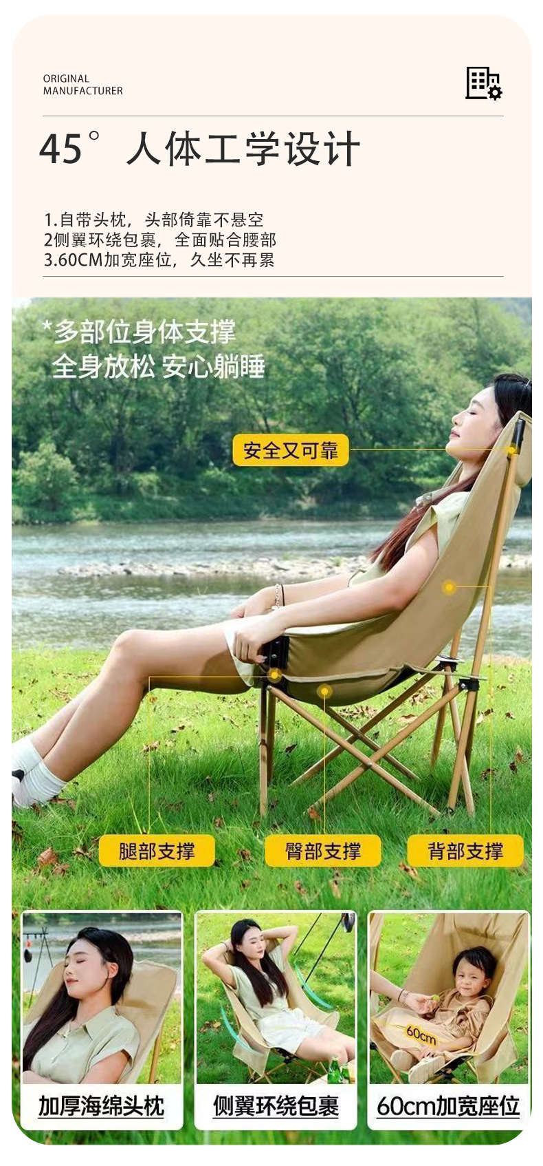 야외 캠핑 접이식 의자 휴대용 낚시 피크닉 해변 의자 높은 등받이 문체어 사무실 점심시간 휴식 의자