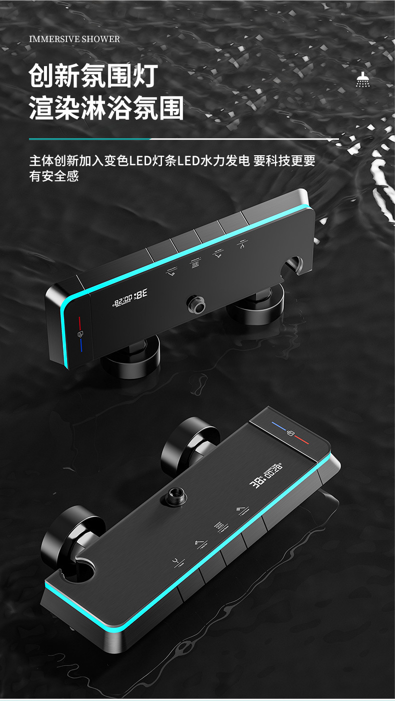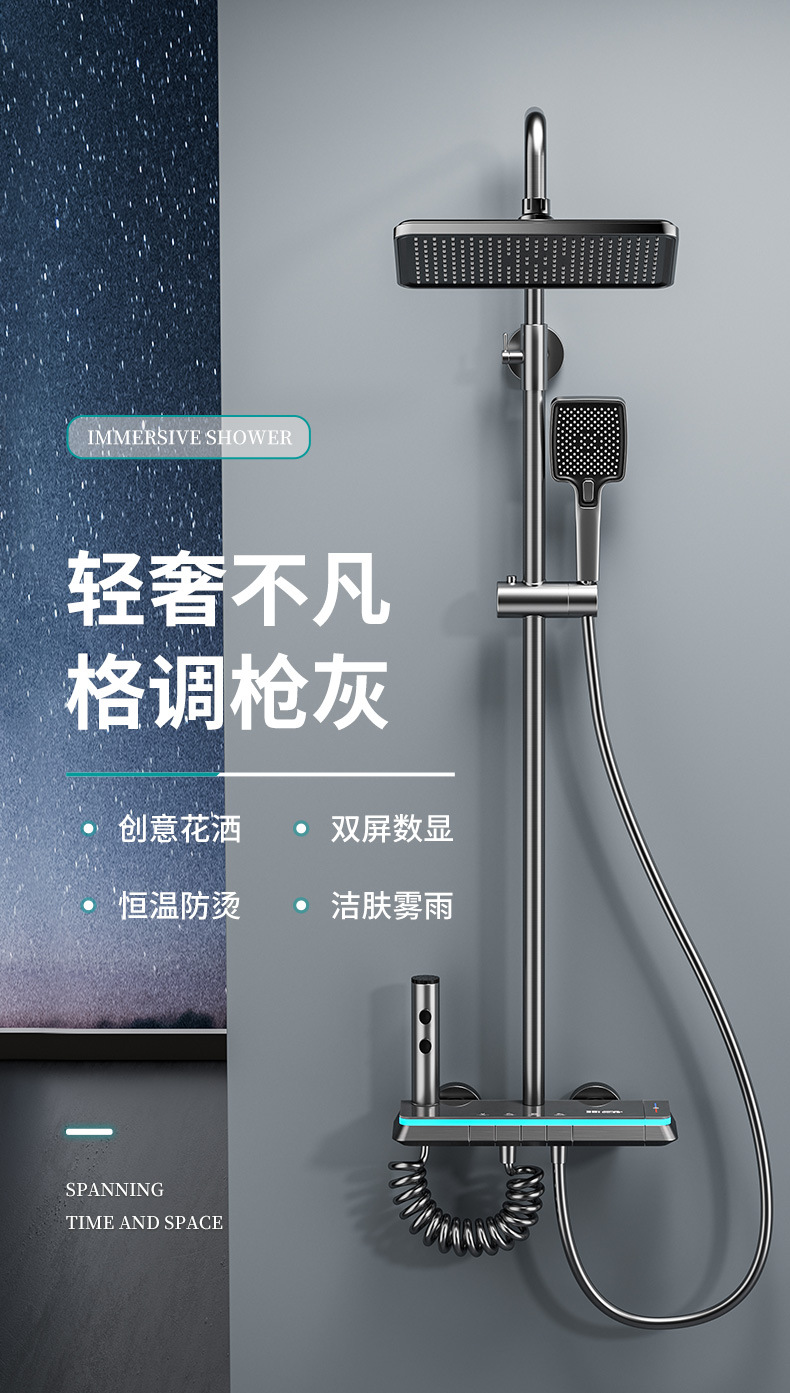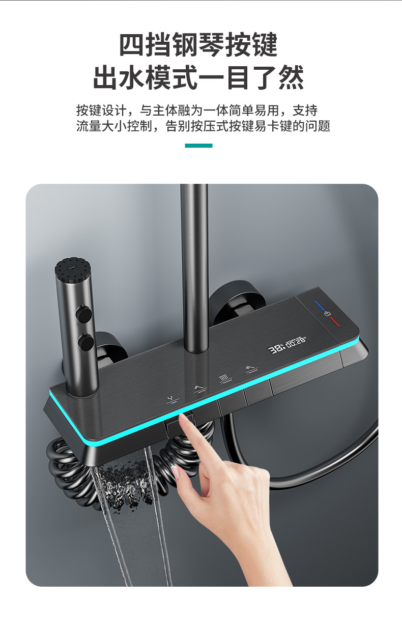 샤워 헤드 세트 디지털 디스플레이 일정한 온도 전체 구리 가정용 욕실 화장실 레인 부스터 샤워 헤드