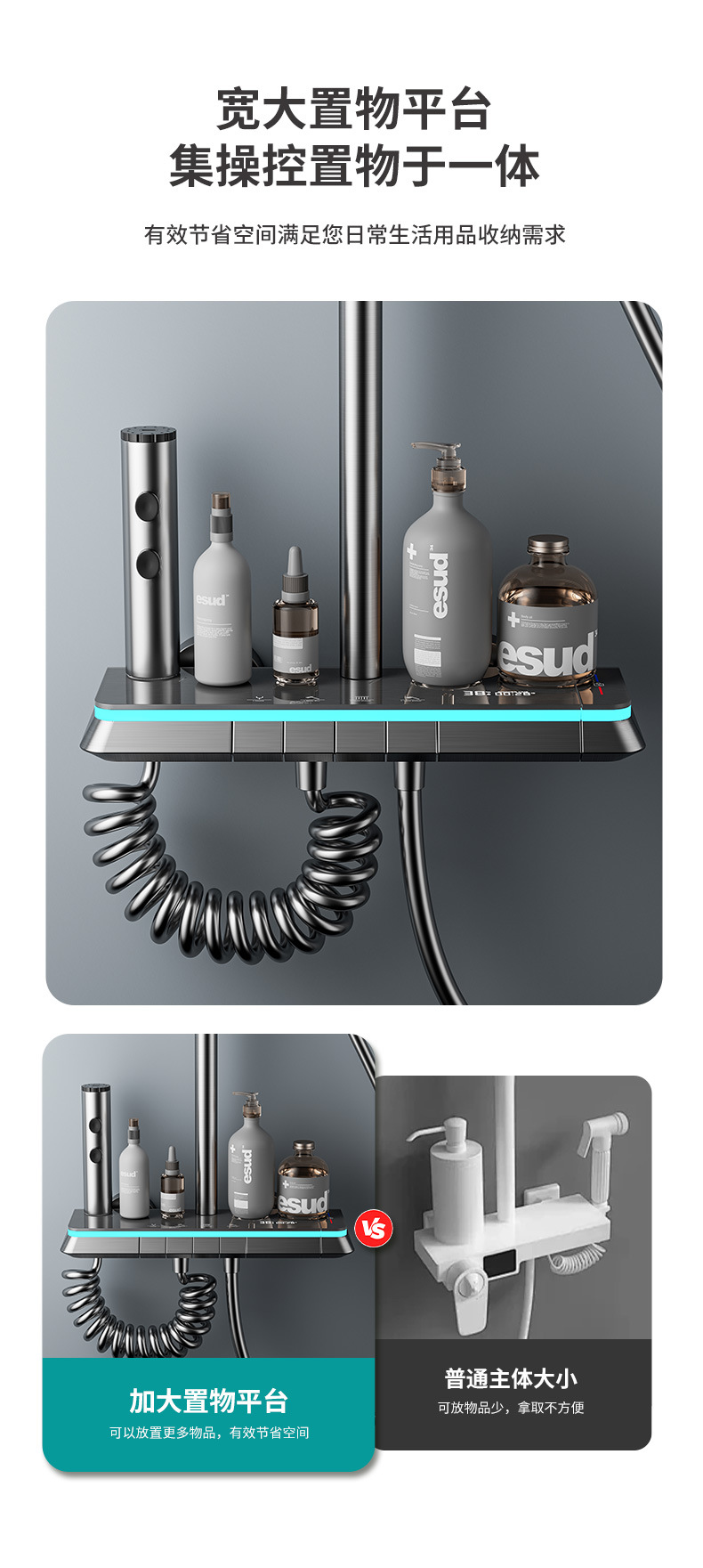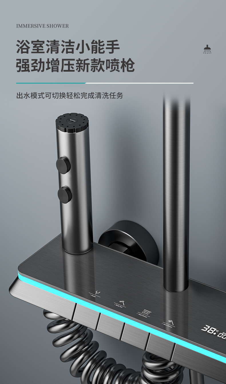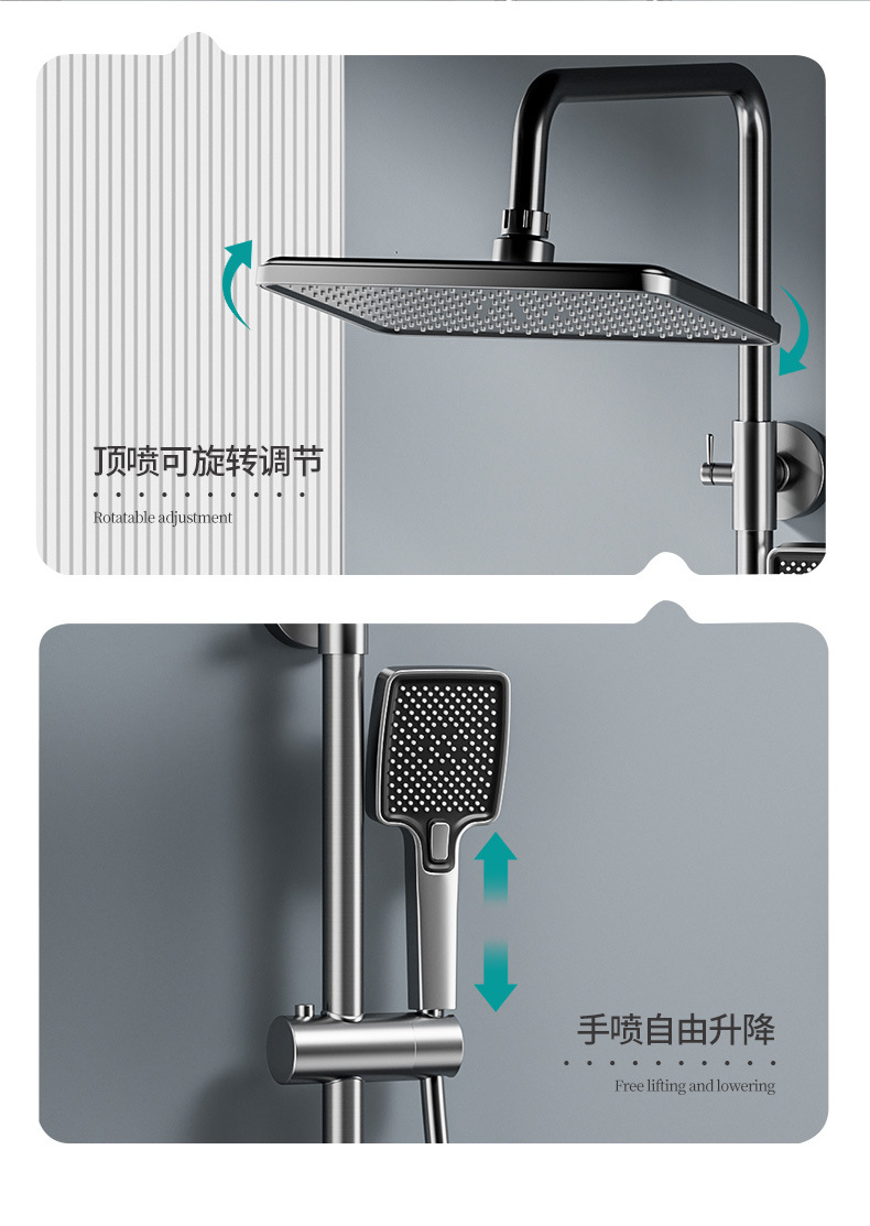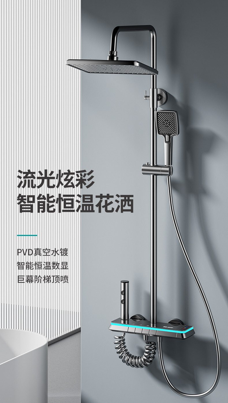 샤워 헤드 세트 디지털 디스플레이 일정한 온도 전체 구리 가정용 욕실 화장실 레인 부스터 샤워 헤드