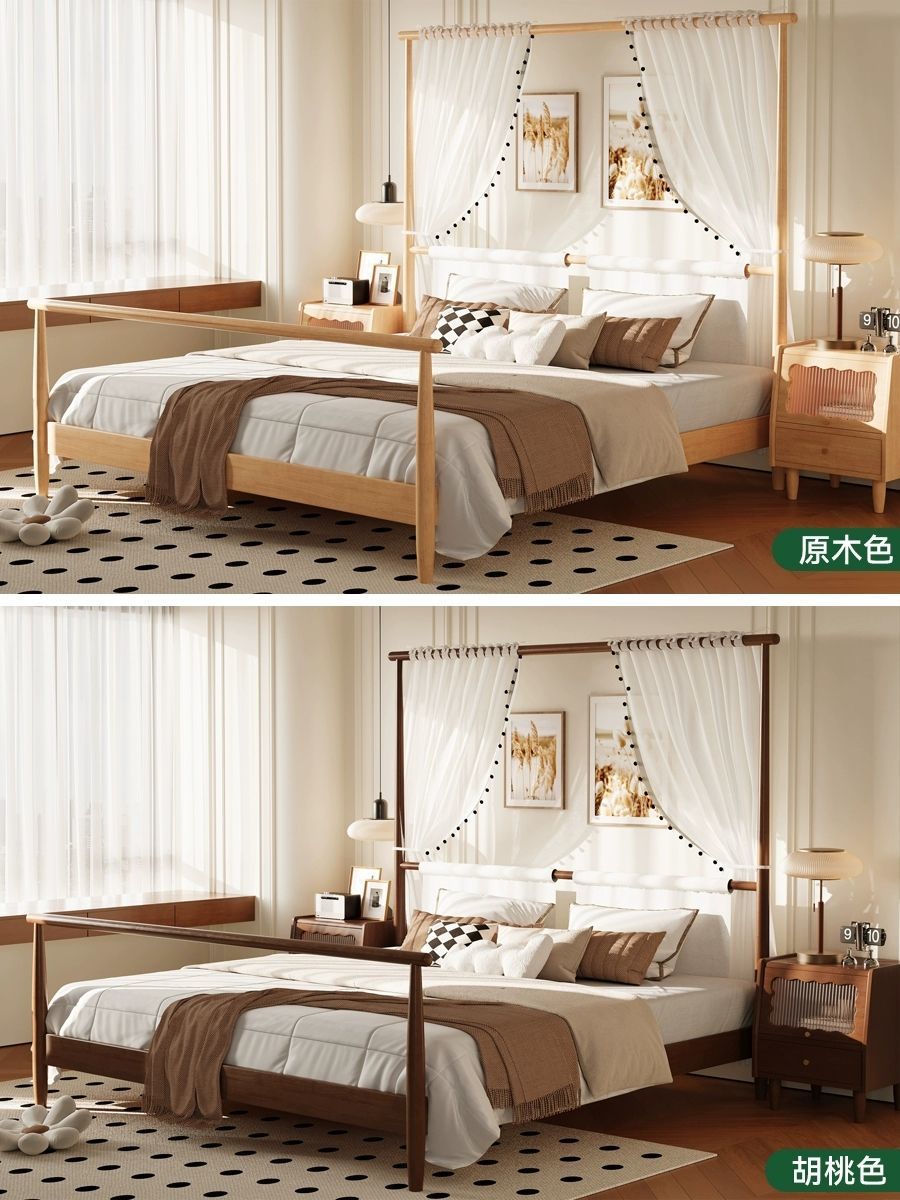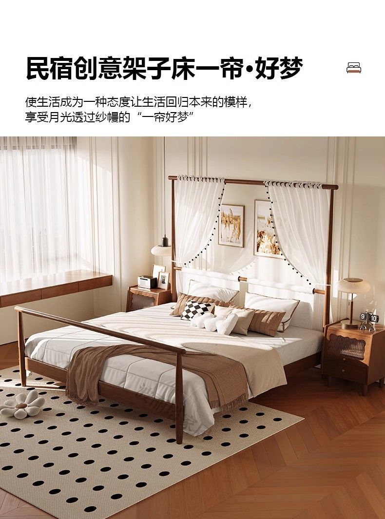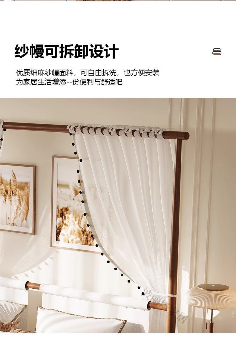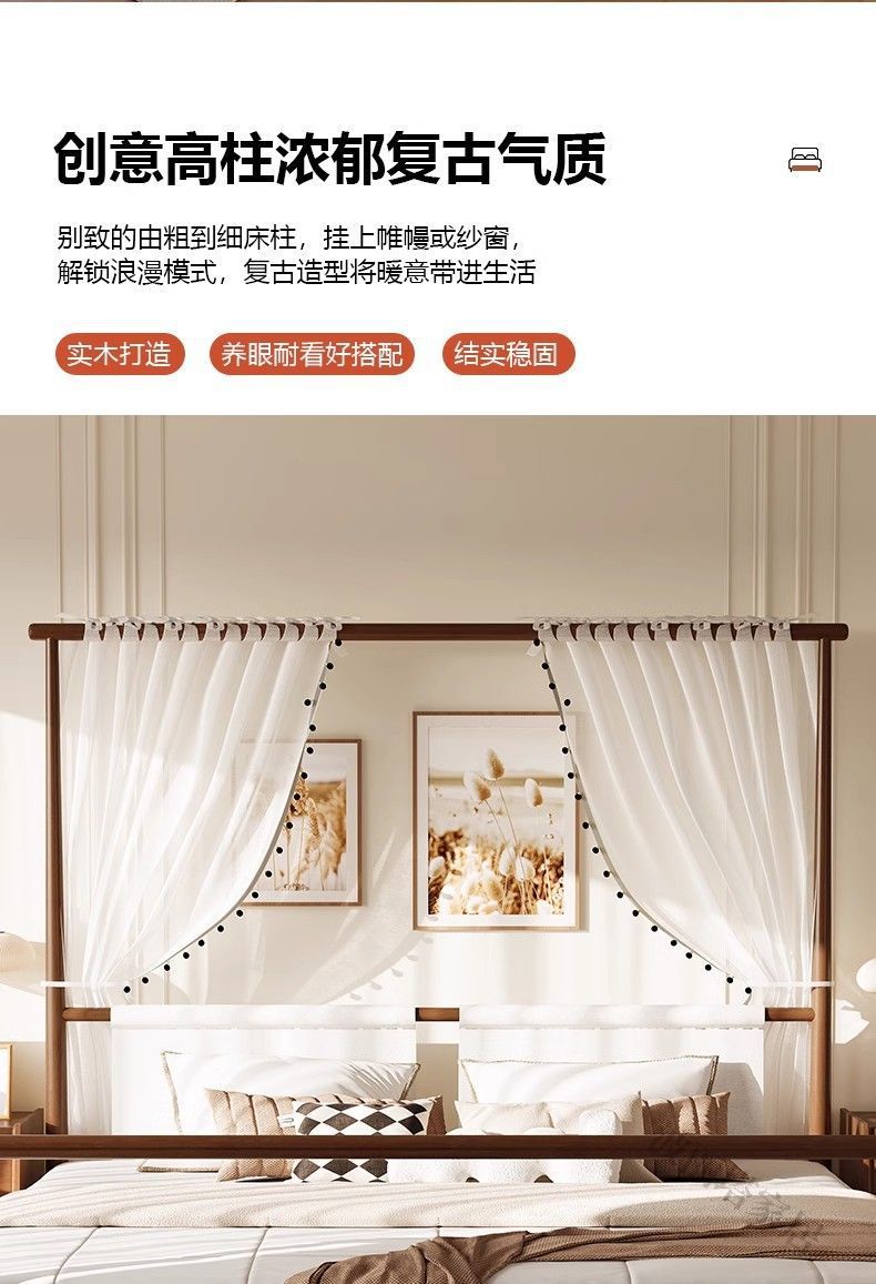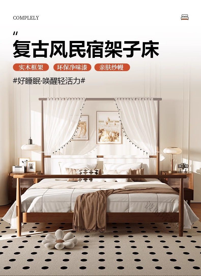 현대적인 미니멀리스트 미국 복고풍 스타일의 단단한 나무 선반 침대 1.5m 싱글 거즈 커튼 1.5m 대형 침대 B&B 스타일 가구스토어 가기