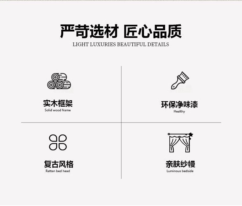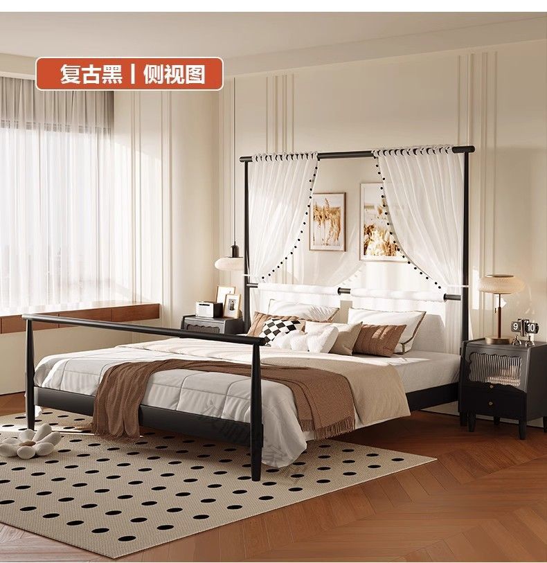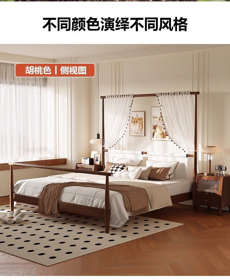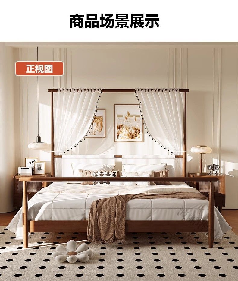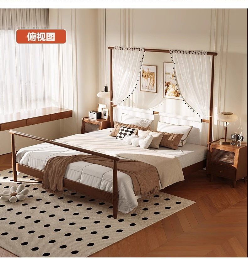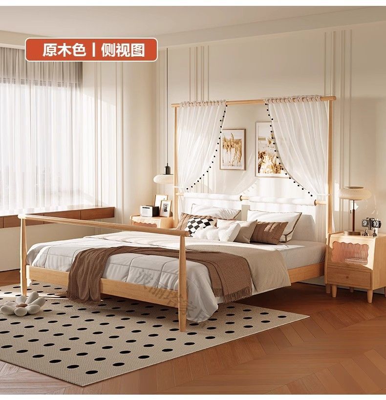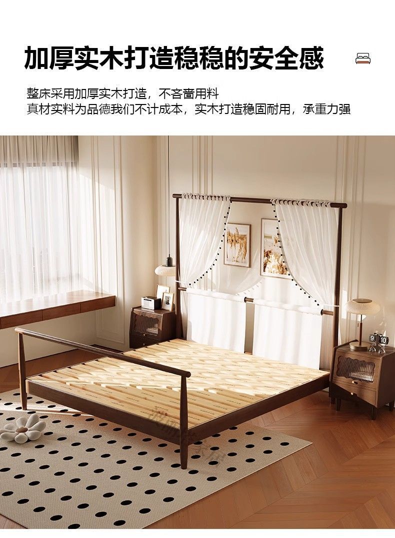현대적인 미니멀리스트 미국 복고풍 스타일의 단단한 나무 선반 침대 1.5m 싱글 거즈 커튼 1.5m 대형 침대 B&B 스타일 가구스토어 가기