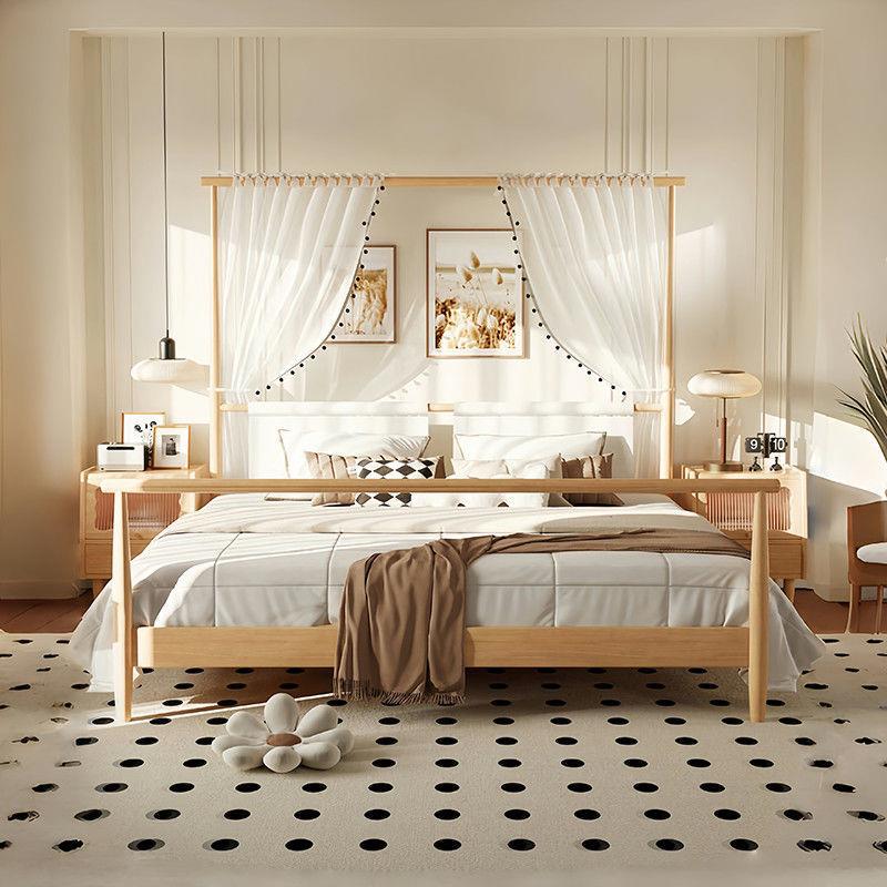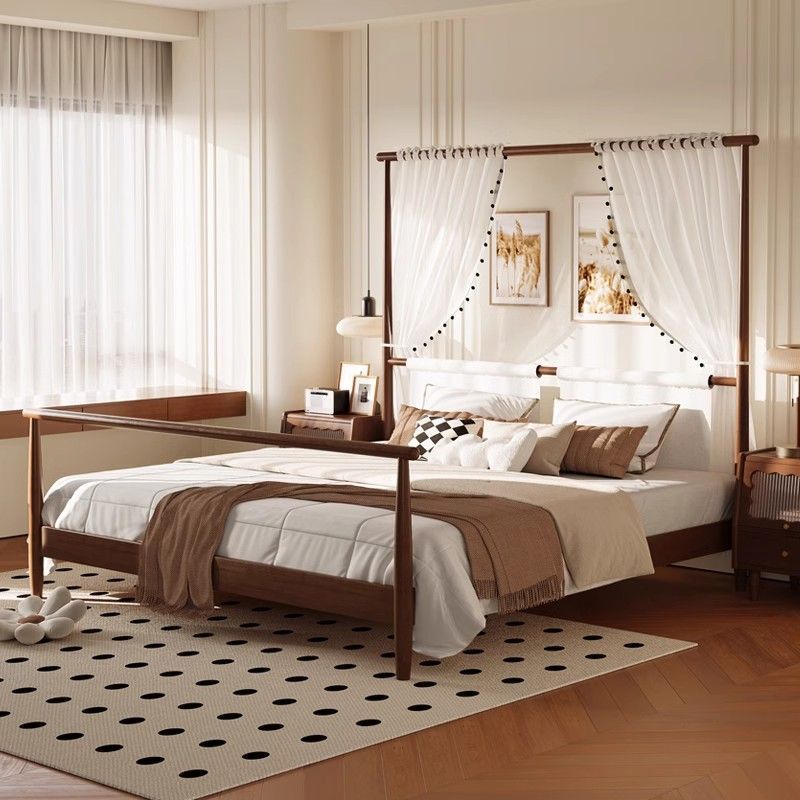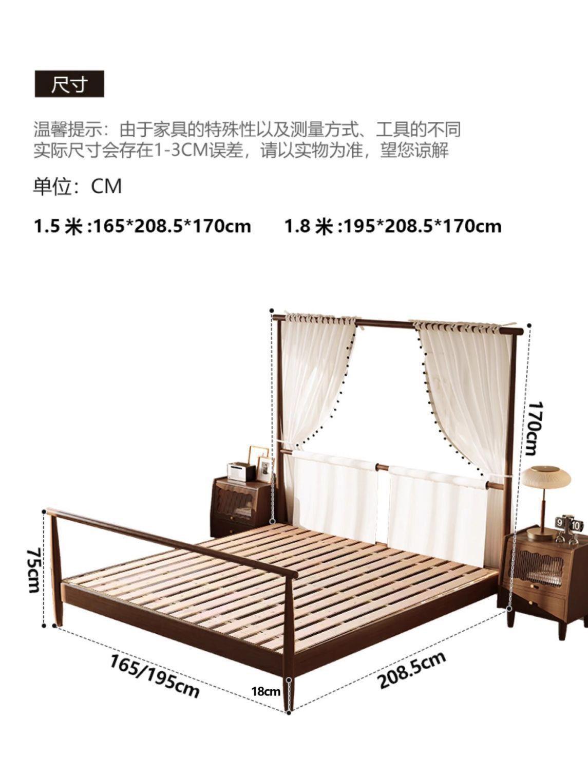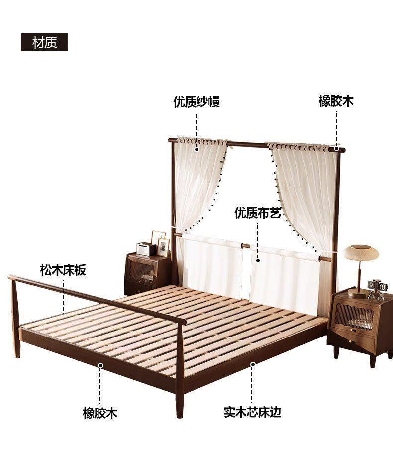 현대적인 미니멀리스트 미국 복고풍 스타일의 단단한 나무 선반 침대 1.5m 싱글 거즈 커튼 1.5m 대형 침대 B&B 스타일 가구