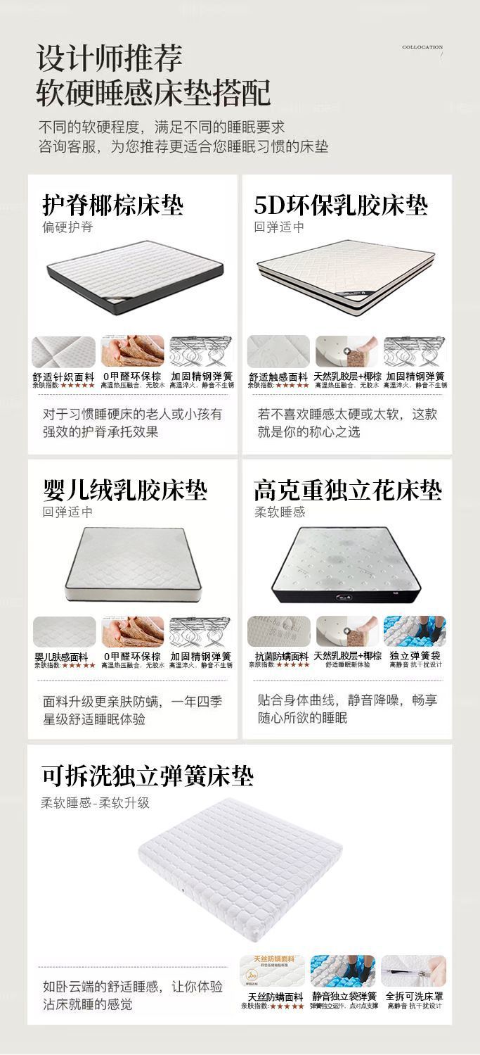• 침대+고중량 독립 플라워 매트리스+침대협탁*1+프레임 구조
