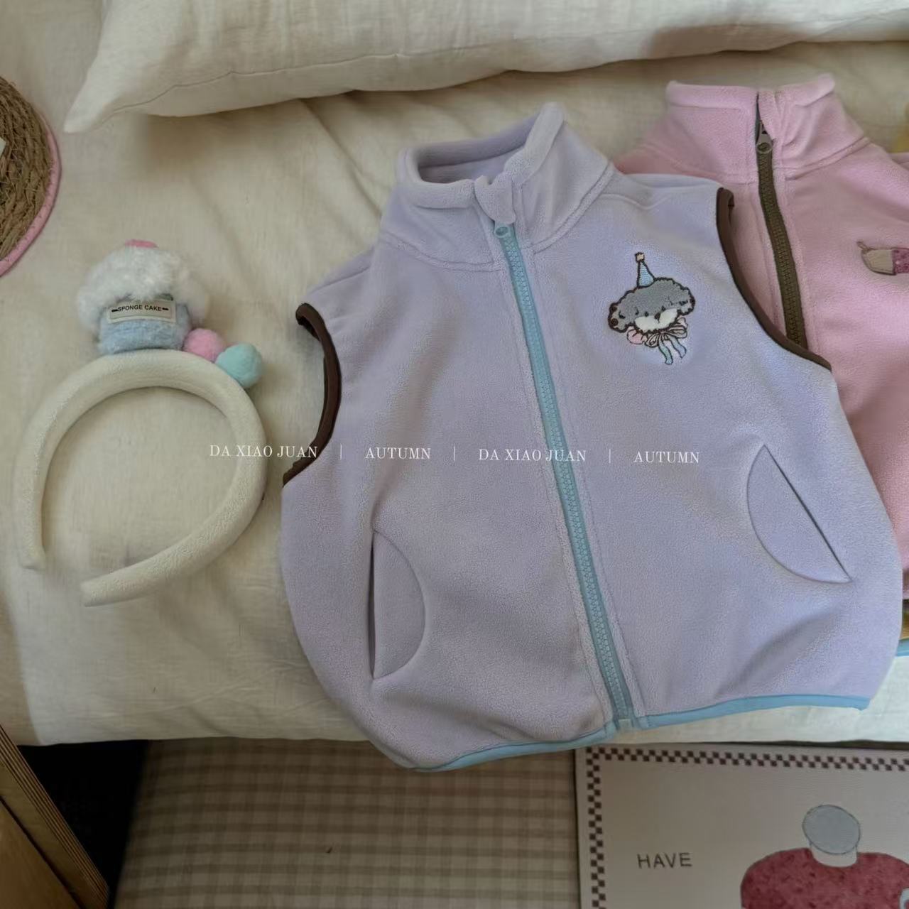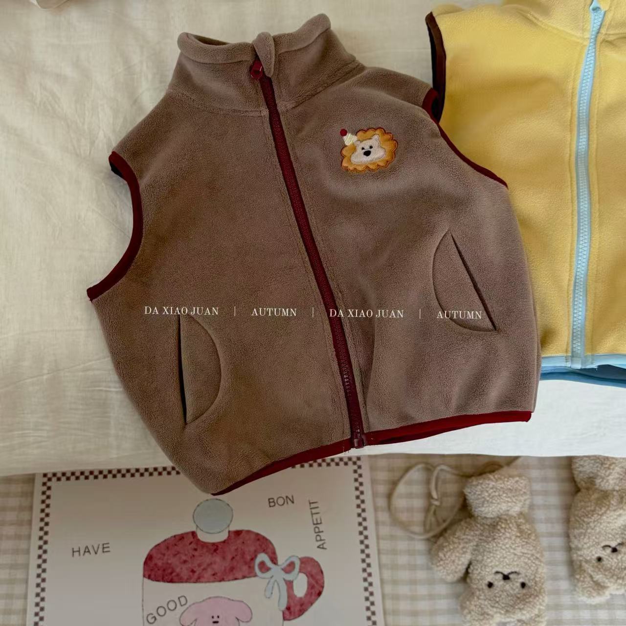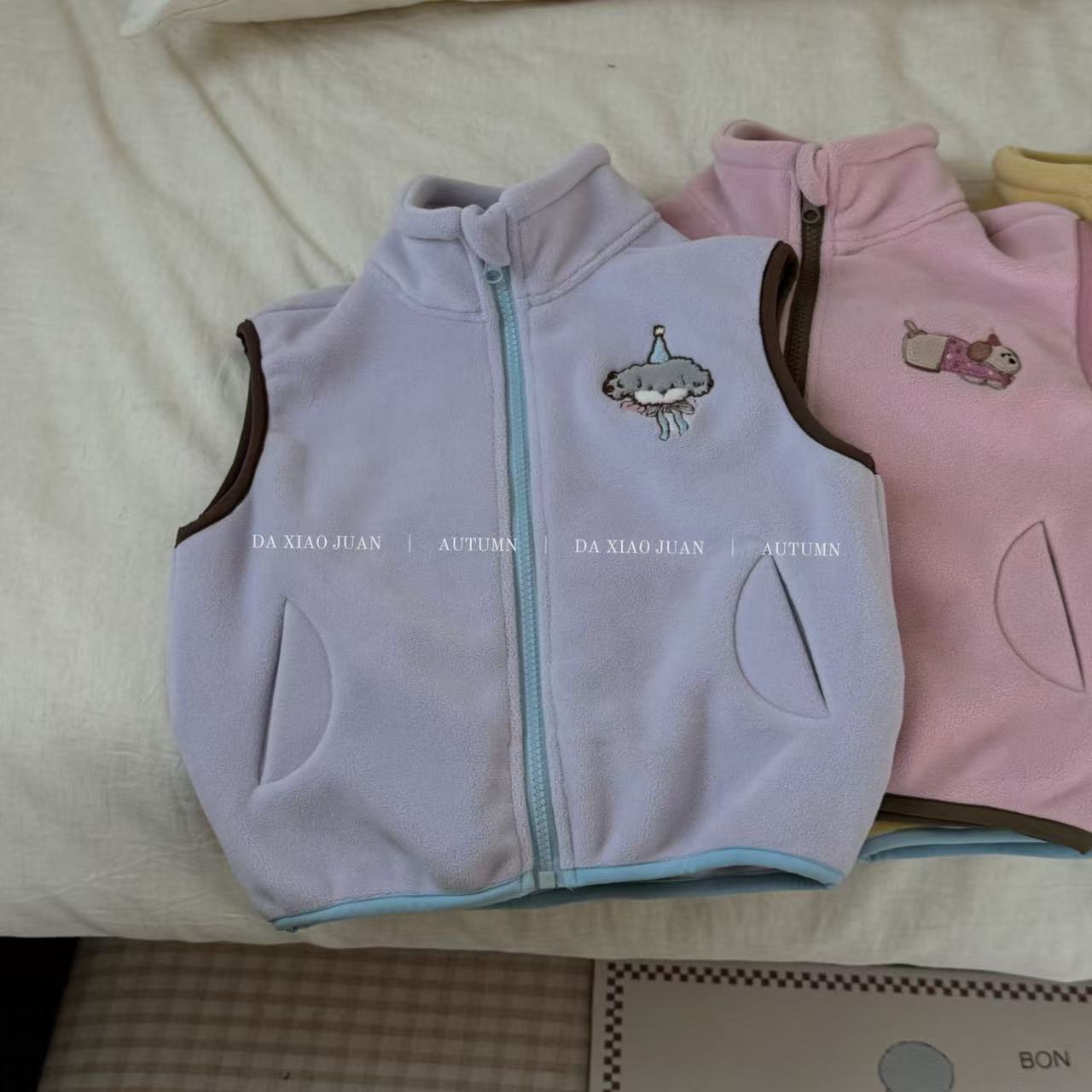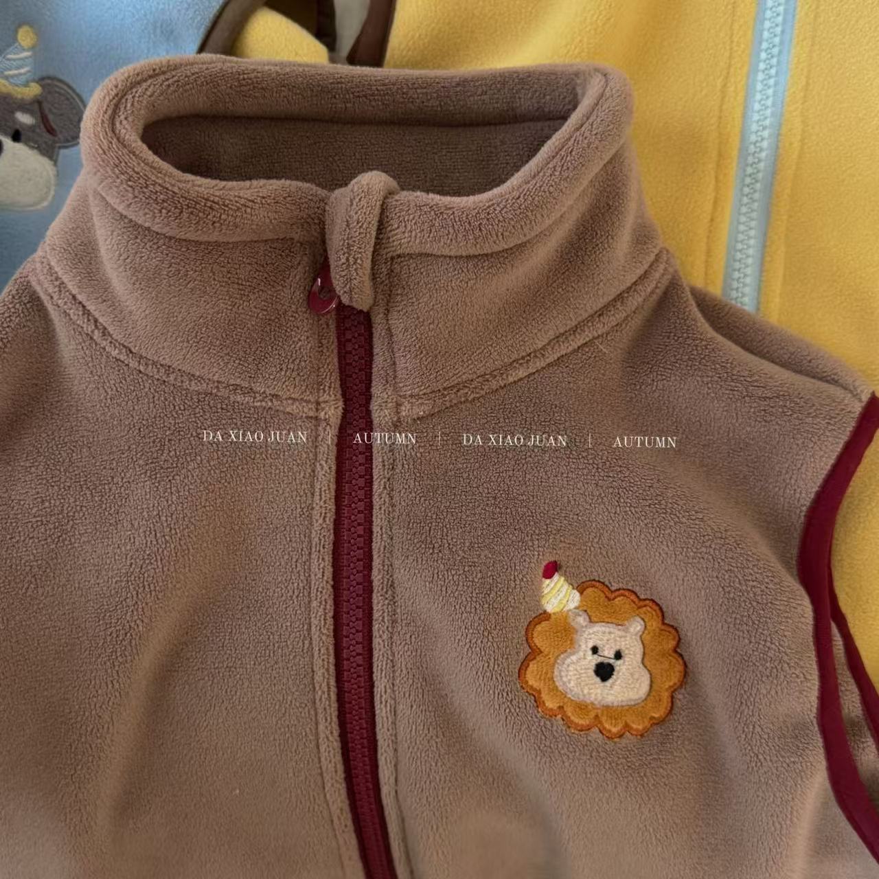 크고 작은 아동복 2025 가을 아동 조끼 소년 소녀 오리 벨벳 스탠드 칼라 지퍼 카디건 만화 따뜻한스토어 가기