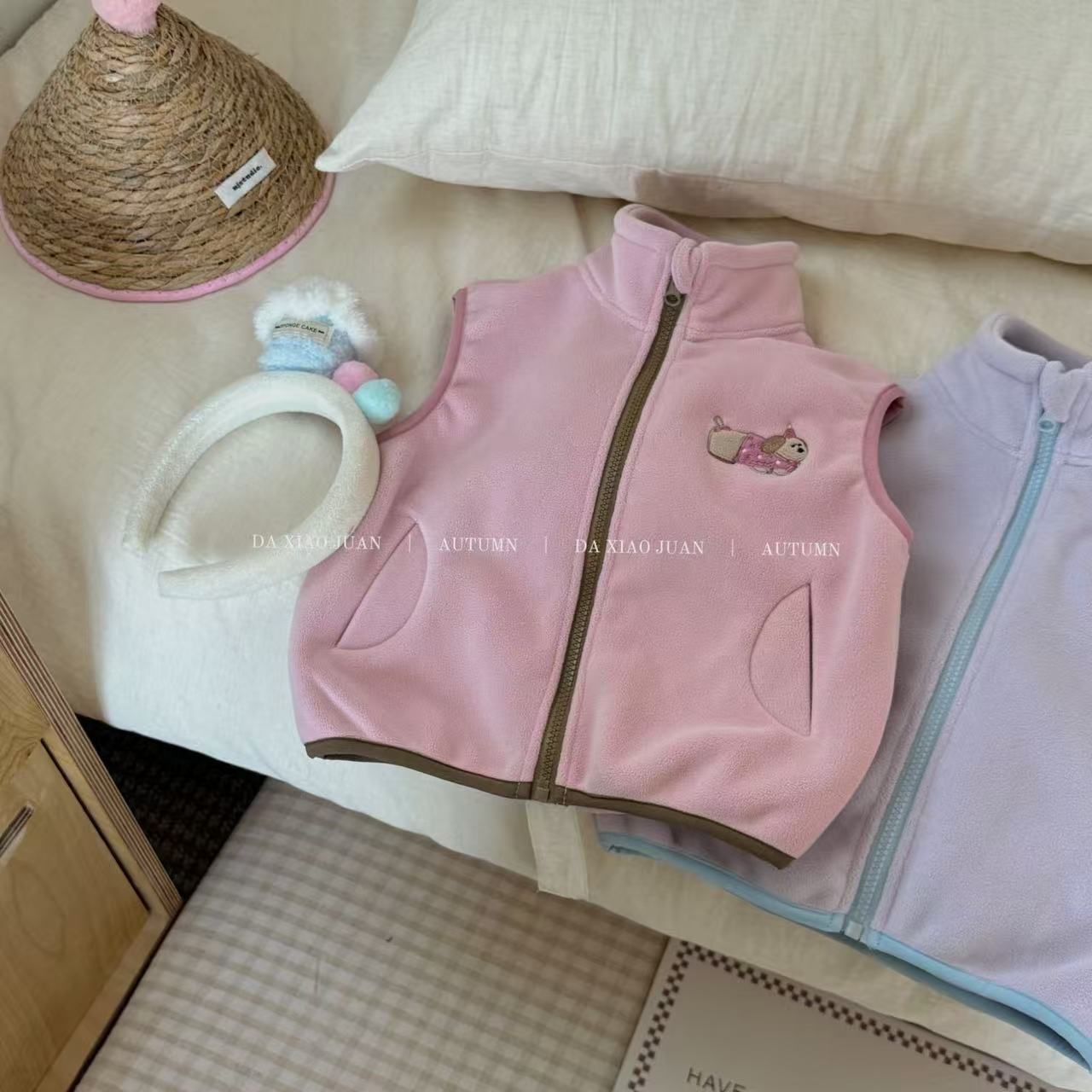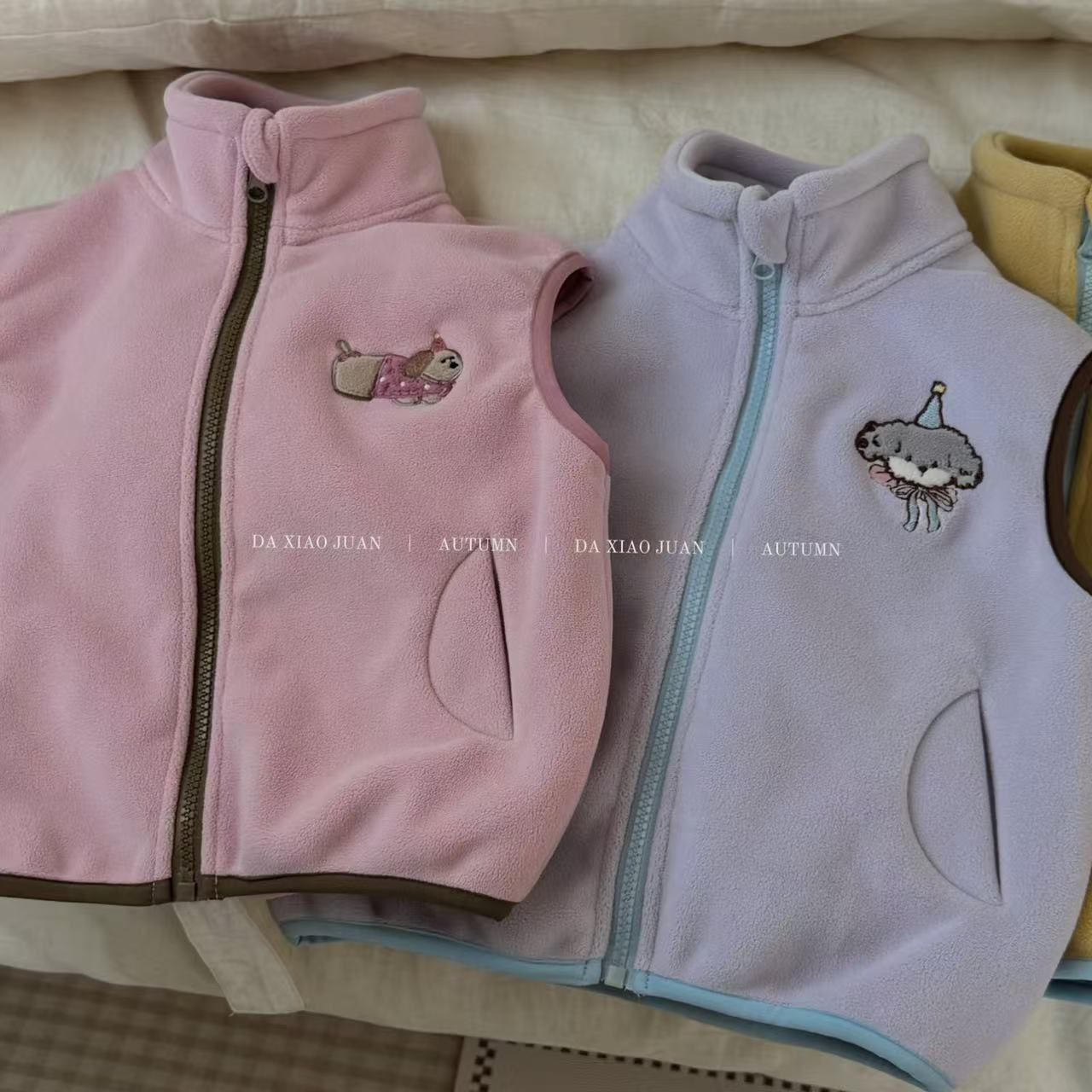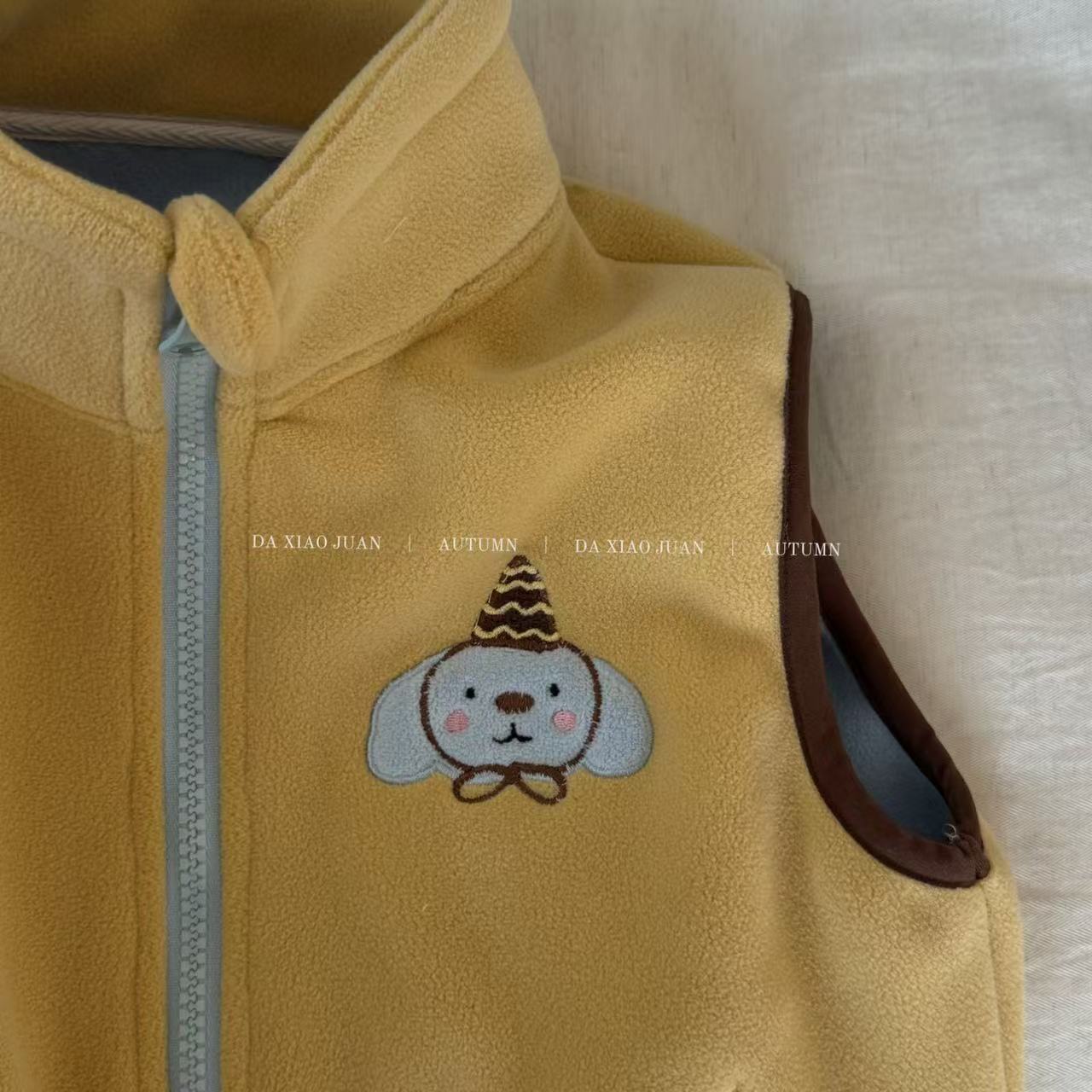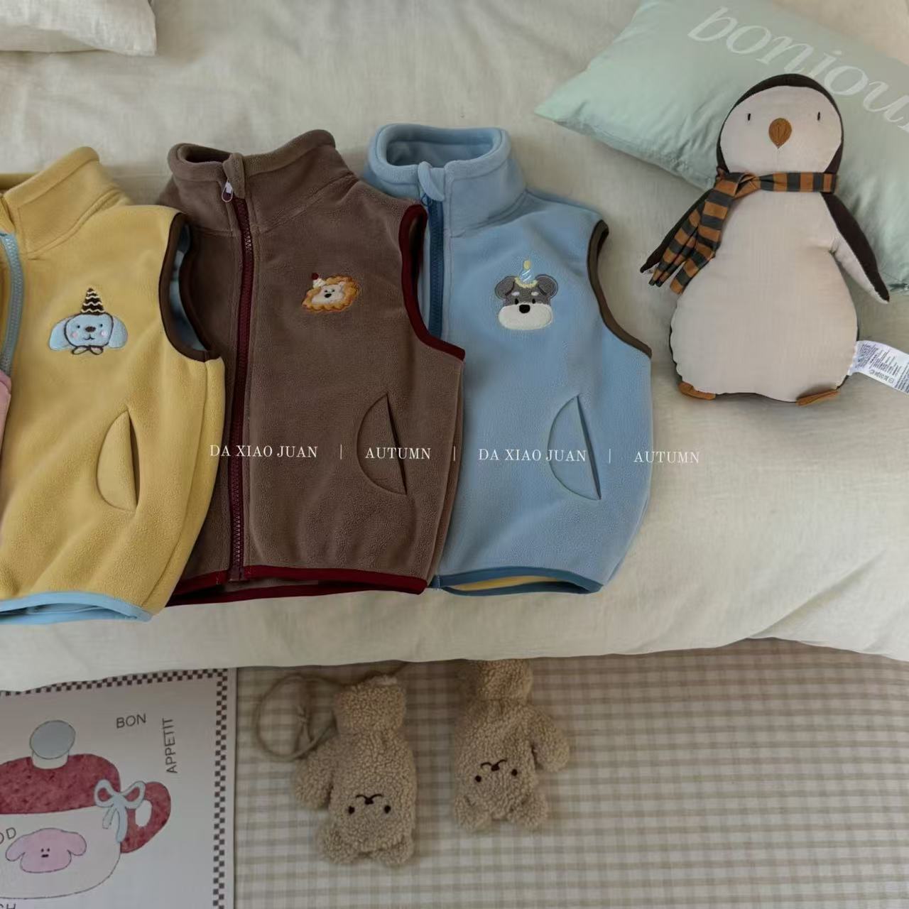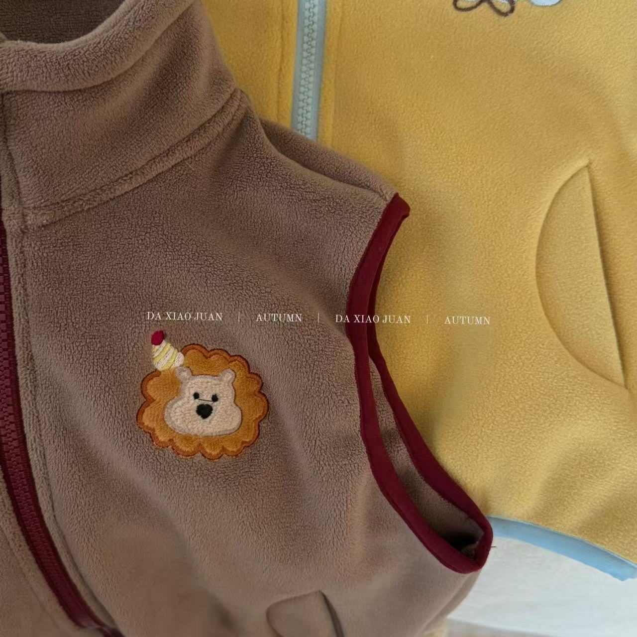 크고 작은 아동복 2025 가을 아동 조끼 소년 소녀 오리 벨벳 스탠드 칼라 지퍼 카디건 만화 따뜻한스토어 가기