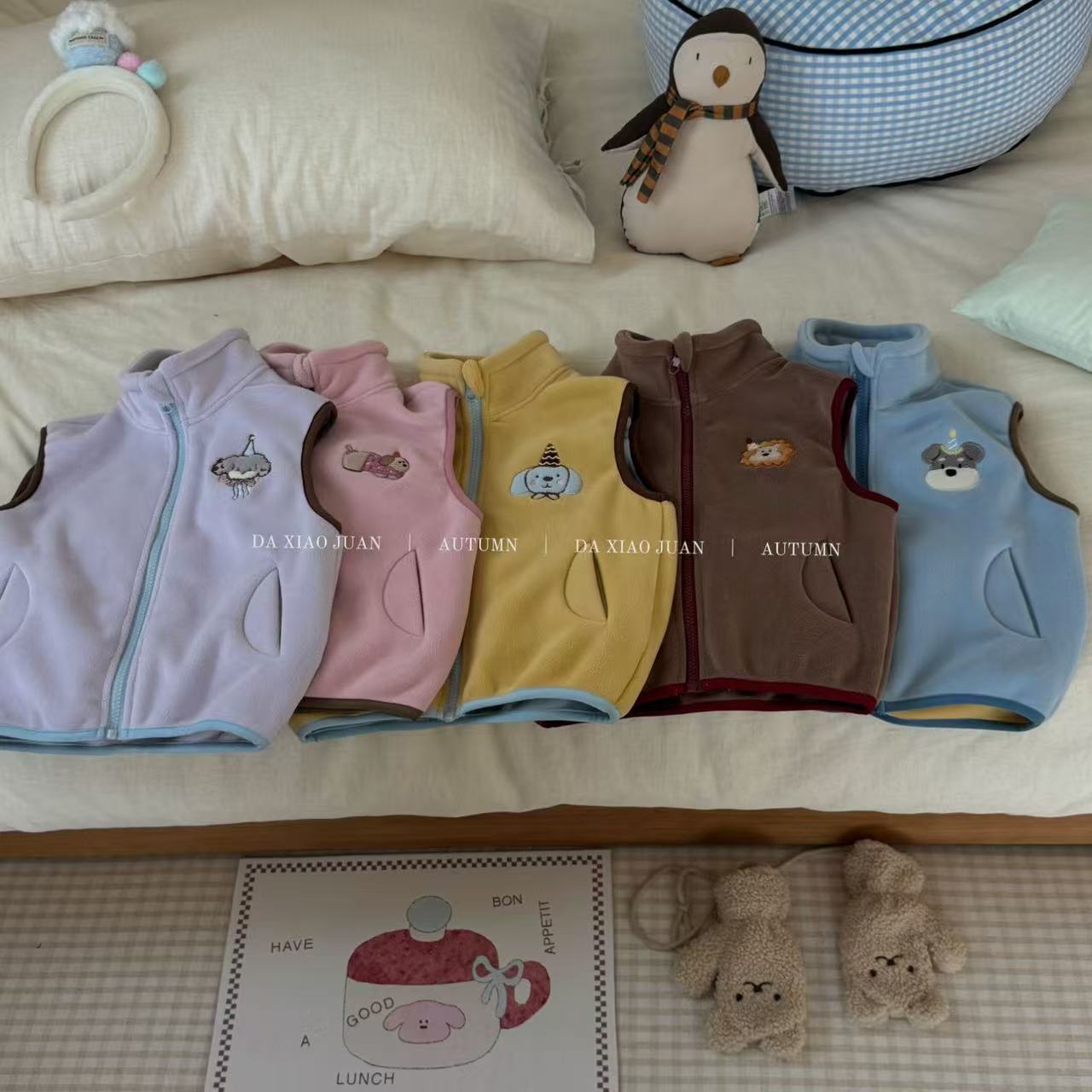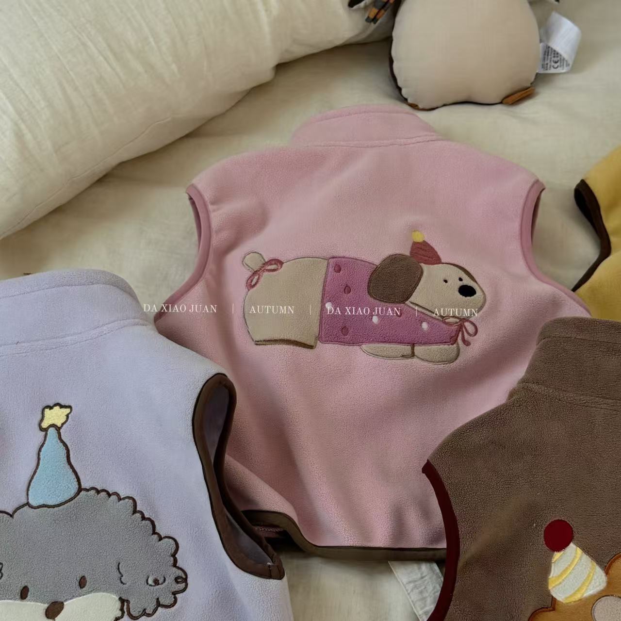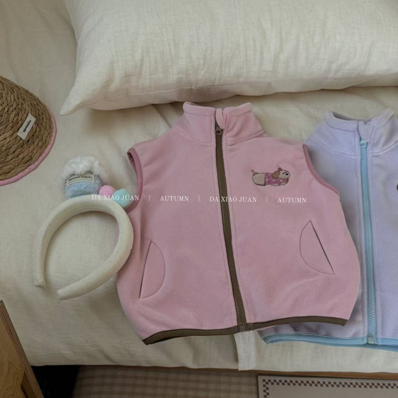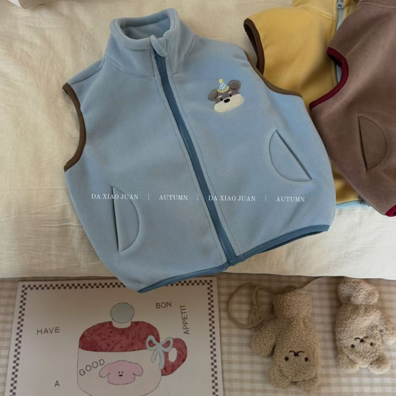 크고 작은 아동복 2025 가을 아동 조끼 소년 소녀 오리 벨벳 스탠드 칼라 지퍼 카디건 만화 따뜻한스토어 가기