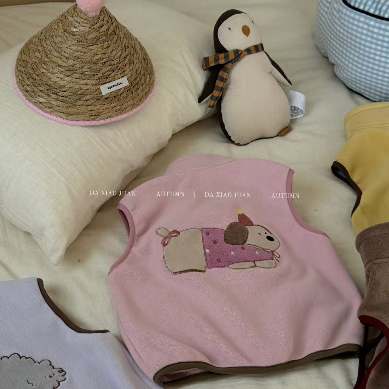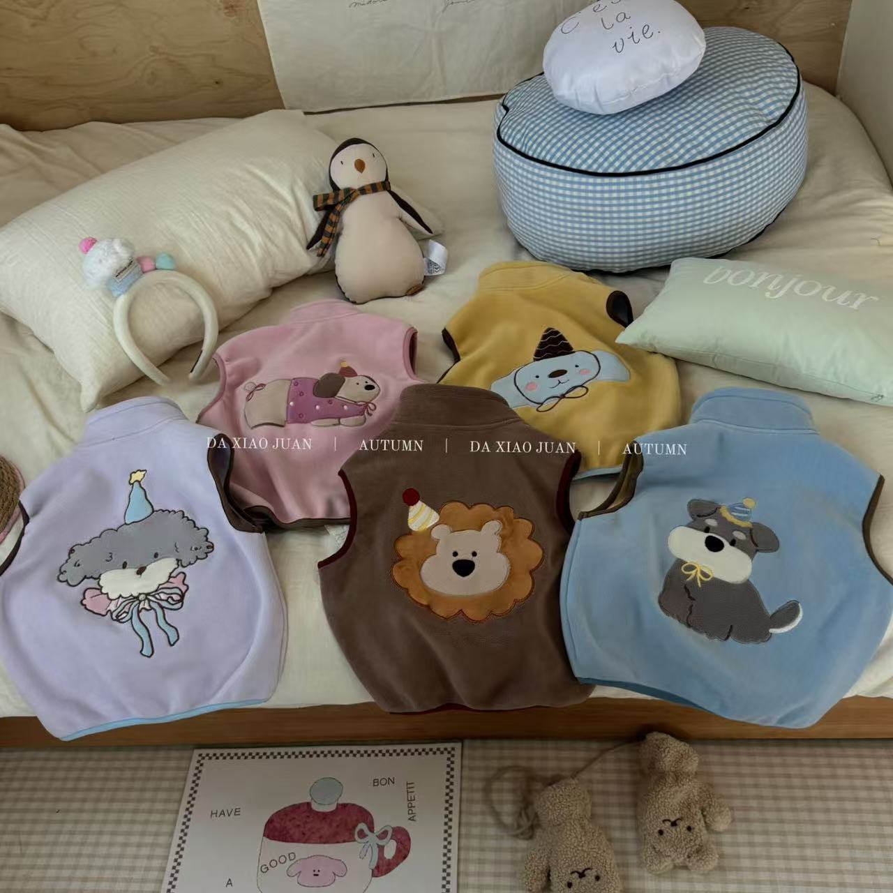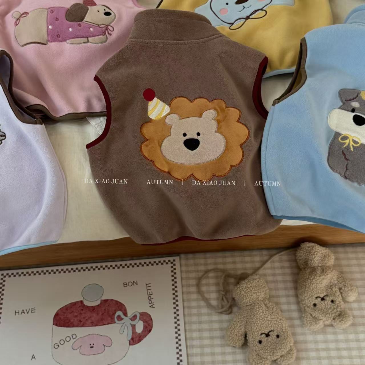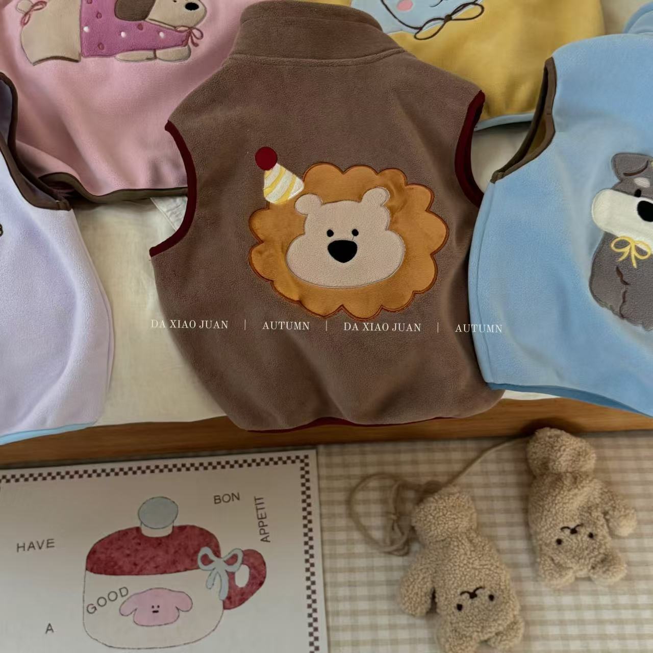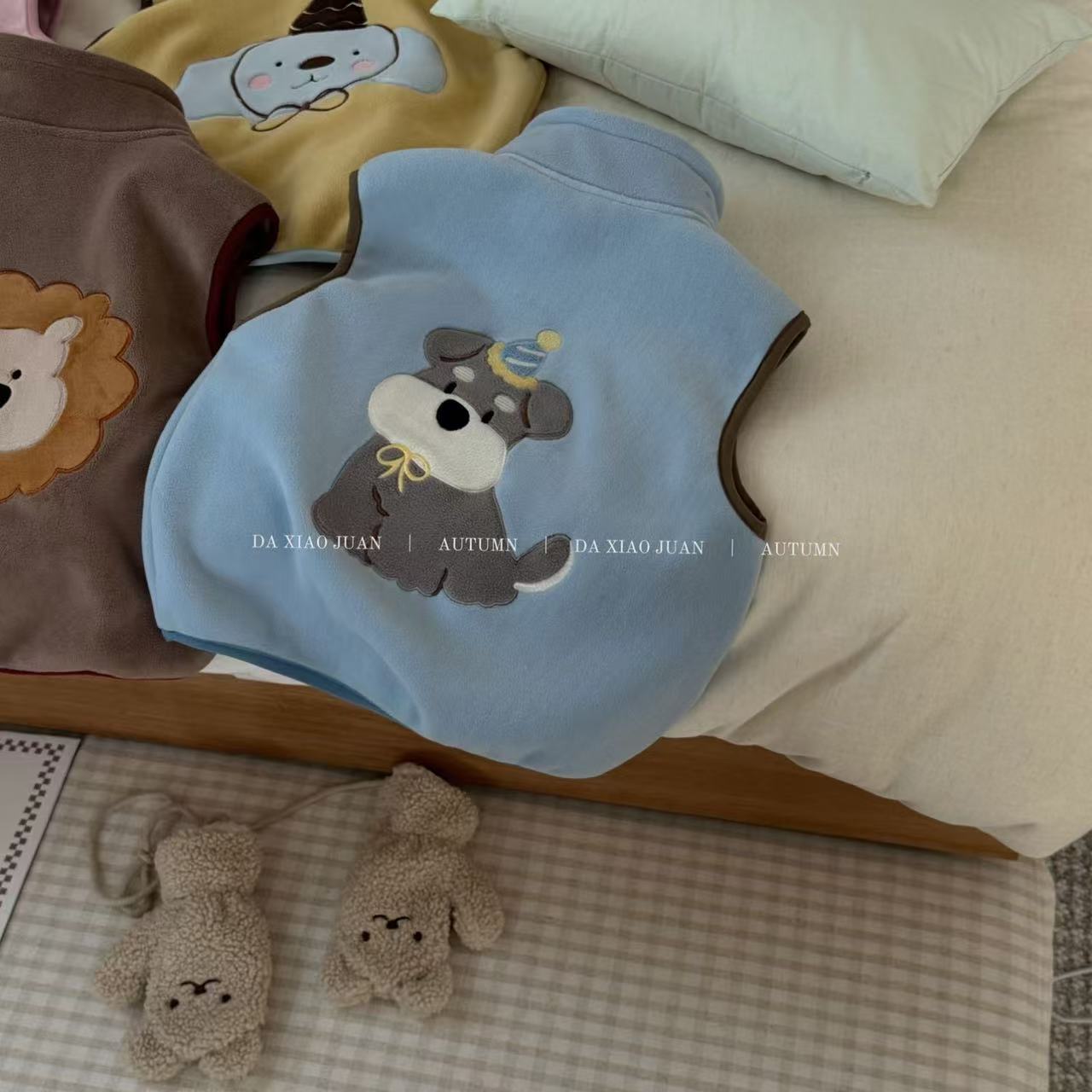 크고 작은 아동복 2025 가을 아동 조끼 소년 소녀 오리 벨벳 스탠드 칼라 지퍼 카디건 만화 따뜻한스토어 가기