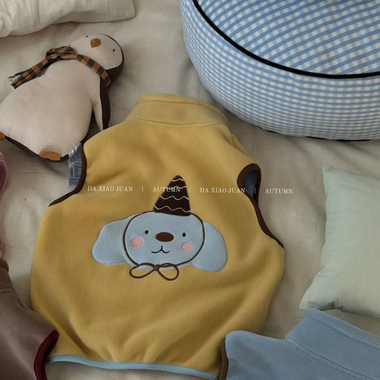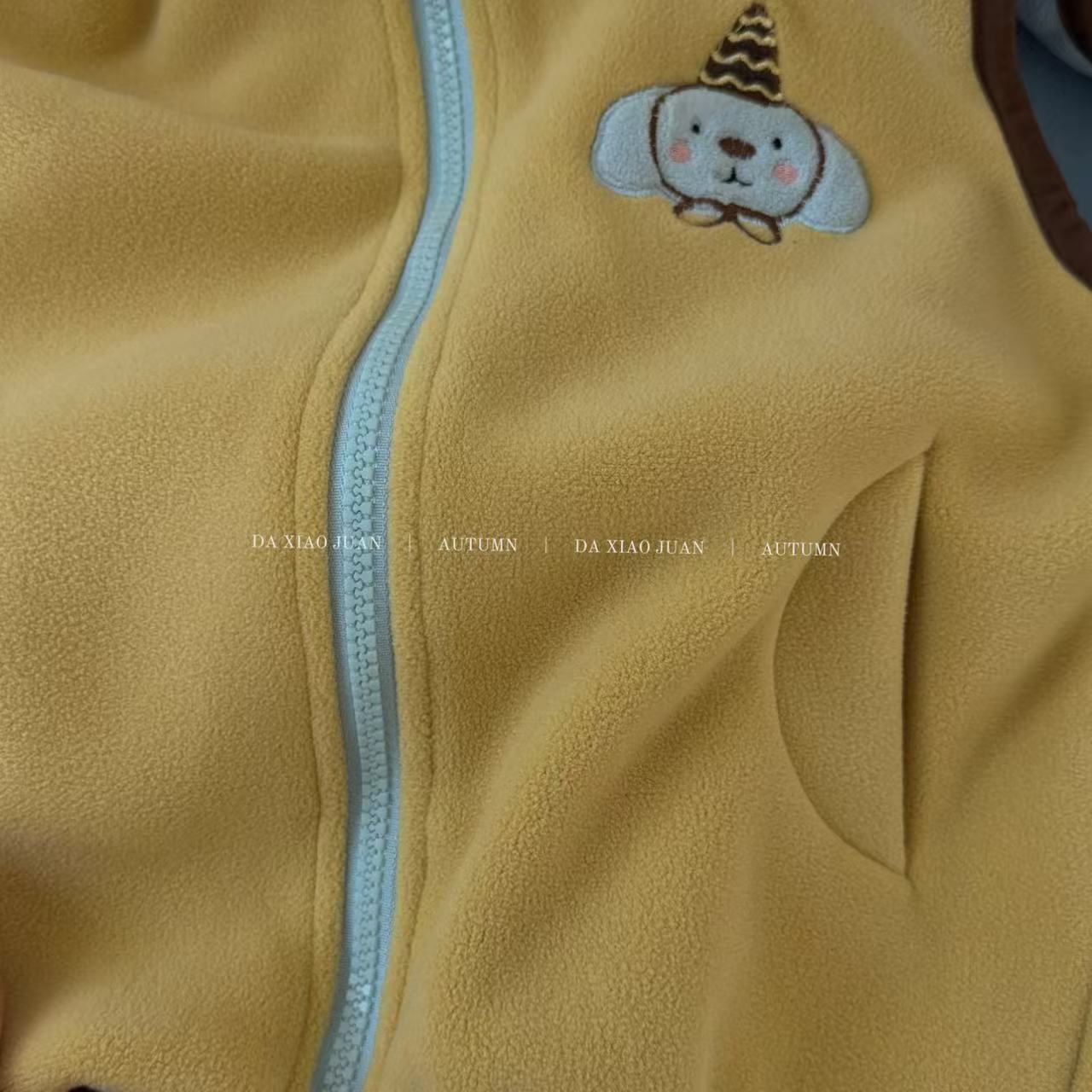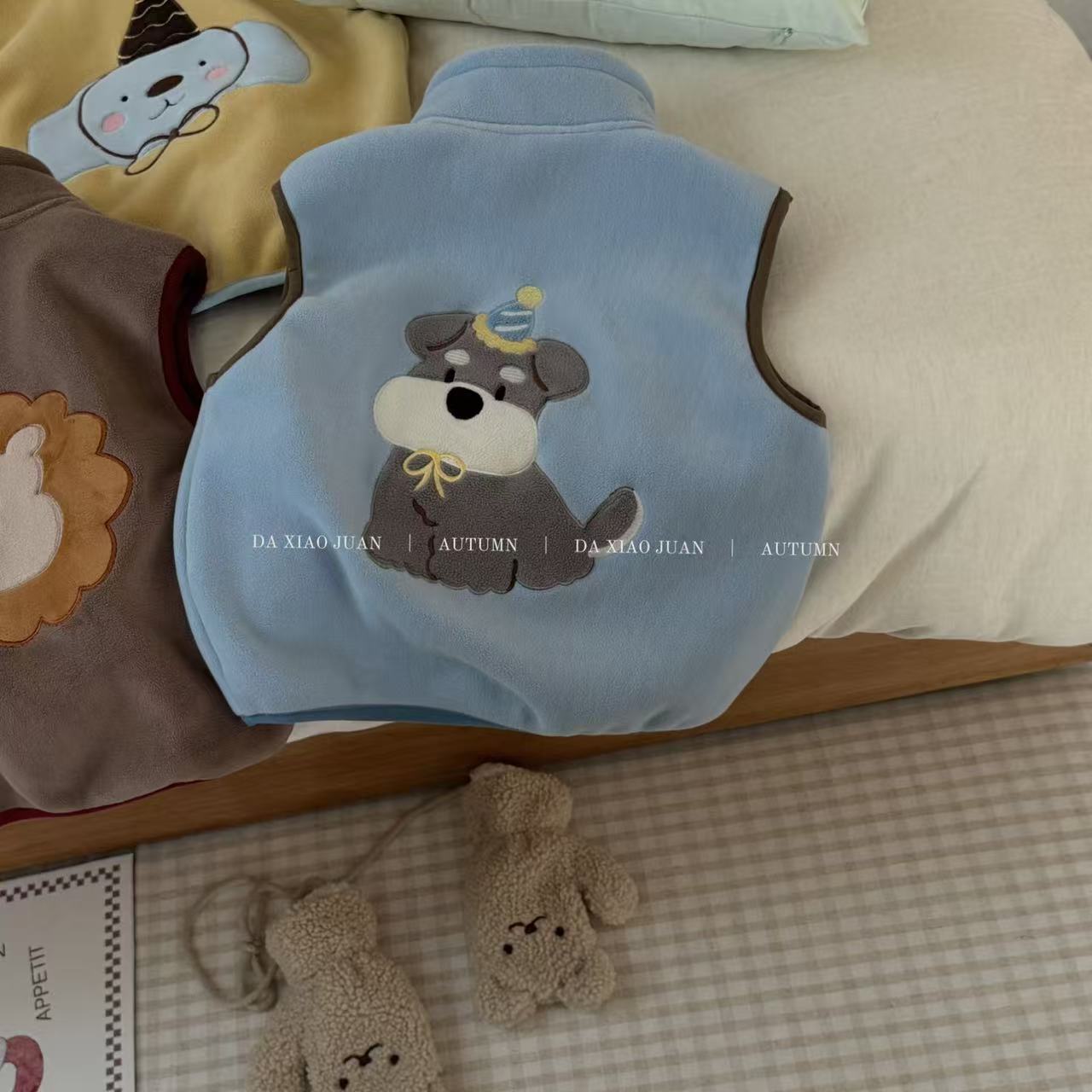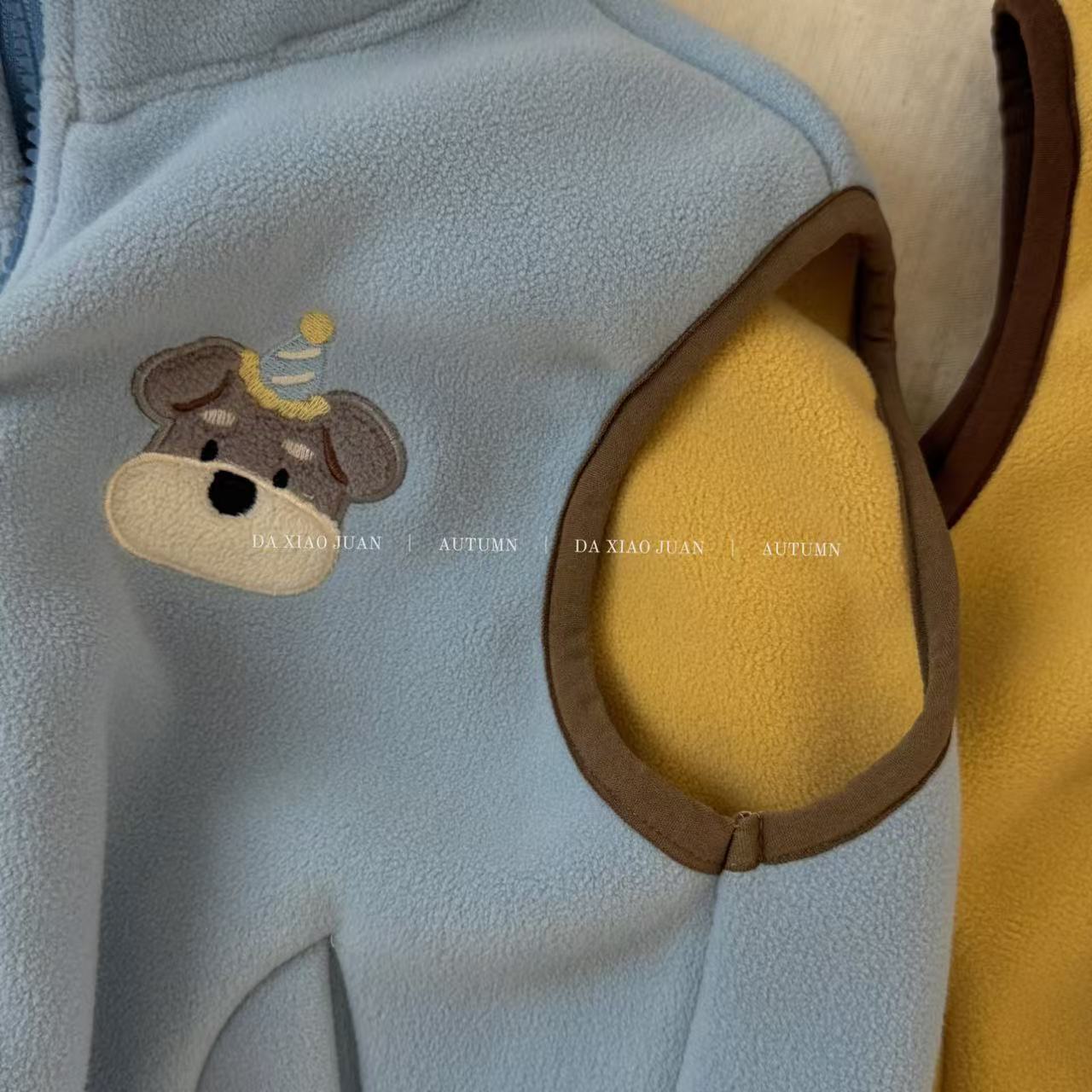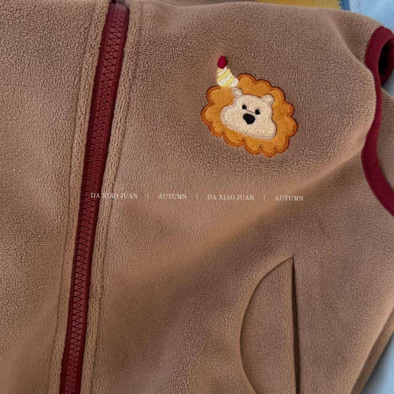 크고 작은 아동복 2025 가을 아동 조끼 소년 소녀 오리 벨벳 스탠드 칼라 지퍼 카디건 만화 따뜻한