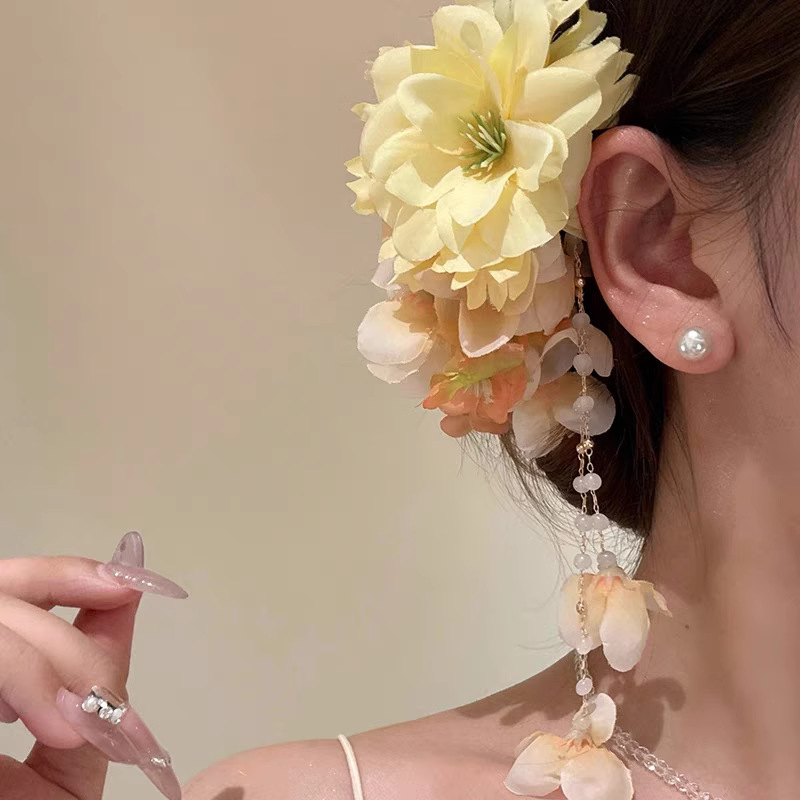 봄여름 분위기의 시뮬레이션 꽃 머리핀, 아름다운 옆머리 장식, 해변 사진 촬영용 헤어 액세서리, 고급 머리핀스토어 가기