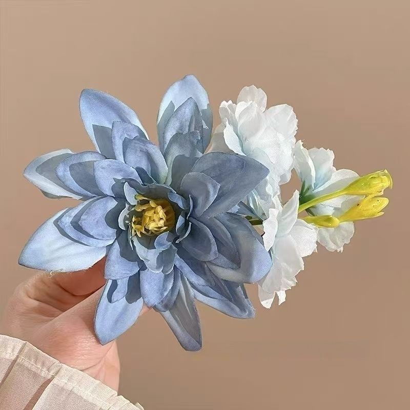봄여름 분위기의 시뮬레이션 꽃 머리핀, 아름다운 옆머리 장식, 해변 사진 촬영용 헤어 액세서리, 고급 머리핀